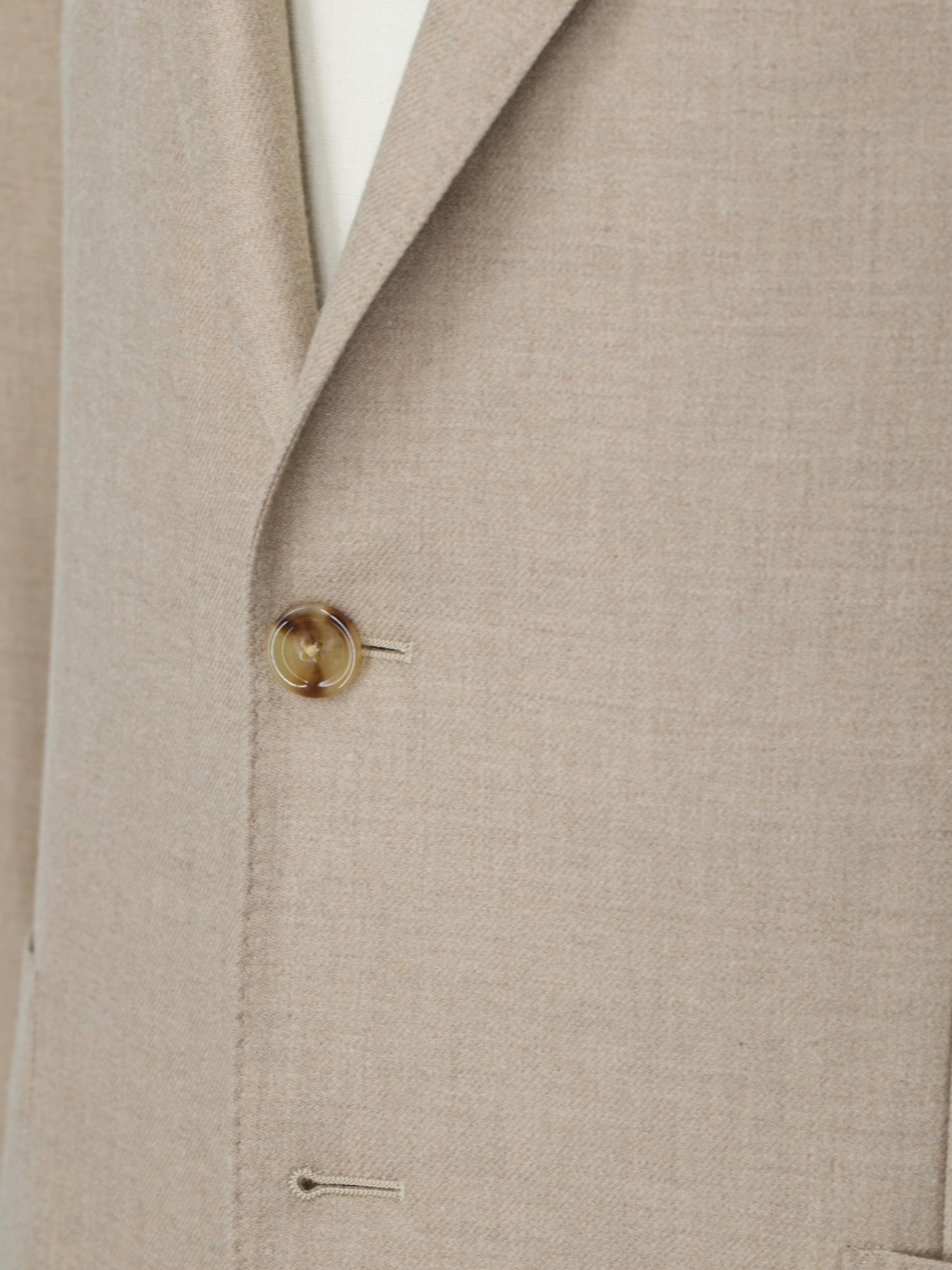 Discover the Lardini light brown pure cashmere-award twill jacket, a softly spoken piece of winter tailoring that draws its character from both cloth and construction. Woven by Loro Piana, the Cashmere Award quality is prized in tailoring circles as an exceptionally elevated pure-cashmere cloth, distinguished by its remarkable softness, fluid drape, and the quiet depth that only fine twill can bring to colour. In this warm light brown shade, the fabric feels especially rich and nuanced, catching the light with a gentle, almost powdery lustre. Notch lapels, light brown buttons, and Lardini’s black flower pin complete the composition with understated assurance, while the butterfly half lining keeps the jacket lighter, easier, and more natural on the body.