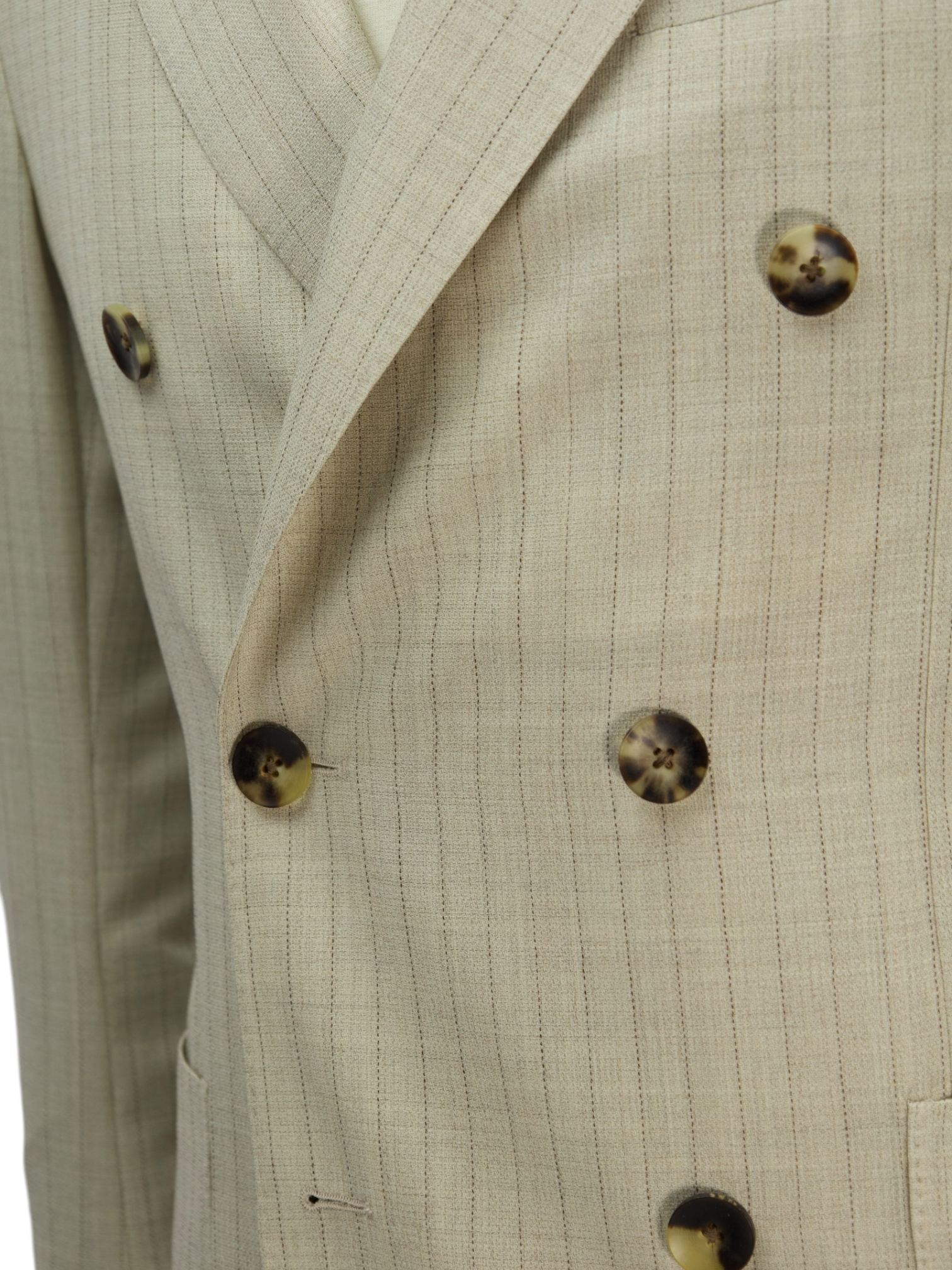 Lardini Sand Double Breasted Unlined Pinstripe Suit