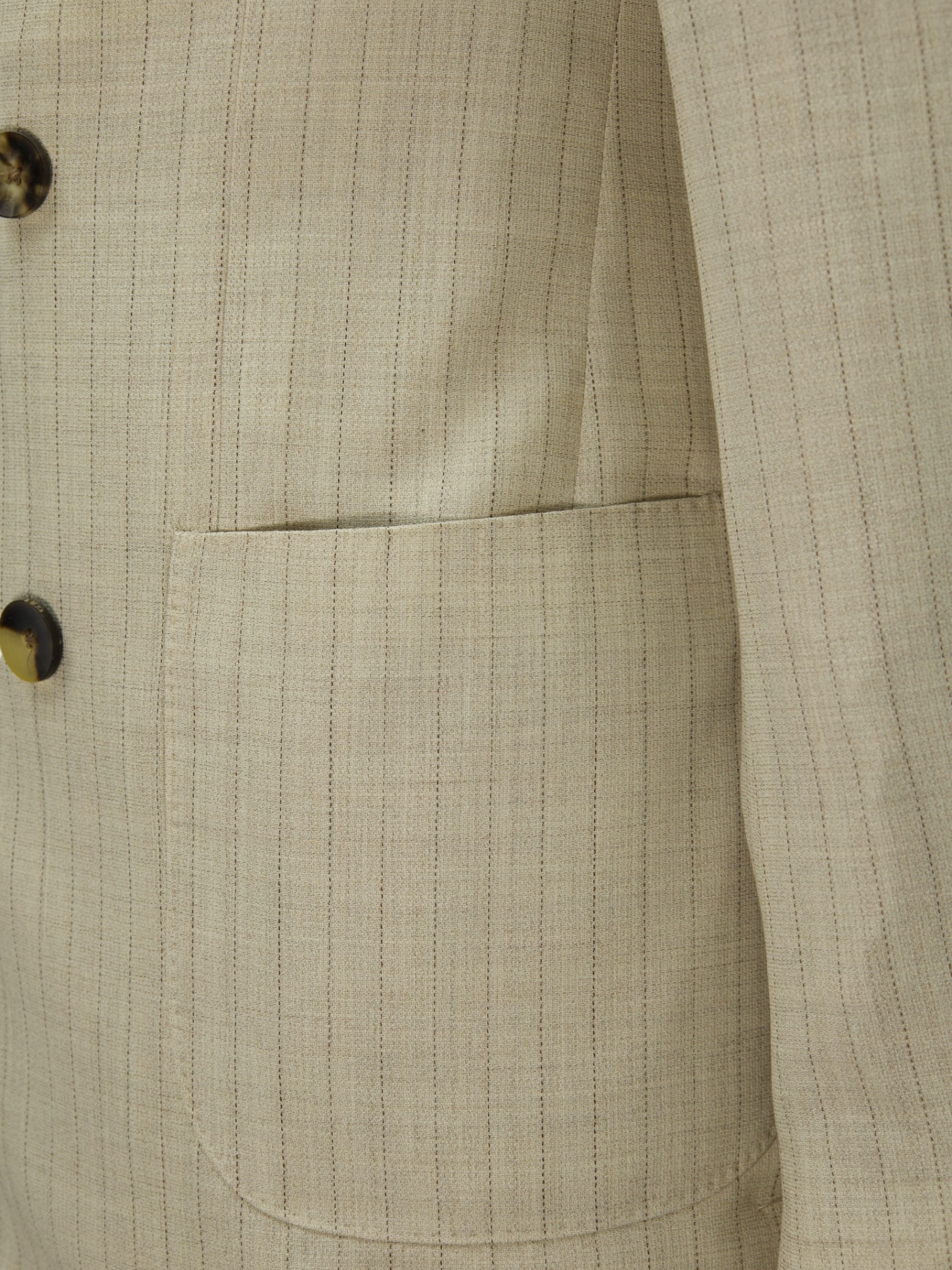 The barchetta pocket is often thought to be a tailoring detail exclusively from Italy. The word “barchetta” is Italian for “little boat.” It describes how the pocket floats on the chest, gently angled upwards, like the bow of a sailboat.
