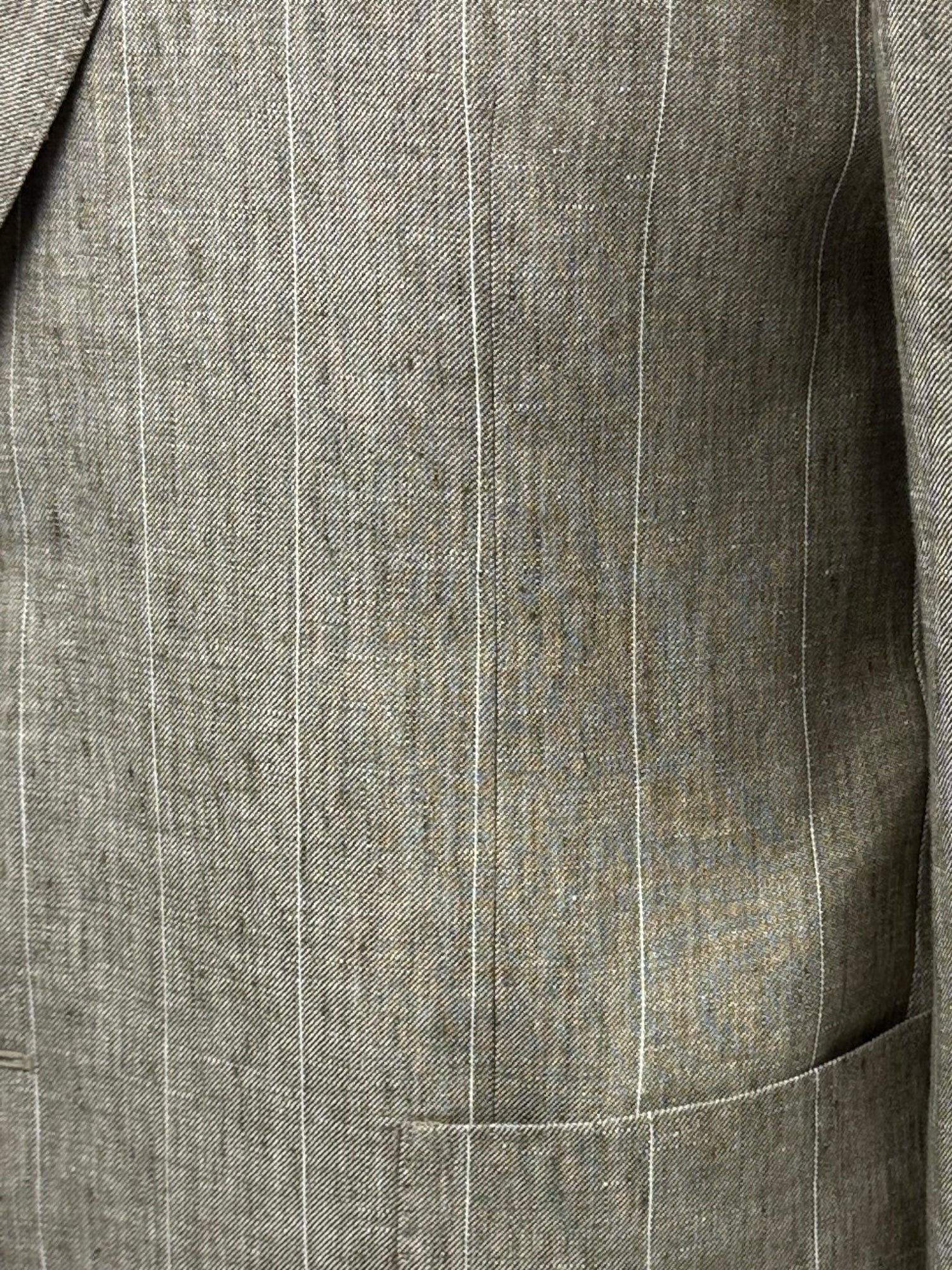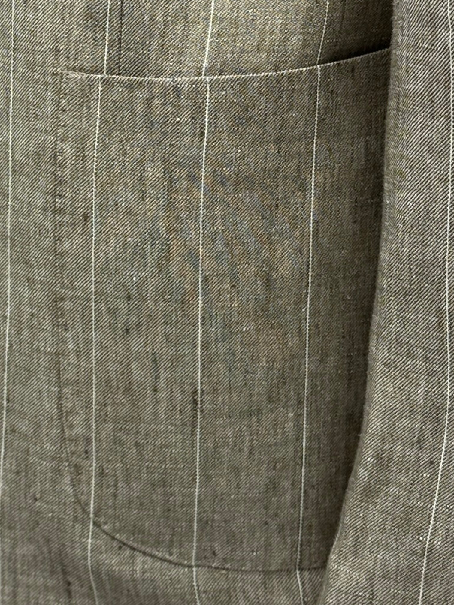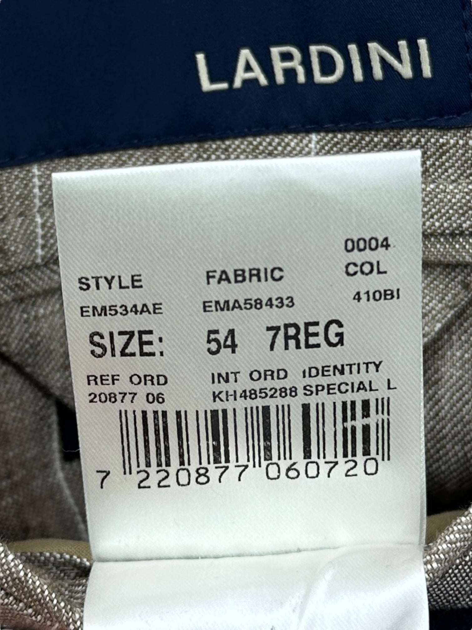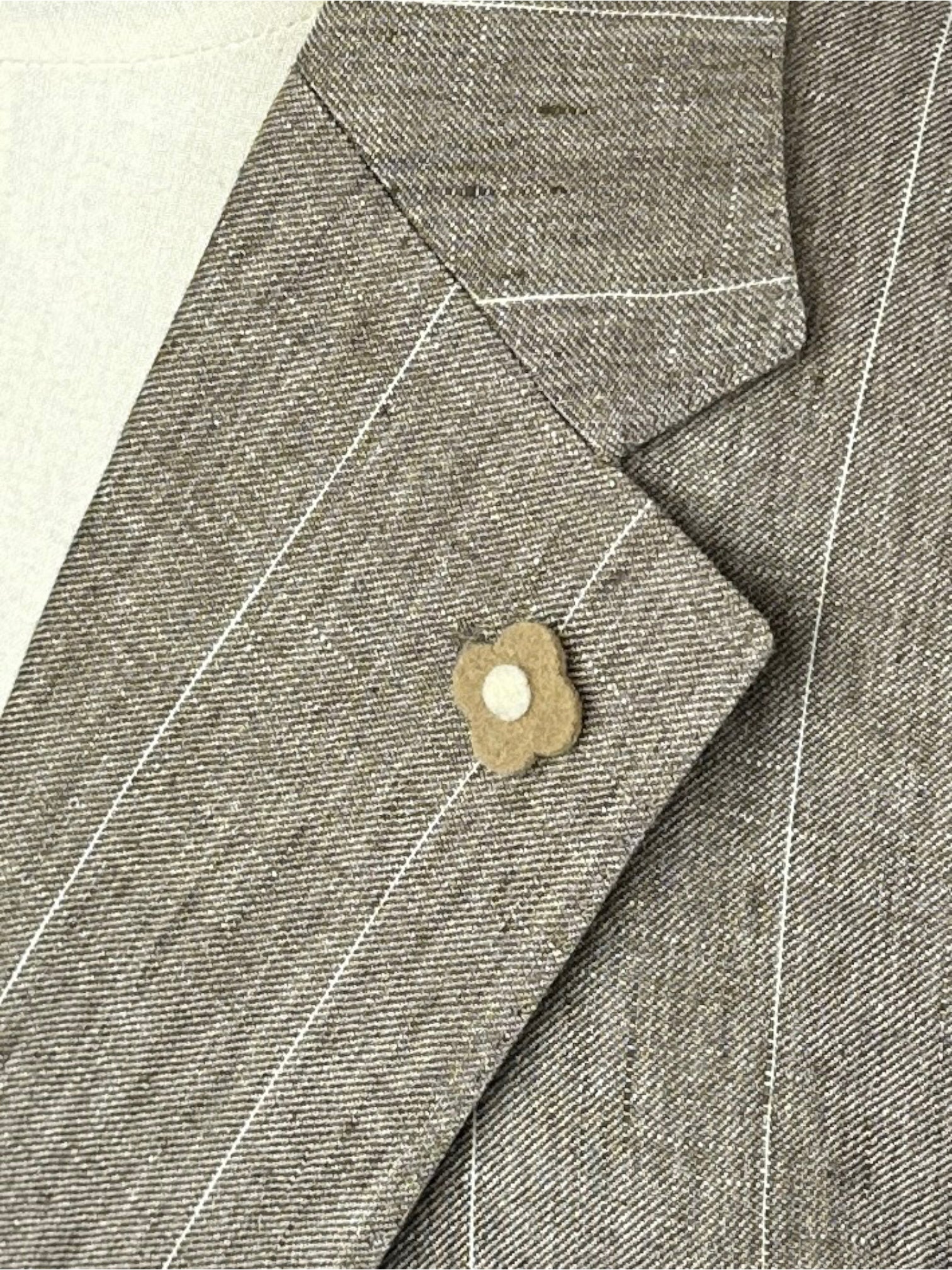 The Lardini Taupe Pinstripe Jacket, crafted from 100% linen, exudes a blend of casual elegance and sophisticated charm. This piece stands out as an embodiment of Lardini's commitment to quality and style, tailored for the modern gentleman who appreciates both comfort and sartorial excellence.