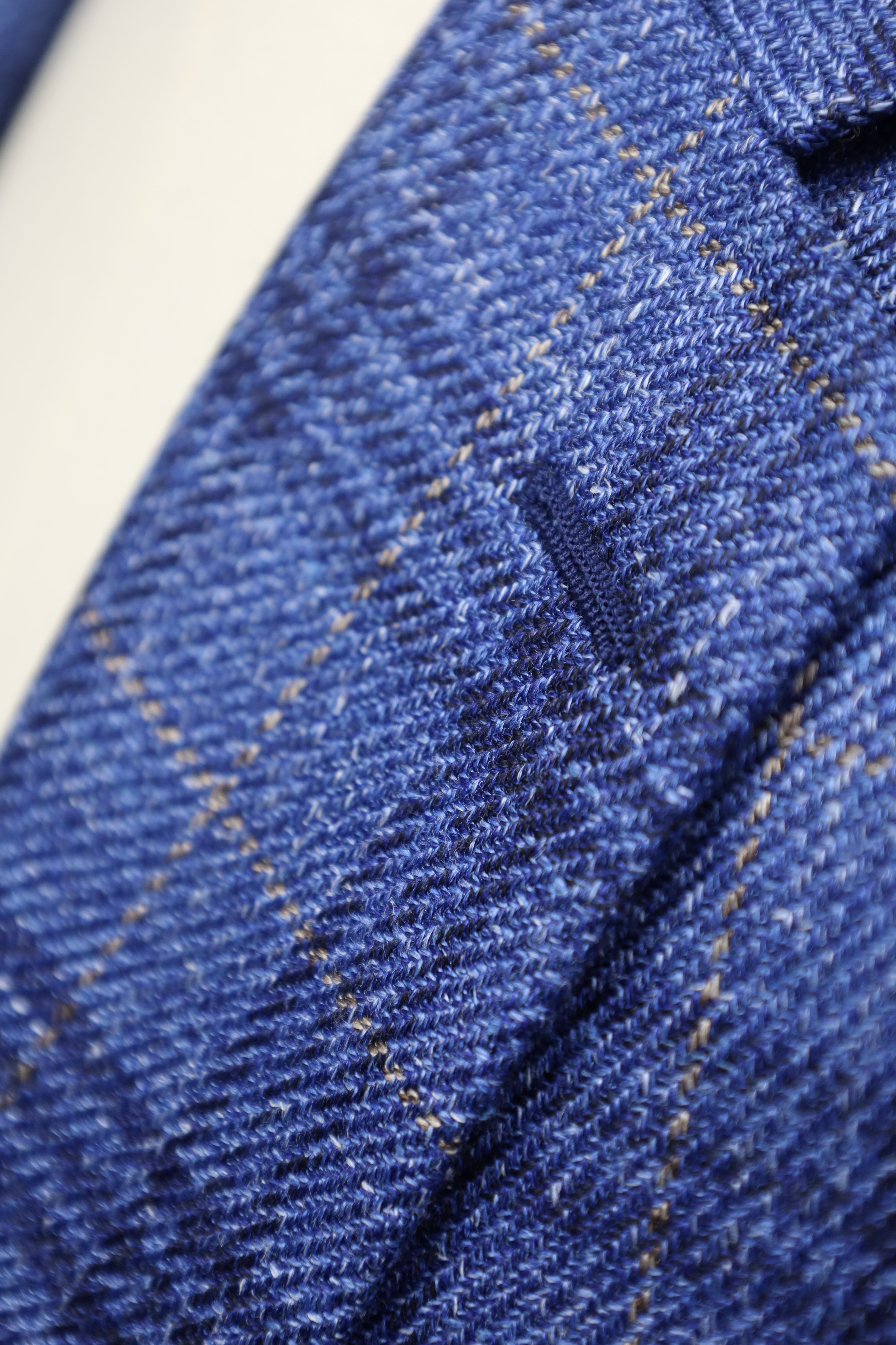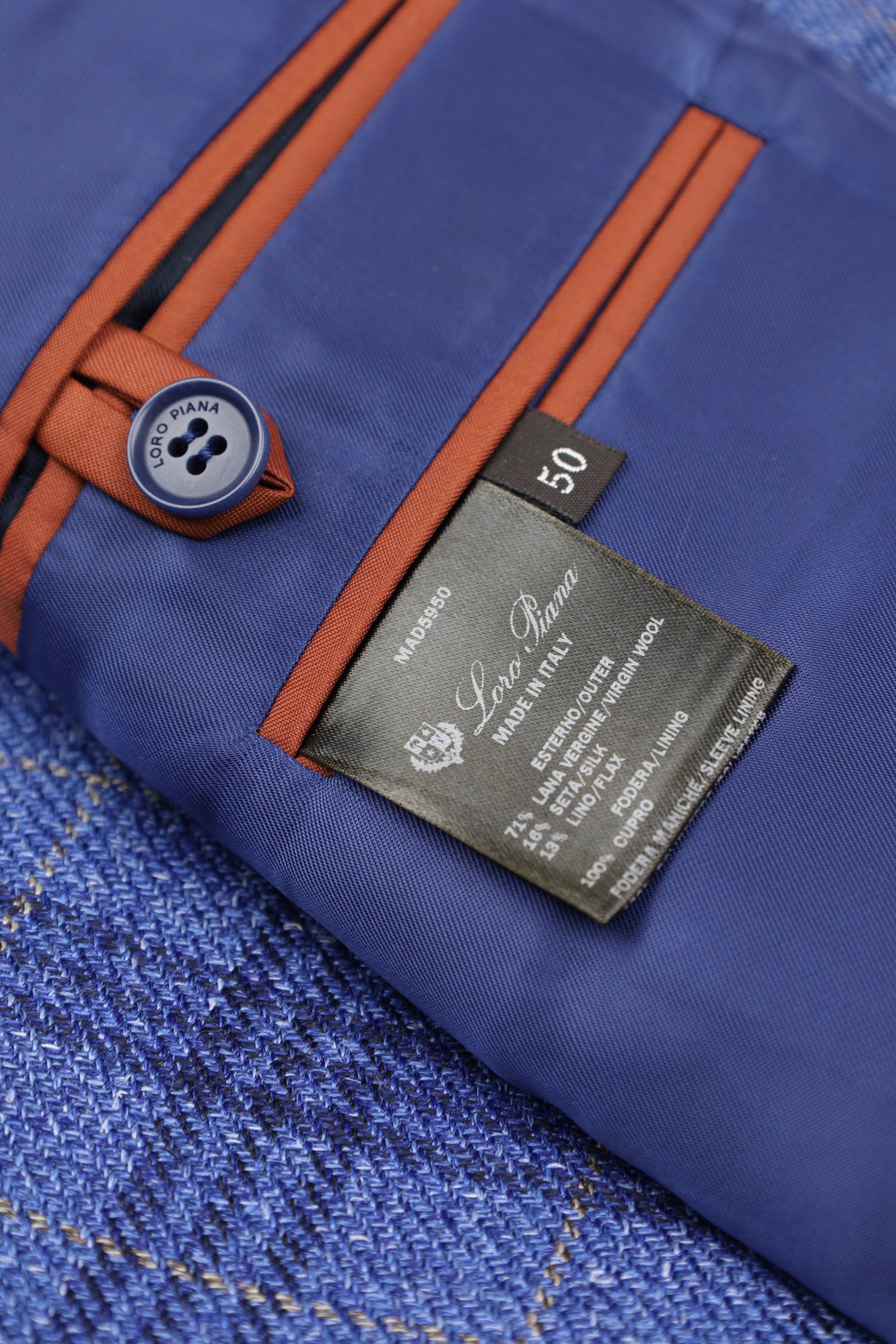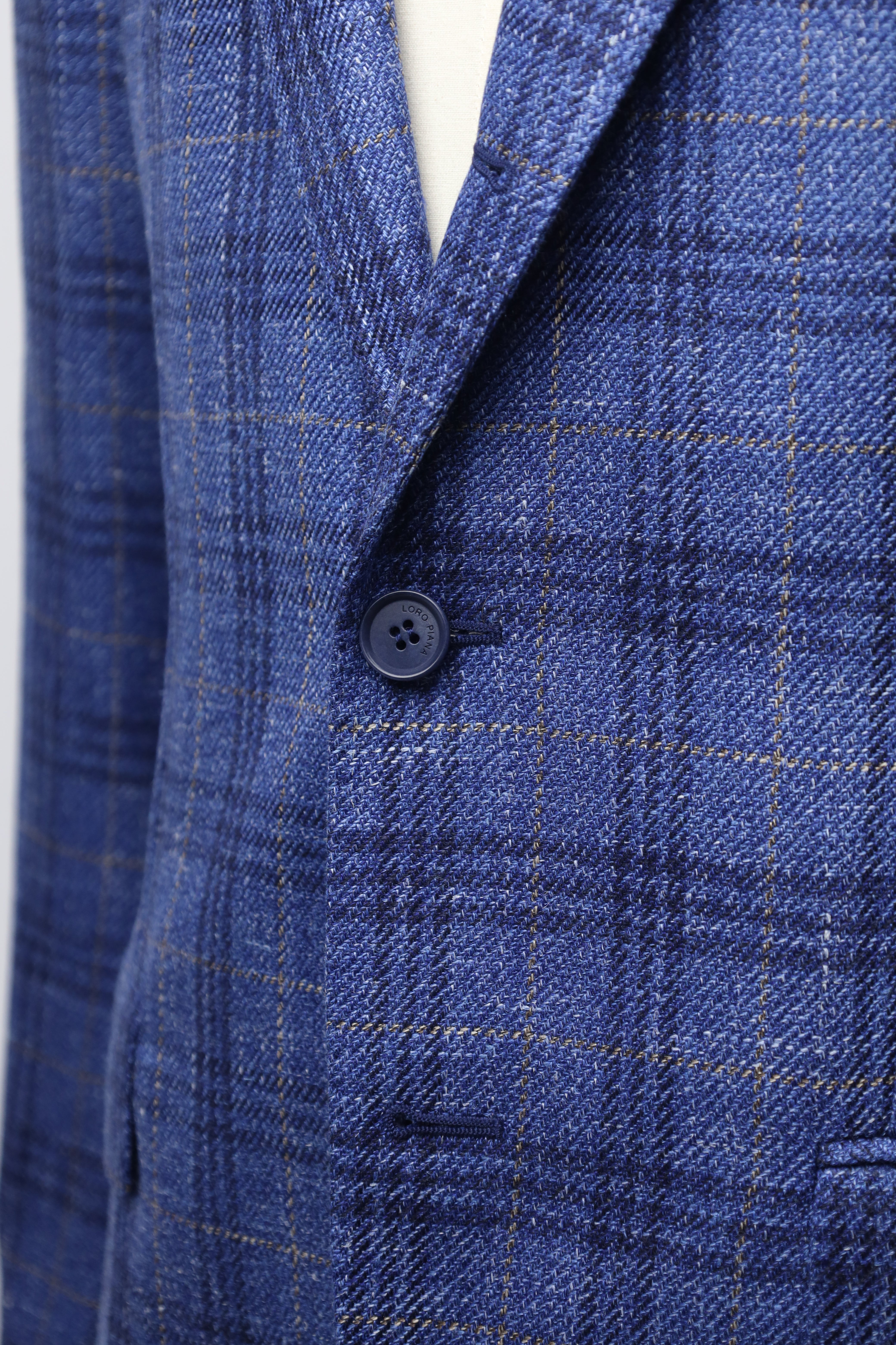 Loro Piana Denim Blue Wool, Silk & Linen Windowpane Jacket