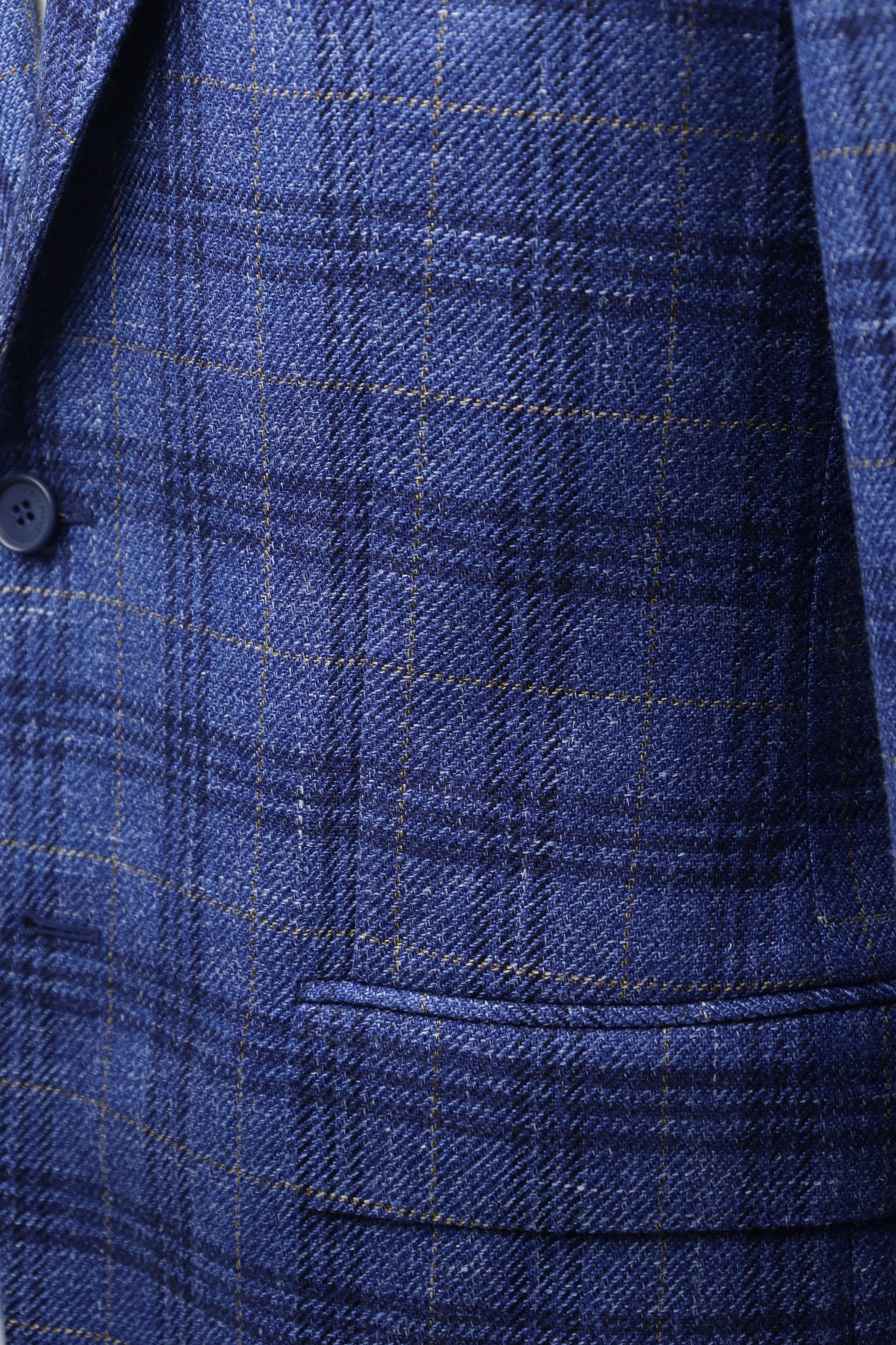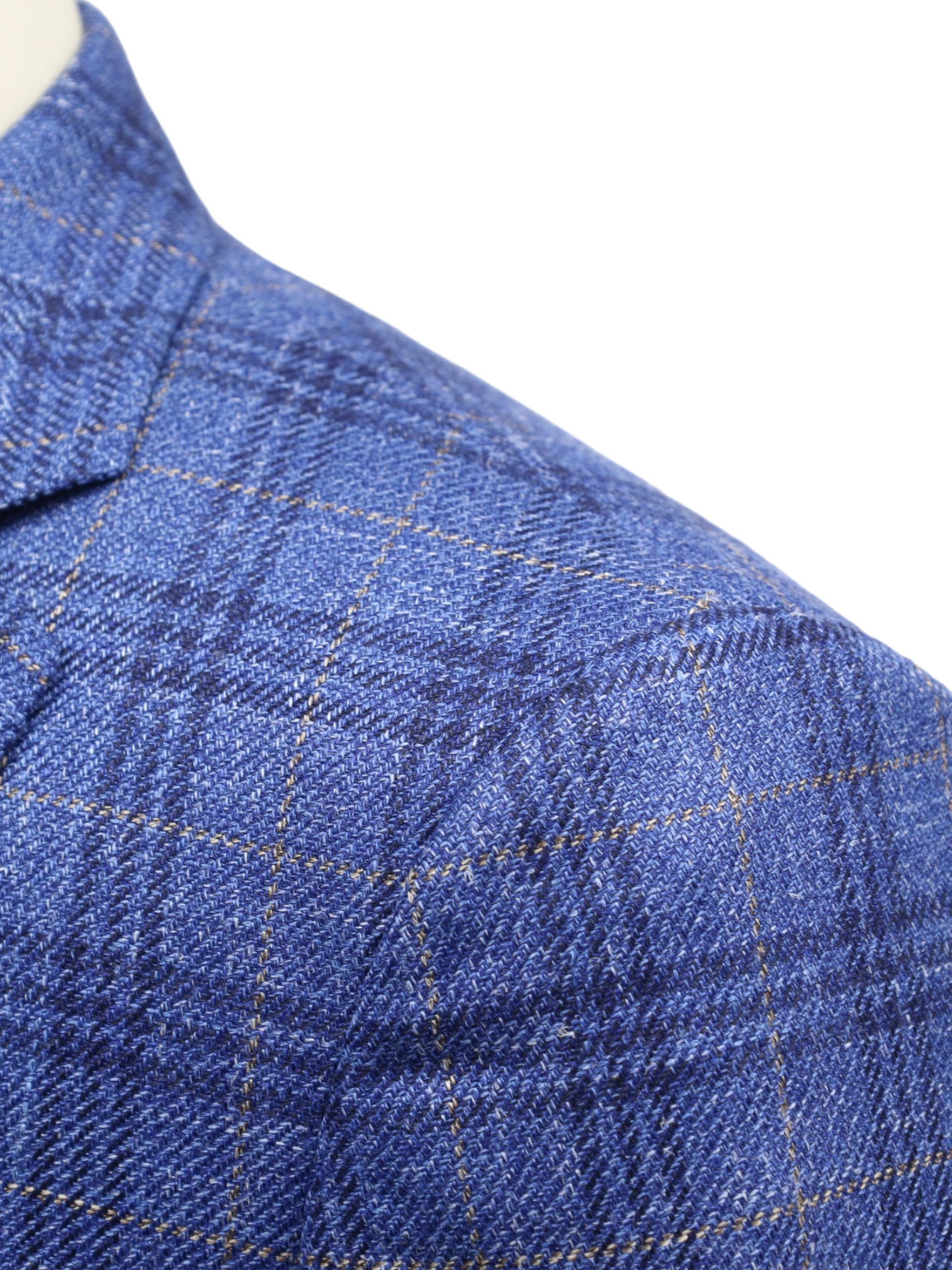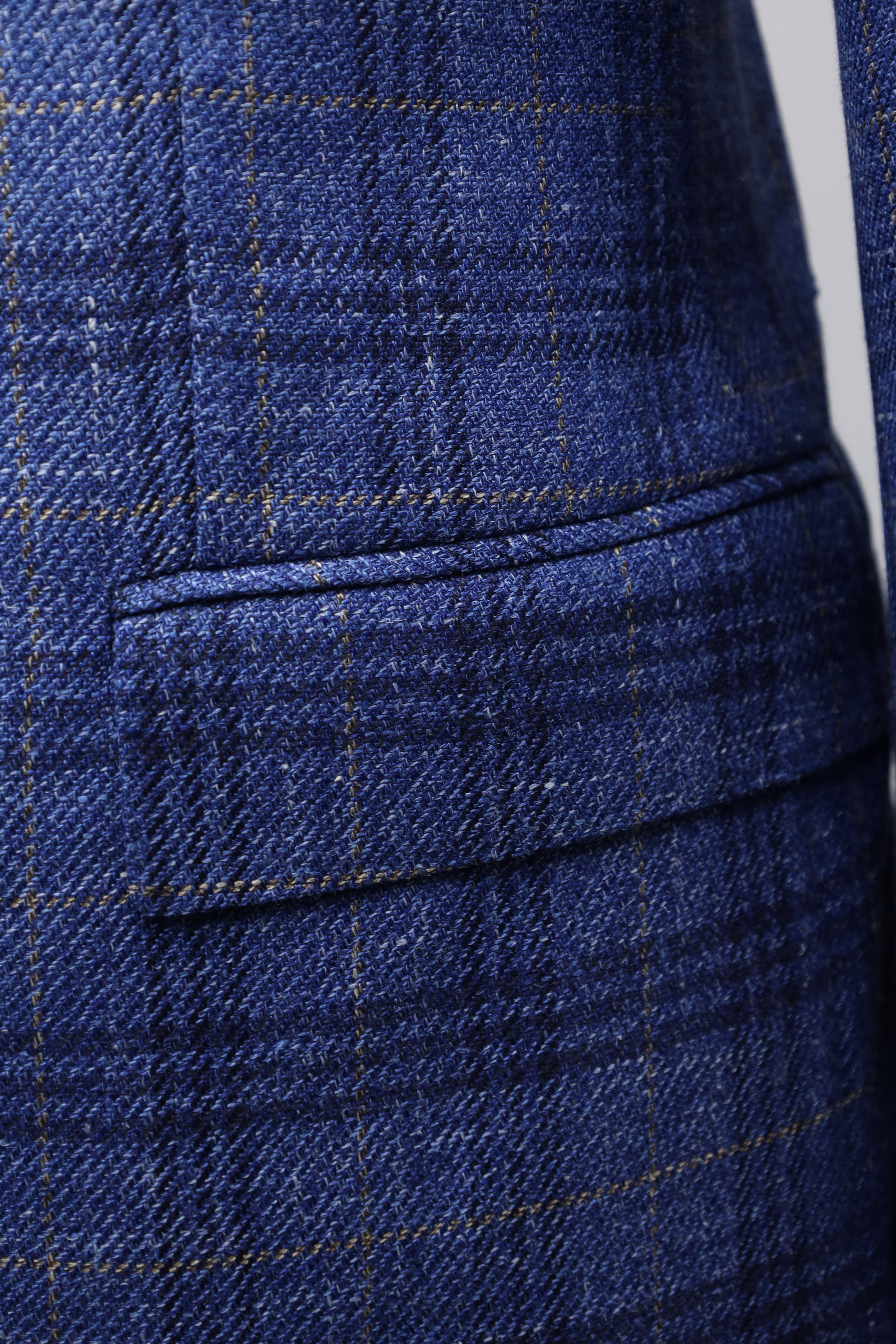 Loro Piana Denim Blue Wool, Silk & Linen Windowpane Jacket