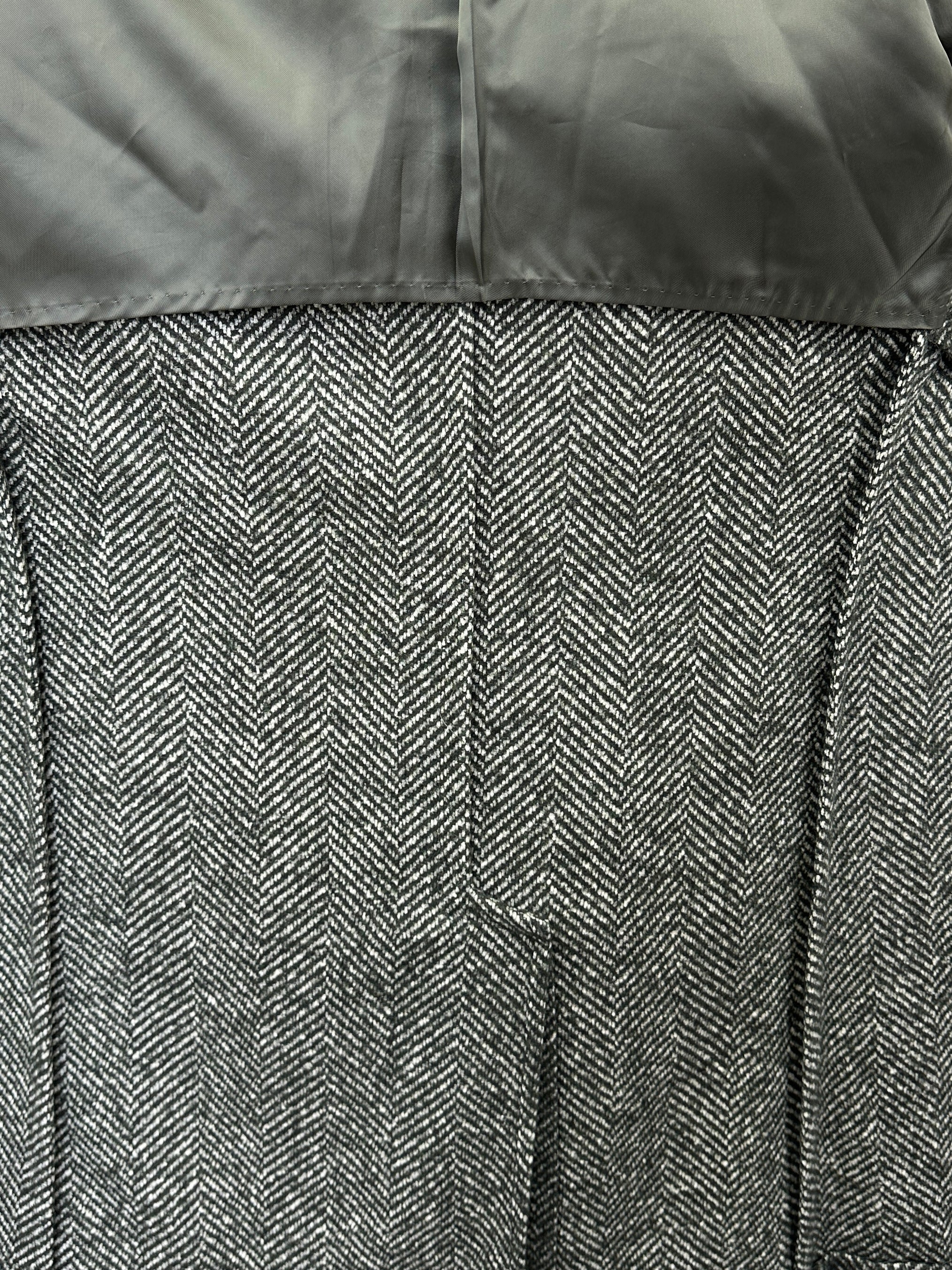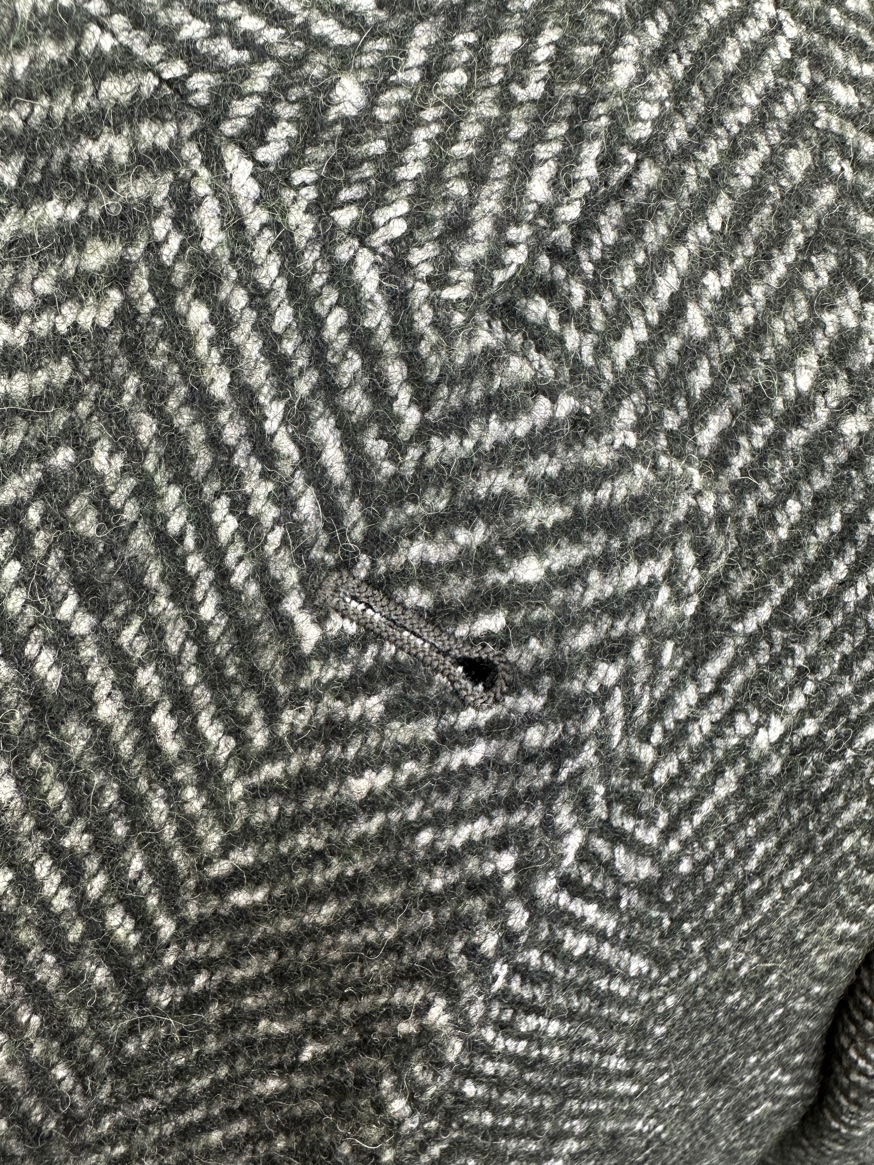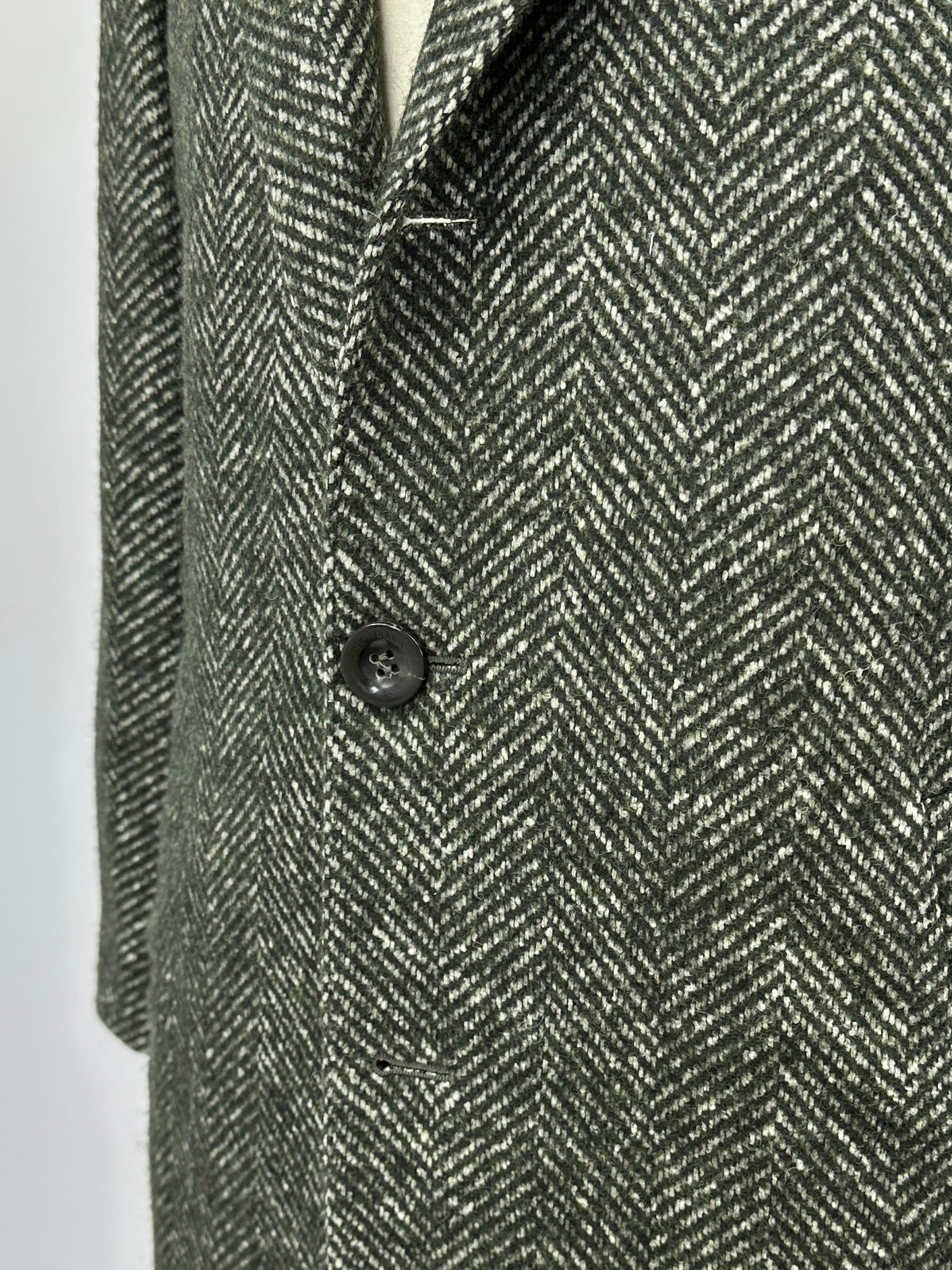 Green herringbone pattern overcoat cut from a soft wool, alpaca and polyamide blend - finished with their revolutionizing Rain System treatment. Loro Piana's groundbreaking PFC-Free Rain System® - is a water repellent treatment revolutionizing all their fabrics, even the non-laminated ones. It creates an invisible shield around each fiber, much like Teflon does for kitchenware, ensuring dust, dirt, and water-based stains are easily wiped away. Experience sharper, cleaner, and fresher clothing every day, while also enjoying enhanced durability, aligning with our core belief: a garment is meant to last a lifetime, not just a season.