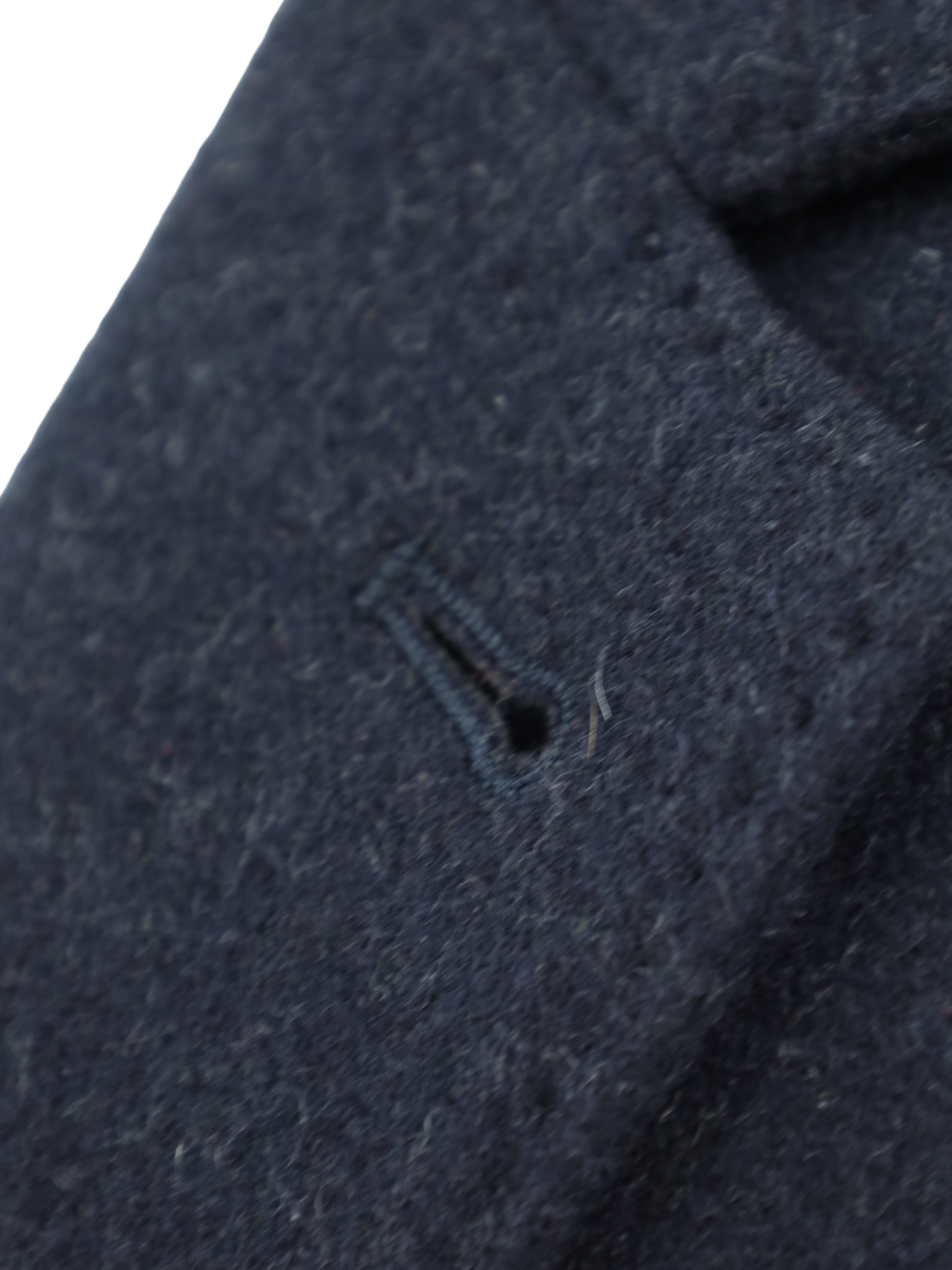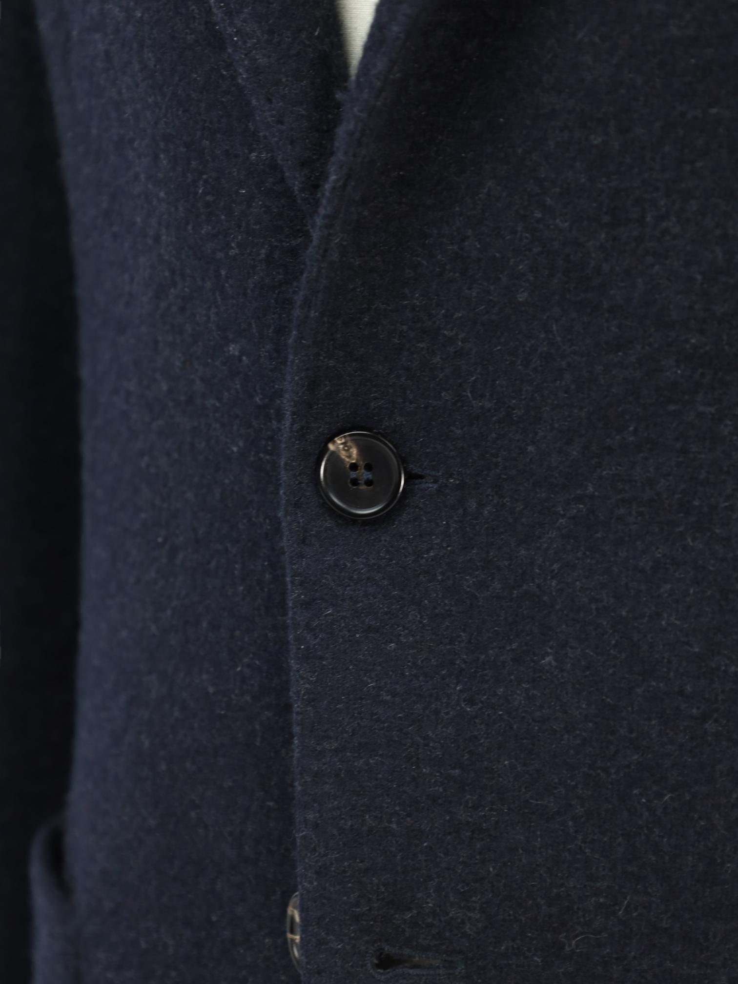 The ‘tre bottoni stirato a due’, also known as the three rolling on two lapel style, is perhaps the most infamous characteristic of the Neapolitan style jacket. The top button and buttonhole are ornamental, so are left unbuttoned. As the lapel rolls down it elegantly folds over the top button and stops just 4 cm above the second button creating the distinct roll of the lapel the style is known for. As it is intended to remain unbuttoned, the top buttonhole is actually made inside out so the beautiful side will still be visible.
