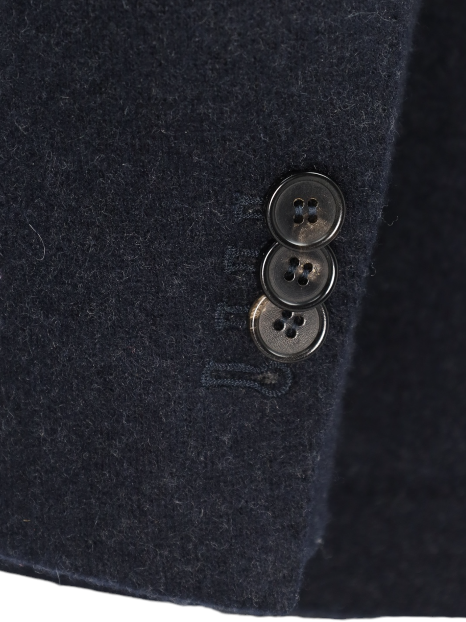 Opt for relaxed luxury with the Loro Piana Navy Plushy Unconstructed Cashmere-Blend Blazer. Made from a sumptuous cashmere blend, this unstructured blazer offers a laid-back yet sophisticated look. Loro Piana’s skilled artisans ensure every detail is perfected, making it ideal for any stylish, informal occasion. Discover the elaborated sartorial details below.