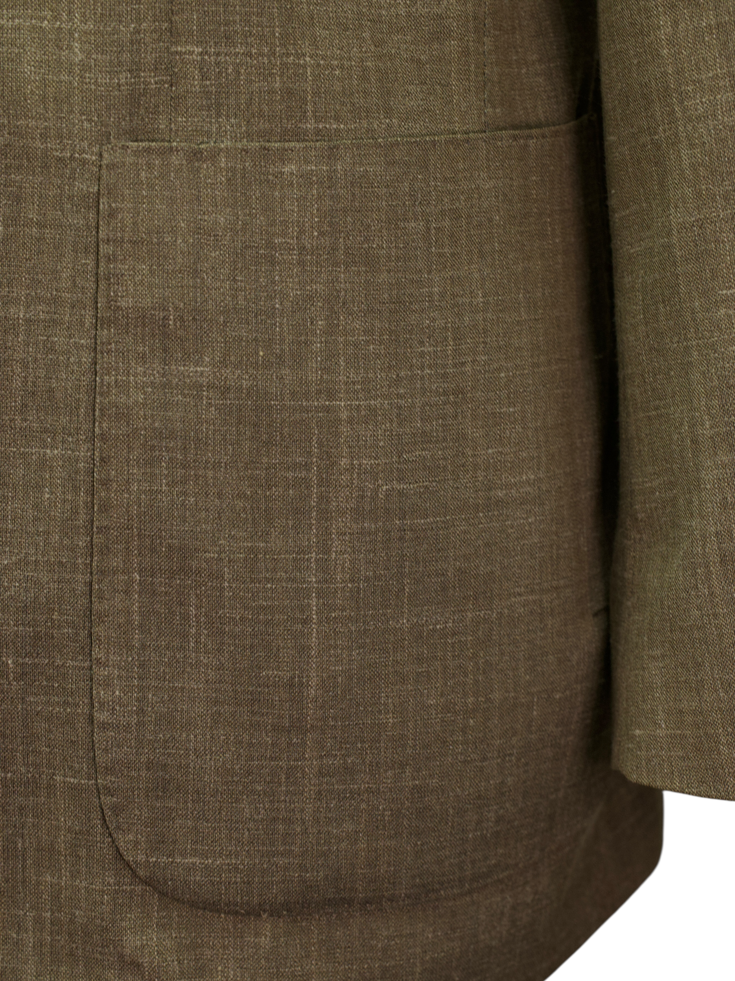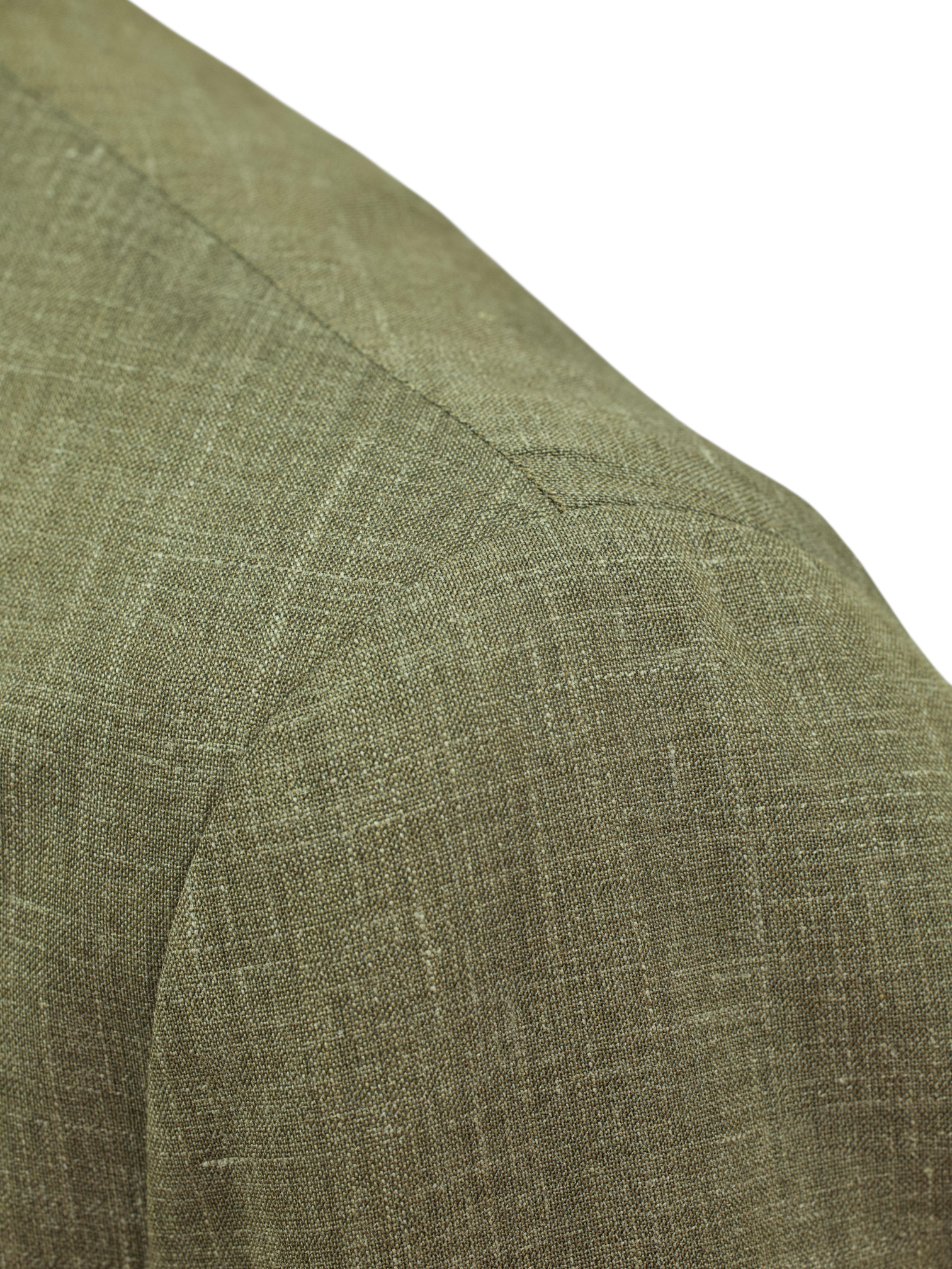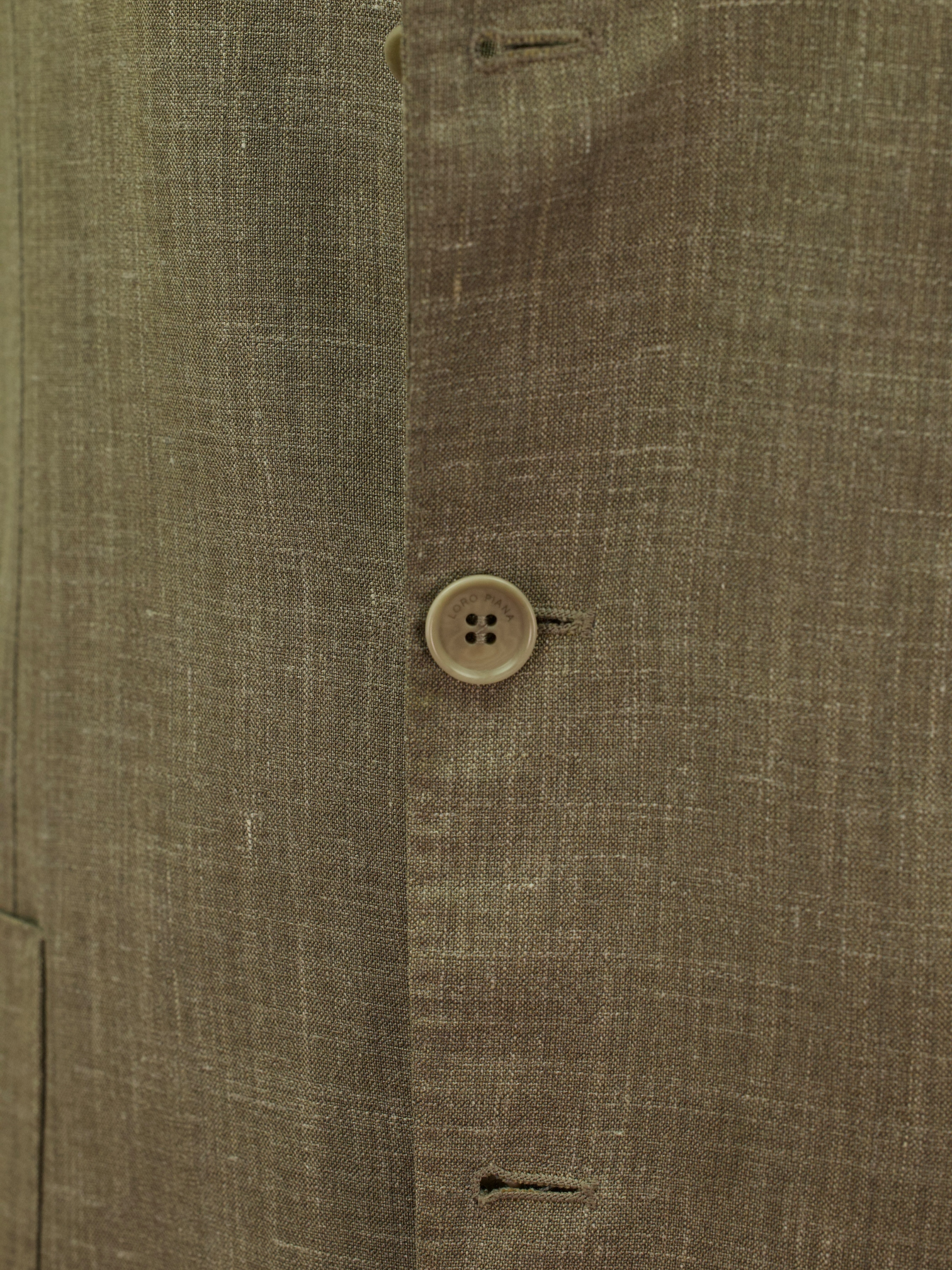 Completely unlined and unconstructed, it epitomizes Loro Piana’s commitment to comfort-driven tailoring. The blend of wool for elasticity, silk for softness, and linen for coolness makes it exceptionally lightweight and fluid—perfect for summer days and effortless travel. Finished with Loro Piana–engraved buttons and carefully tailored in Italy, this is a piece designed for movement, ease, and the kind of understated elegance that never tries too hard. Discover the elaborated sartorial details below.