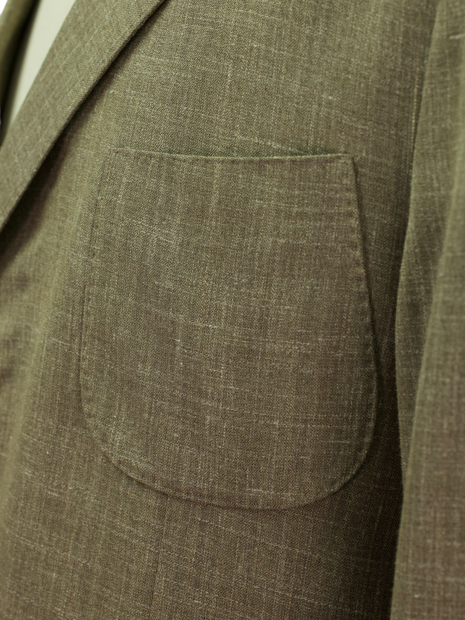 The ‘tre bottoni stirato a due’, also known as the three rolling on two lapel style, is perhaps the most infamous characteristic of the Neapolitan style jacket. The top button and buttonhole are ornamental, so are left unbuttoned. As the lapel rolls down it elegantly folds over the top button and stops just 4 cm above the second button creating the distinct roll of the lapel the style is known for. As it is intended to remain unbuttoned, the top buttonhole is actually made inside out so the beautiful side will still be visible.