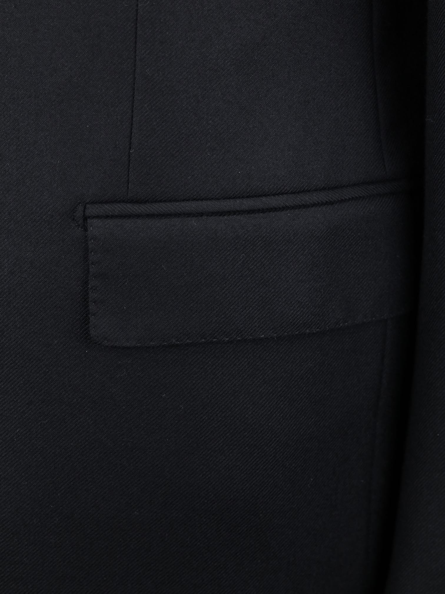 Discover the Luigi Borrelli black extrafine-wool suit, rendered in a subtle micro-herringbone weave that reveals its character only upon closer inspection. The soft texture and fine tonal variation give this piece an elegant depth, ideal for evening occasions or understated businesswear. Cut with notch lapels, dual vents, and distinctive patch pockets—a quietly bold touch for a black suit—it balances formality with relaxed Neapolitan ease. The jacket is fully lined for structure, and the trousers follow a timeless, gently tapered silhouette.