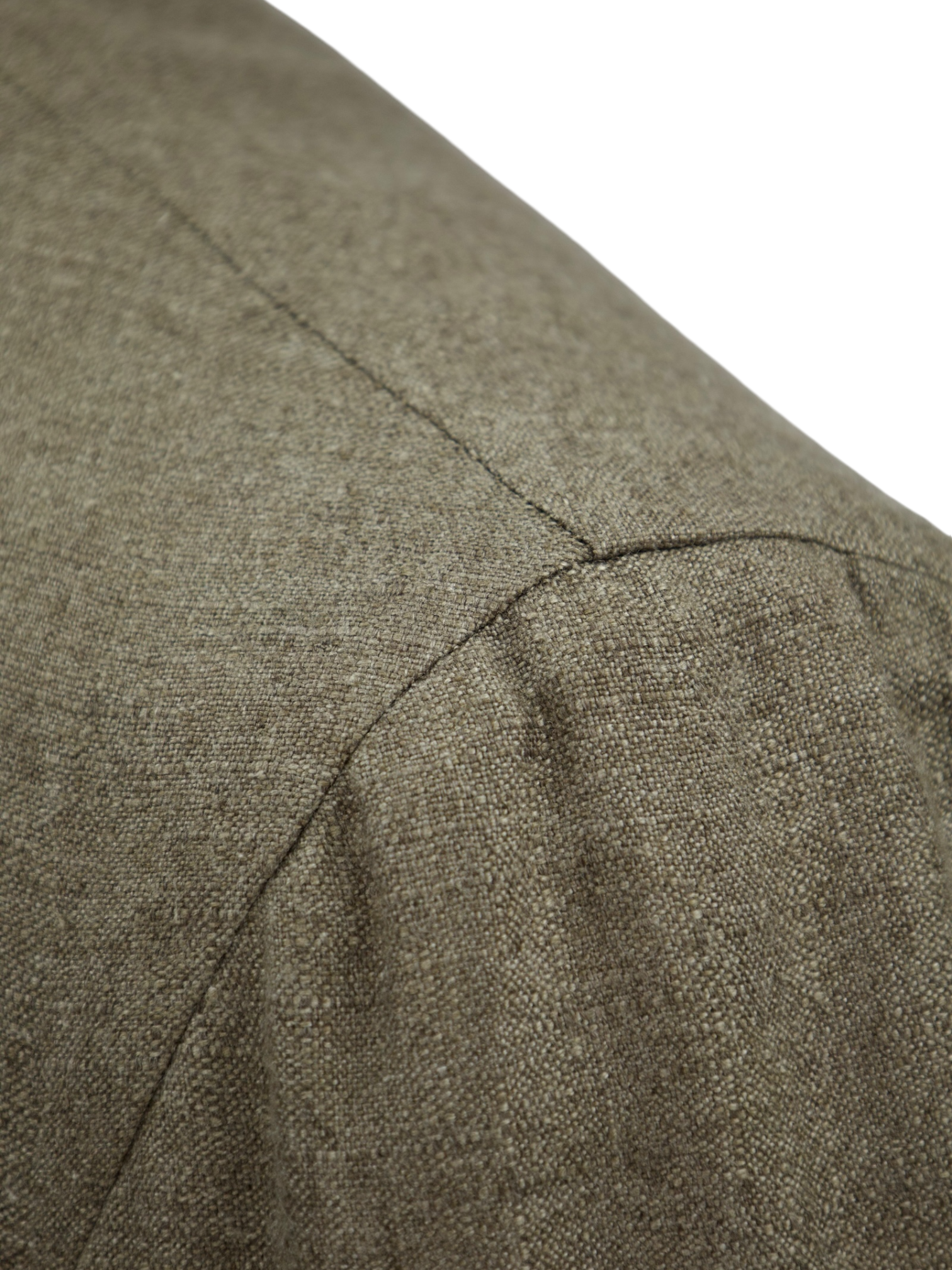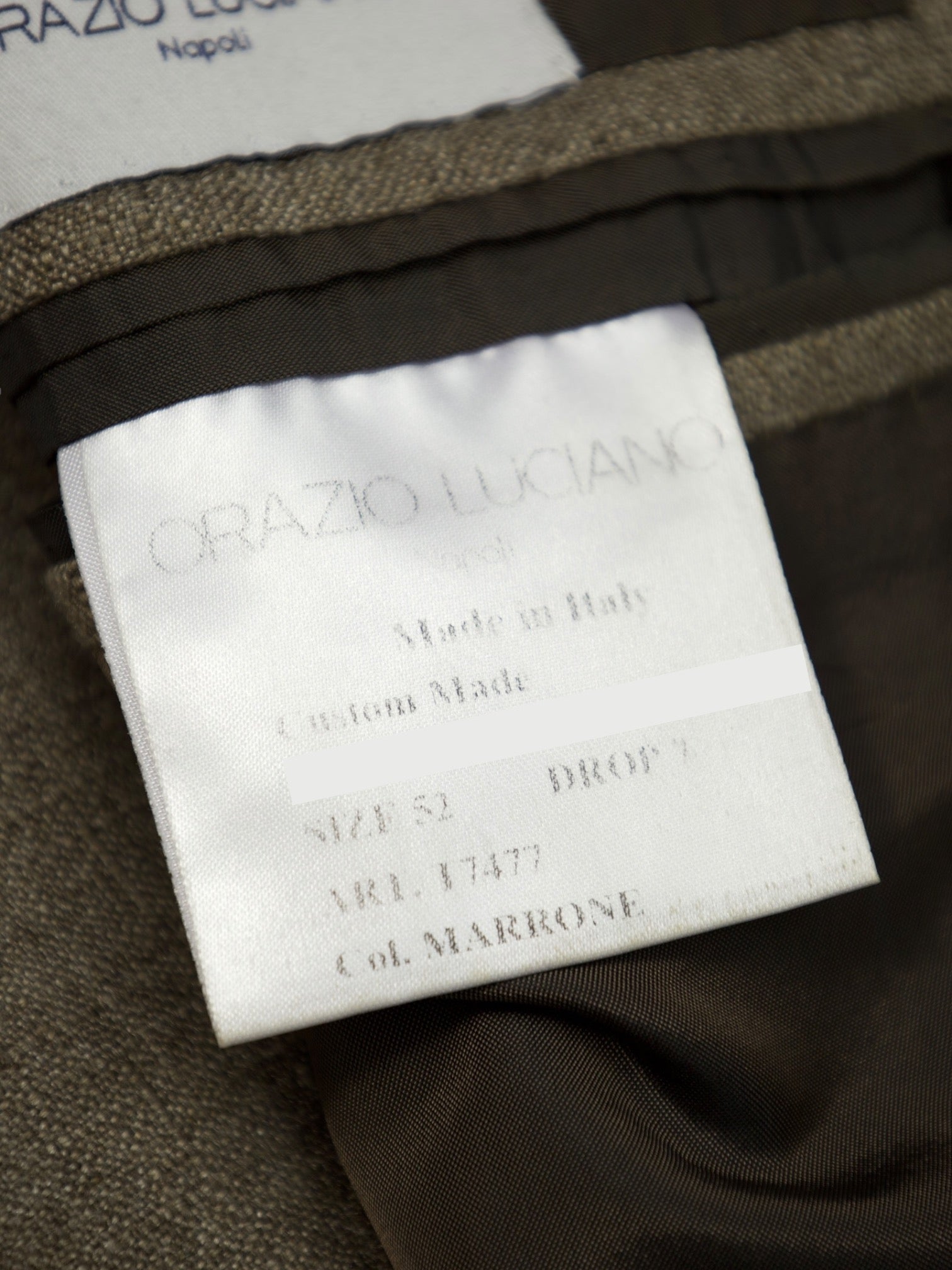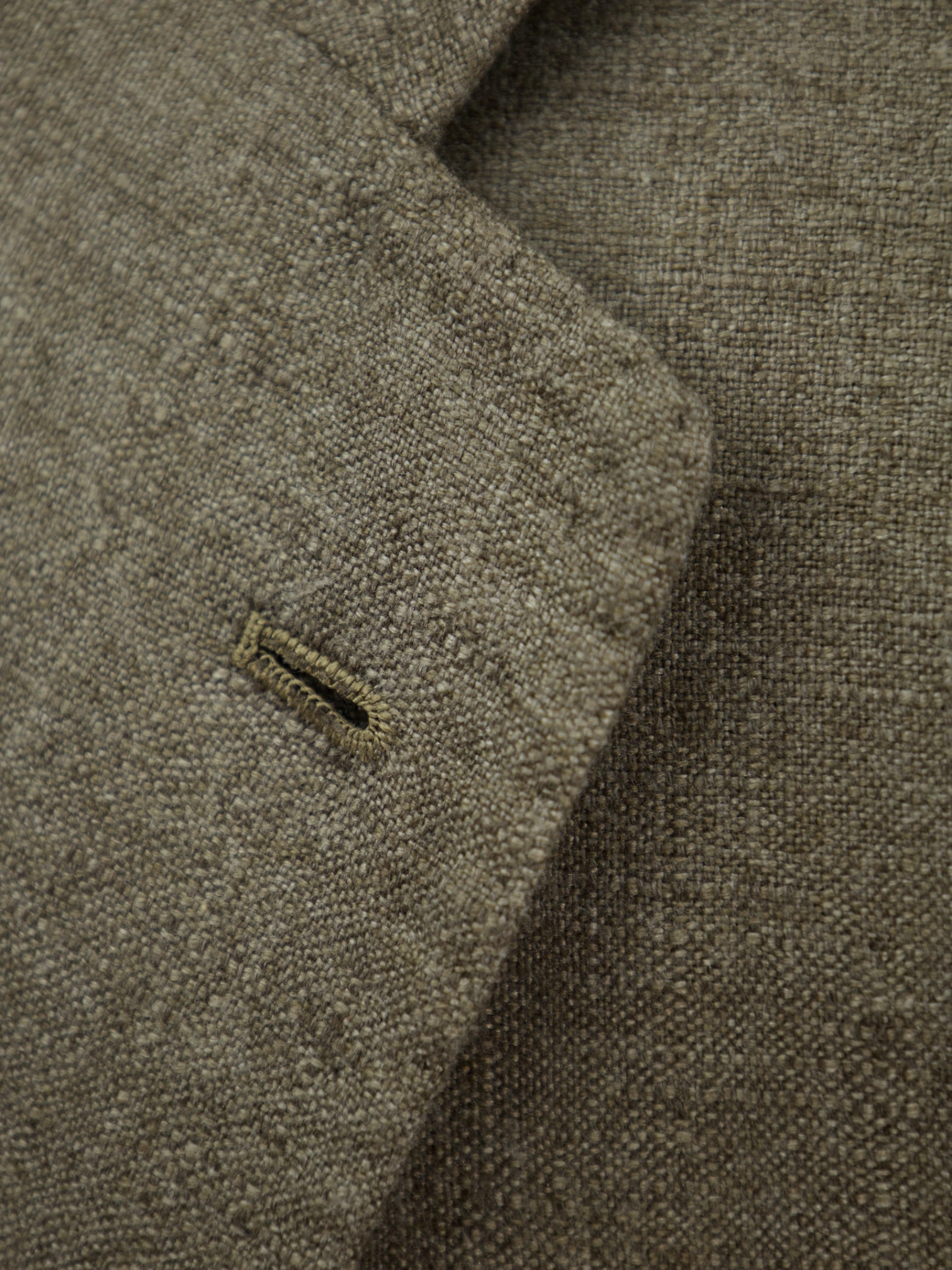 Handmade in Naples, this jacket reflects Orazio Luciano’s commitment to traditional Neapolitan tailoring techniques. Each piece is meticulously crafted by artisans, ensuring an impeccable fit that contours the wearer’s body with ease. The jacket's natural drape and attention to fine detailing, such as hand-stitched seams and buttonholes, further enhance its artisanal allure. Discover the elaborated sartorial details below.