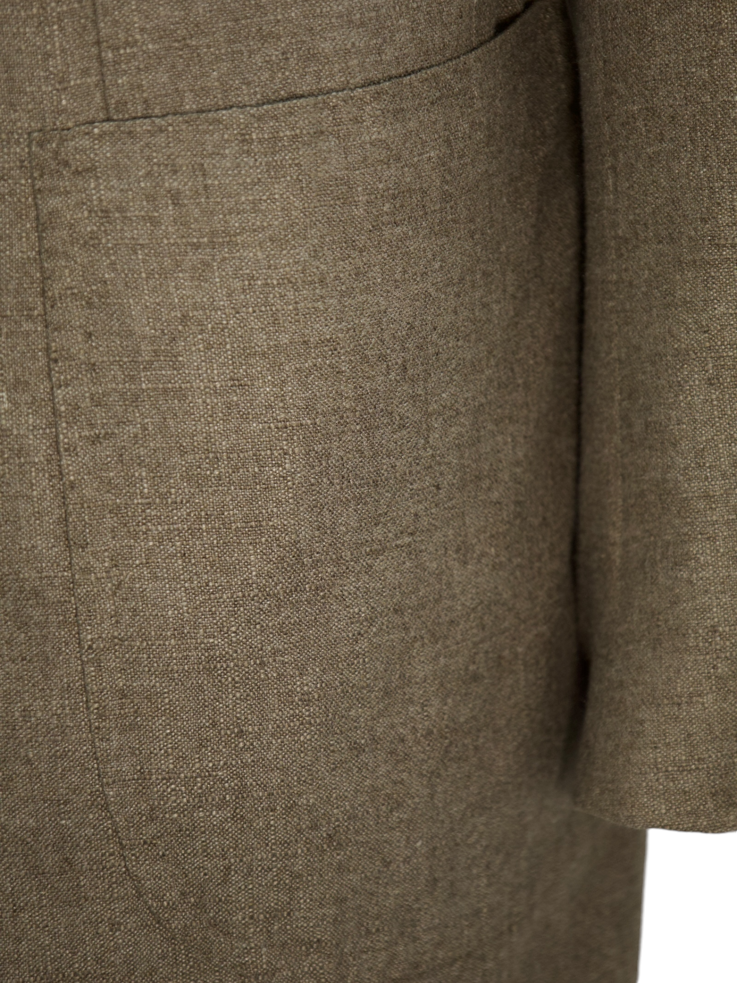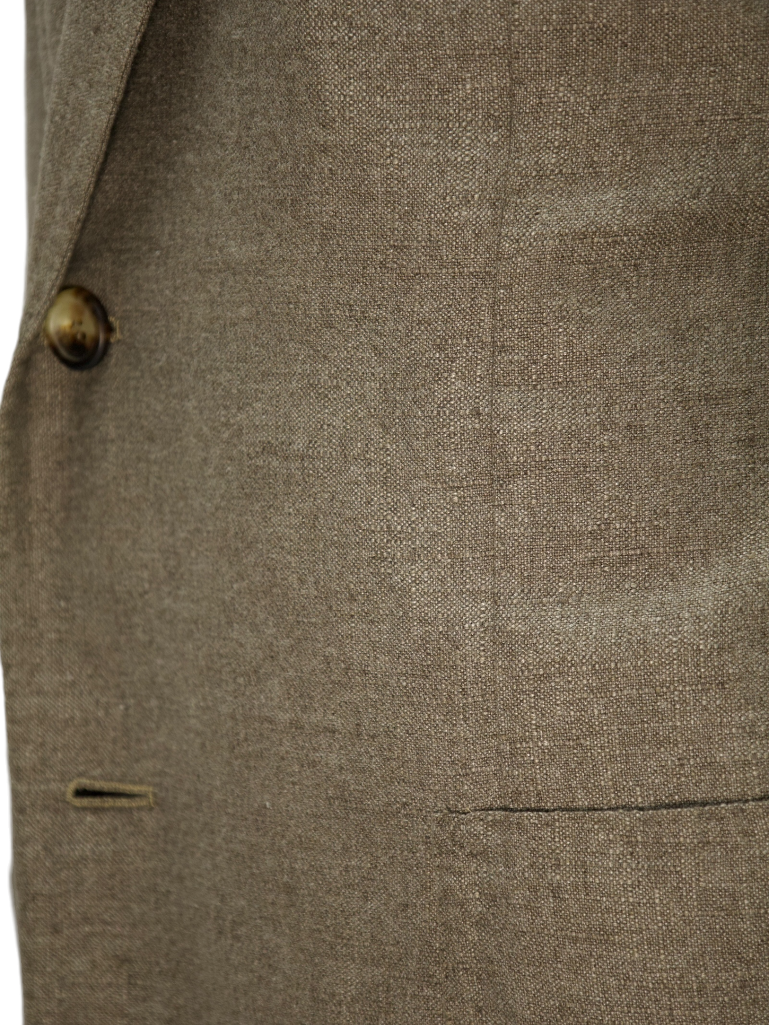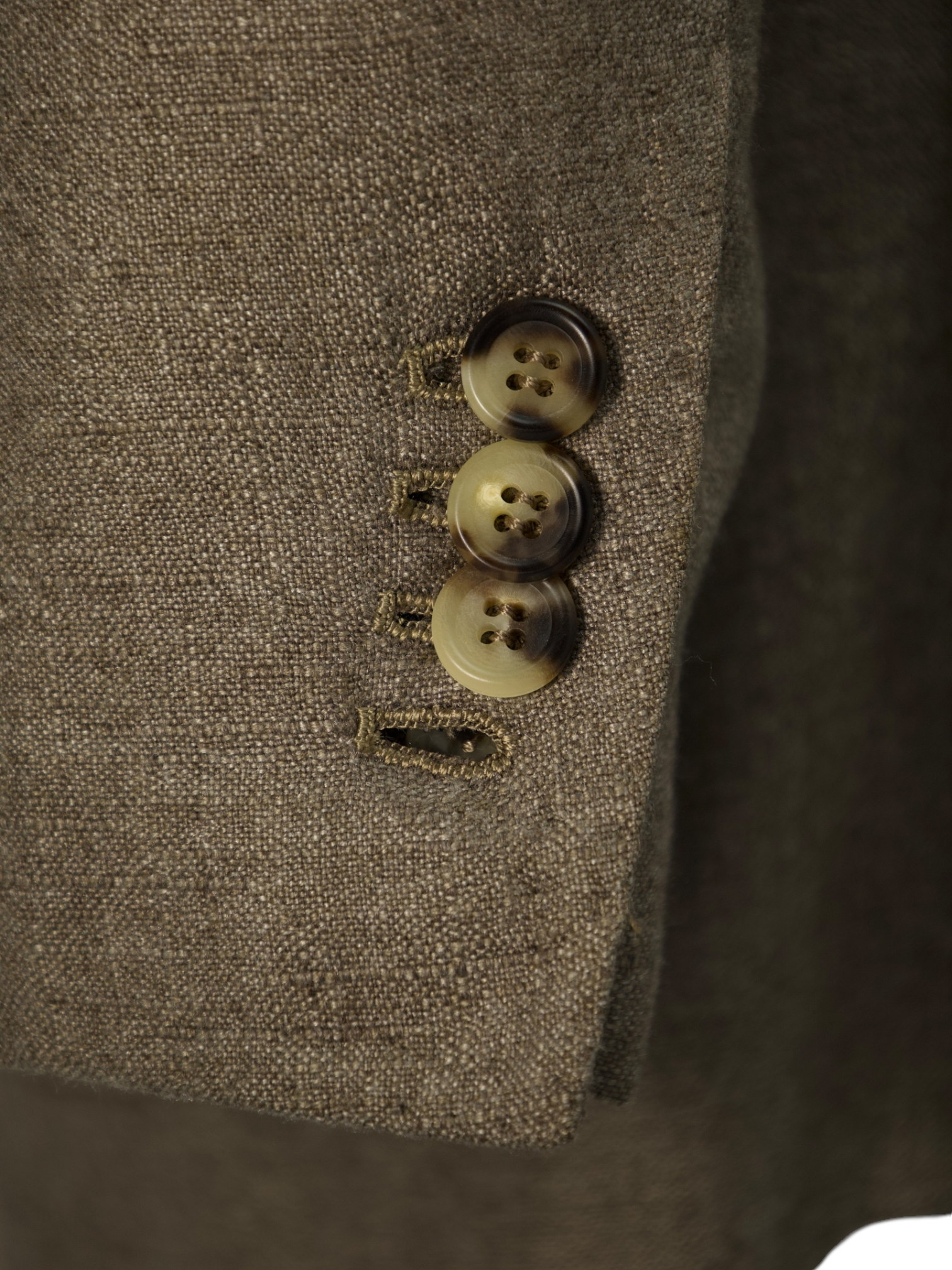 Handmade in Naples, this jacket reflects Orazio Luciano’s commitment to traditional Neapolitan tailoring techniques. Each piece is meticulously crafted by artisans, ensuring an impeccable fit that contours the wearer’s body with ease. The jacket's natural drape and attention to fine detailing, such as hand-stitched seams and buttonholes, further enhance its artisanal allure. Discover the elaborated sartorial details below.