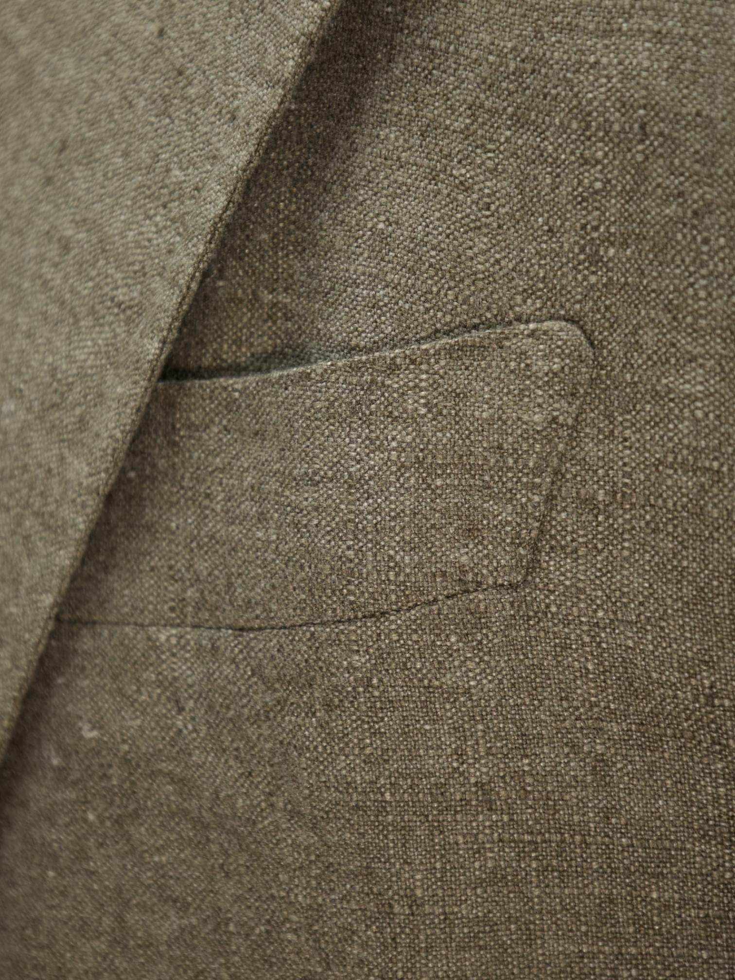 The barchetta pocket is often thought to be a tailoring detail exclusively from Italy. The word “barchetta” is Italian for “little boat.” It describes how the pocket floats on the chest, gently angled upwards, like the bow of a sailboat.