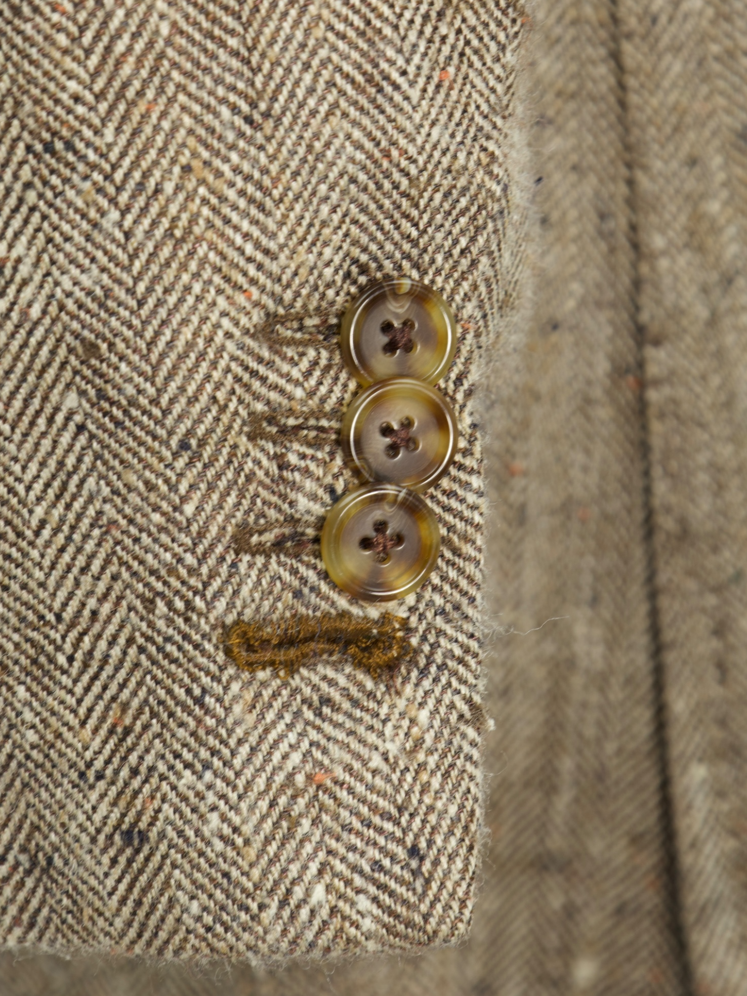 Also known as stacked buttons or waterfall buttons, kissing buttons are associated with Italian tailoring as Italian tailors make their jacket sleeve buttons in the kissing style. In this style, buttons touch each other and overlap one another. Handmade buttonholes; Even this step, apparently the simplest, is treated with an abundance of detail. Attaching the buttons is a job that requires patience and must be completed to perfection.