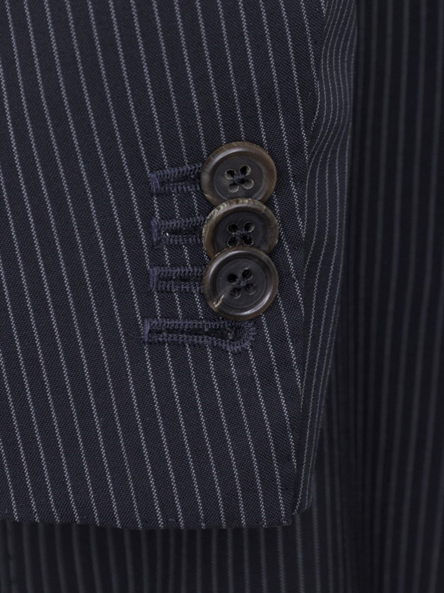 Also known as stacked buttons or waterfall buttons, kissing buttons are associated with Italian tailoring as Italian tailors make their jacket sleeve buttons in the kissing style. In this style, buttons touch each other and overlap one another. Handmade buttonholes; Even this step, apparently the simplest, is treated with an abundance of detail. Attaching the buttons is a job that requires patience and must be completed to perfection.