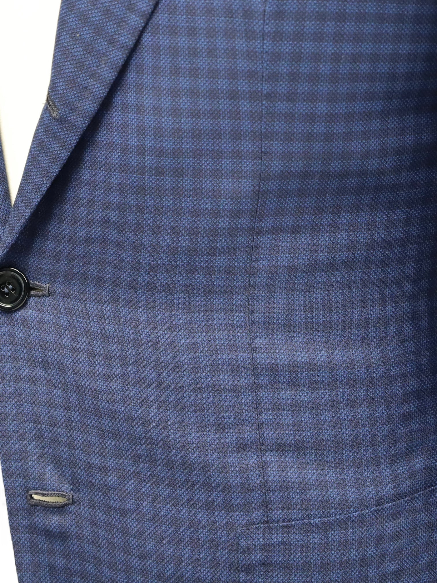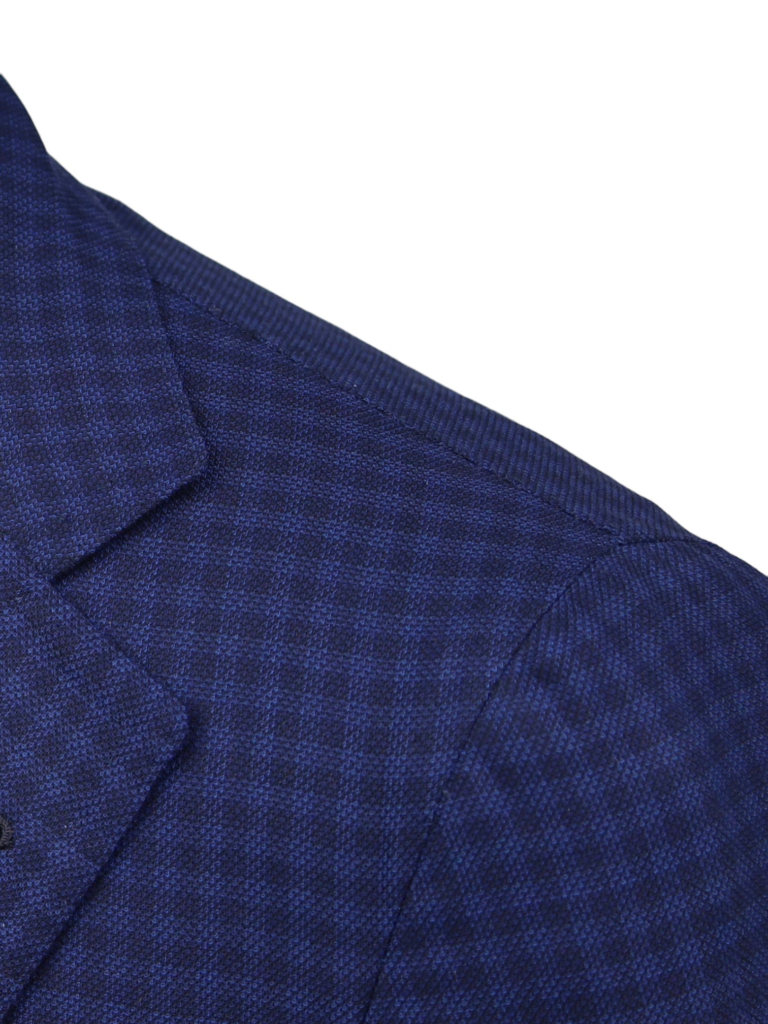 Orazio Luciano Blue Gingham Check Wool & Silk Blazer