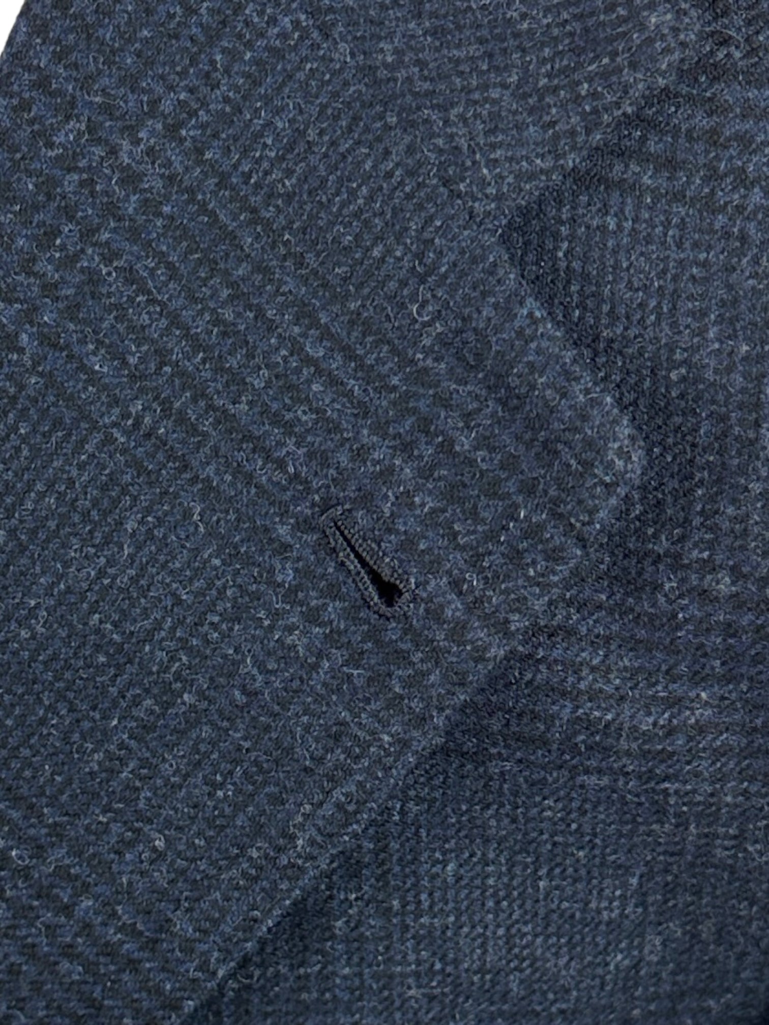 The ‘tre bottoni stirato a due’, also known as the three rolling on two lapel style, is perhaps the most infamous characteristic of the Neapolitan style jacket. The top button and buttonhole are ornamental, so are left unbuttoned. As the lapel rolls down it elegantly folds over the top button and stops just 4 cm above the second button creating the distinct roll of the lapel the style is known for. As it is intended to remain unbuttoned, the top buttonhole is actually made inside out so the beautiful side will still be visible.