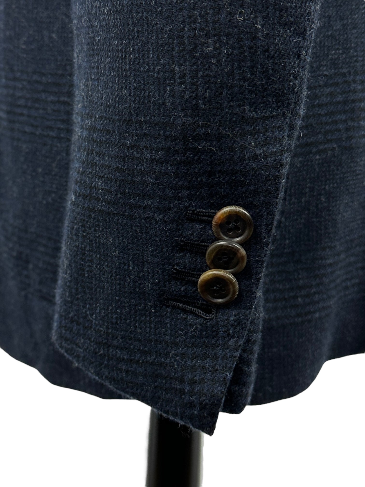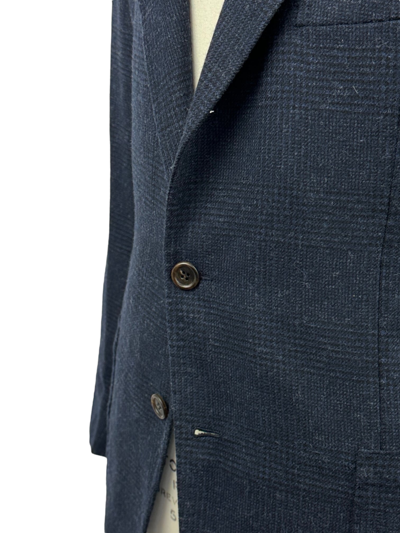 Also known as stacked buttons or waterfall buttons, kissing buttons are associated with Italian tailoring as Italian tailors make their jacket sleeve buttons in the kissing style. In this style, buttons touch each other and overlap one another. Handmade buttonholes; Even this step, apparently the simplest, is treated with an abundance of detail. Attaching the buttons is a job that requires patience and must be completed to perfection.
