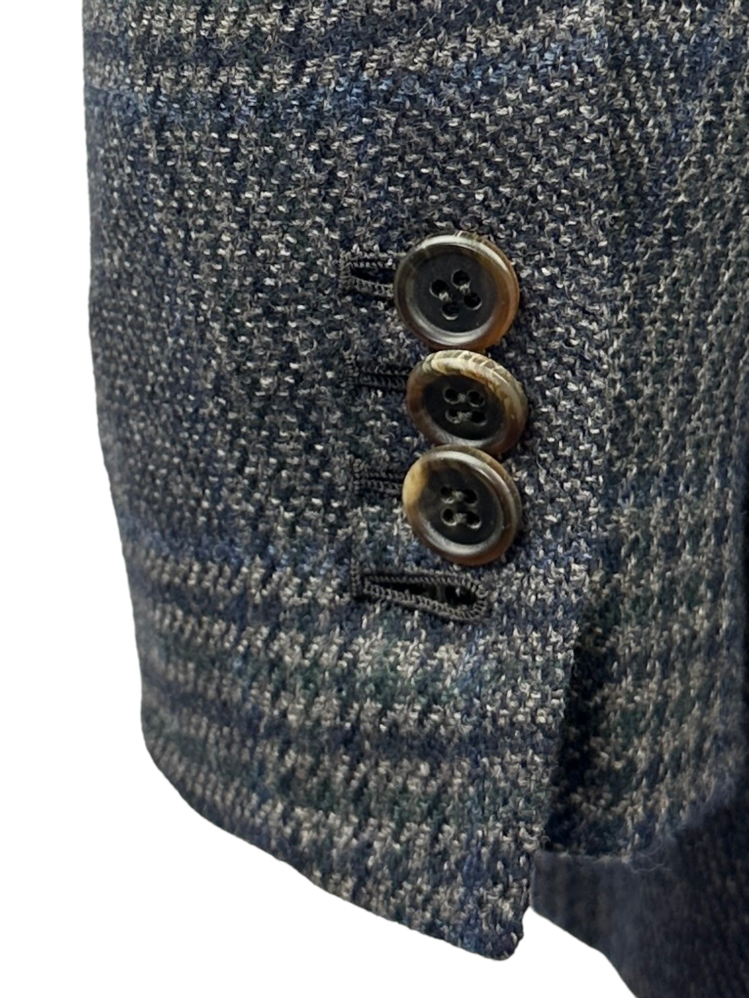 Also known as stacked buttons or waterfall buttons, kissing buttons are associated with Italian tailoring as Italian tailors make their jacket sleeve buttons in the kissing style. In this style, buttons touch each other and overlap one another. Handmade buttonholes; Even this step, apparently the simplest, is treated with an abundance of detail. Attaching the buttons is a job that requires patience and must be completed to perfection.
