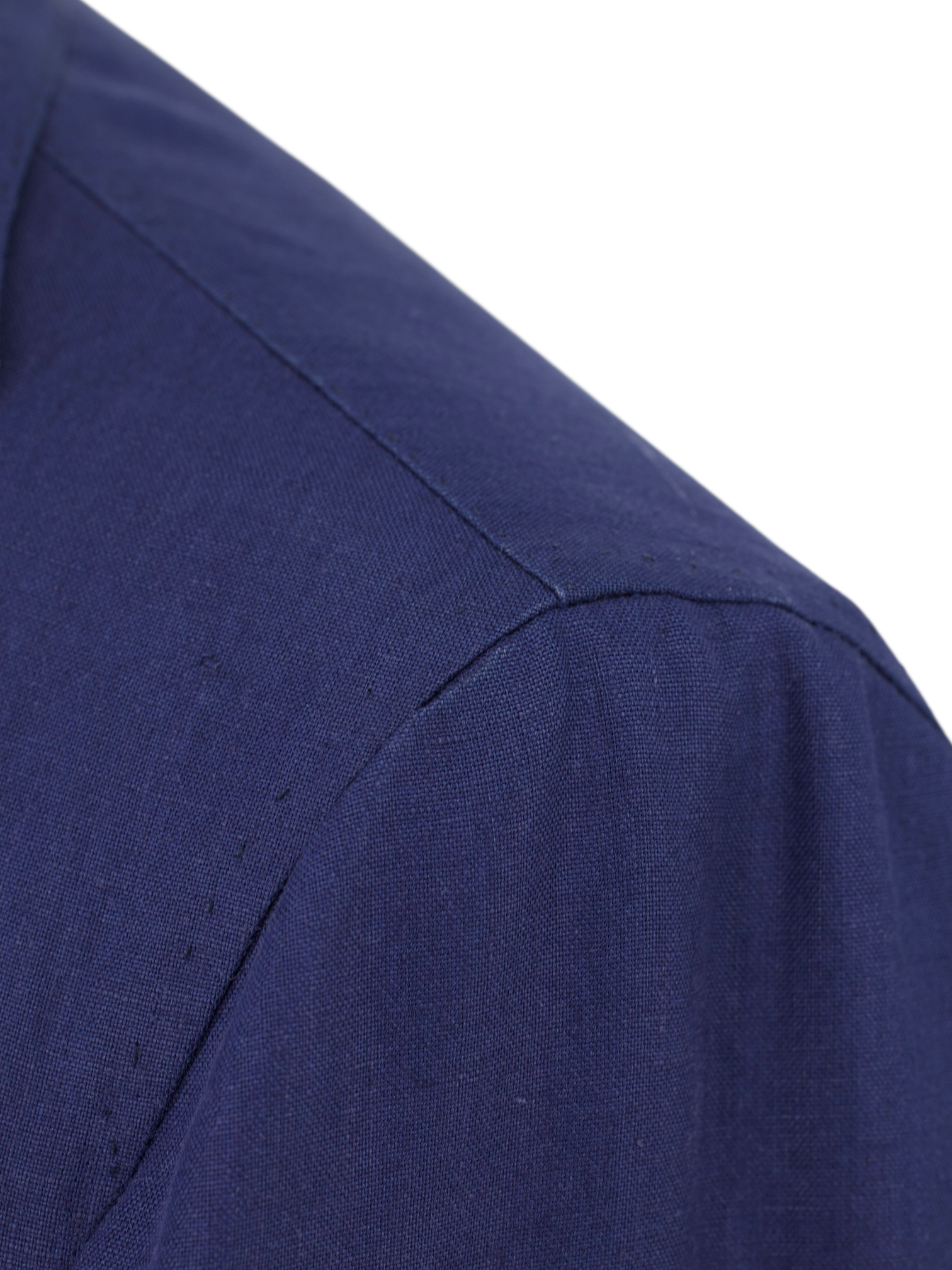 Spalla Camicia roughly translates to 'shirt sleeve' in Italian and is a shoulder style created and popularized by Neapolitan tailors. The name 'shirt sleeve' was so coined due to the characteristic shirring found at the sleeve's head where the fullness of the larger sleeve collapses. Rather than having the head of the sleeve turned back and stitched inside, the head is lapped under and stitched along the top.