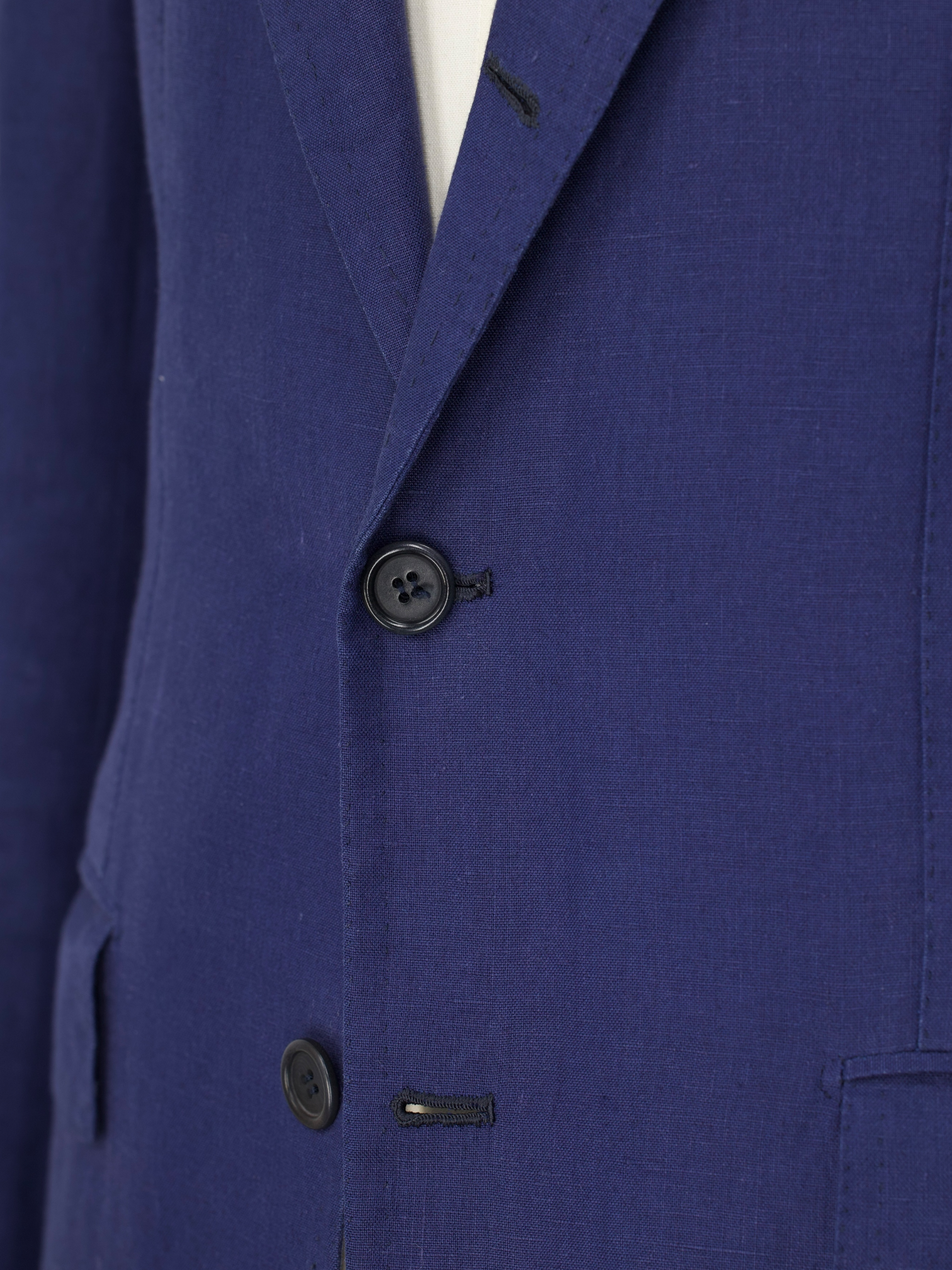 Discover the breezy refinement of this Orazio Luciano summer suit, tailored from pure linen in a radiant cobalt blue that captures the light with casual elegance. Designed with notch lapels, patch pockets, and a lightly structured shoulder, it embodies the relaxed sophistication of Neapolitan tailoring. The linen has developed a subtle natural patina that enhances its depth and character, making it ideal for warm-weather dressing with personality. Lightweight and supremely breathable, it’s a piece that lends ease and vibrancy to summer occasions, whether worn as a full suit or as separates.
