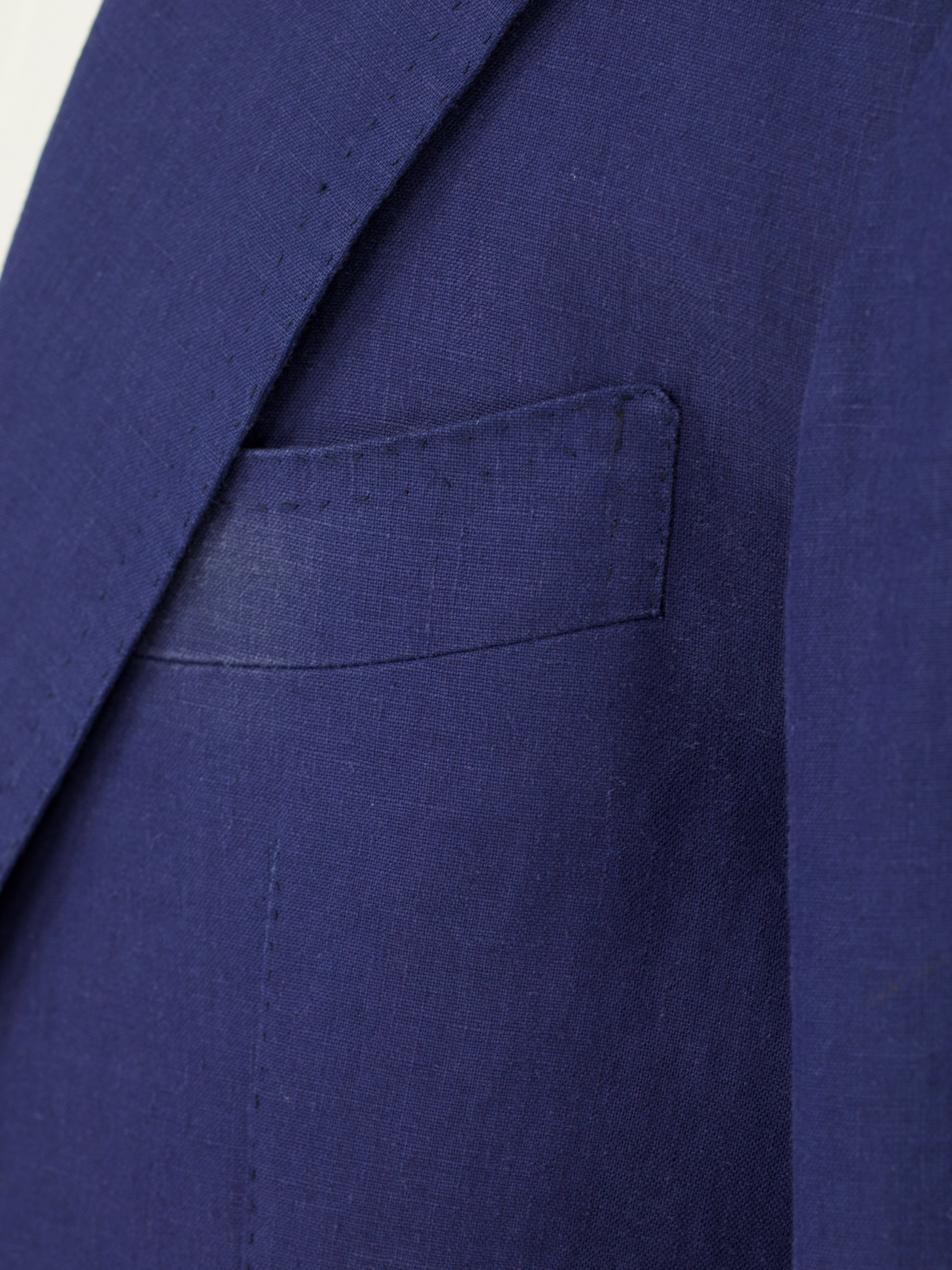 The barchetta pocket is often thought to be a tailoring detail exclusively from Italy. The word “barchetta” is Italian for “little boat.” It describes how the pocket floats on the chest, gently angled upwards, like the bow of a sailboat.