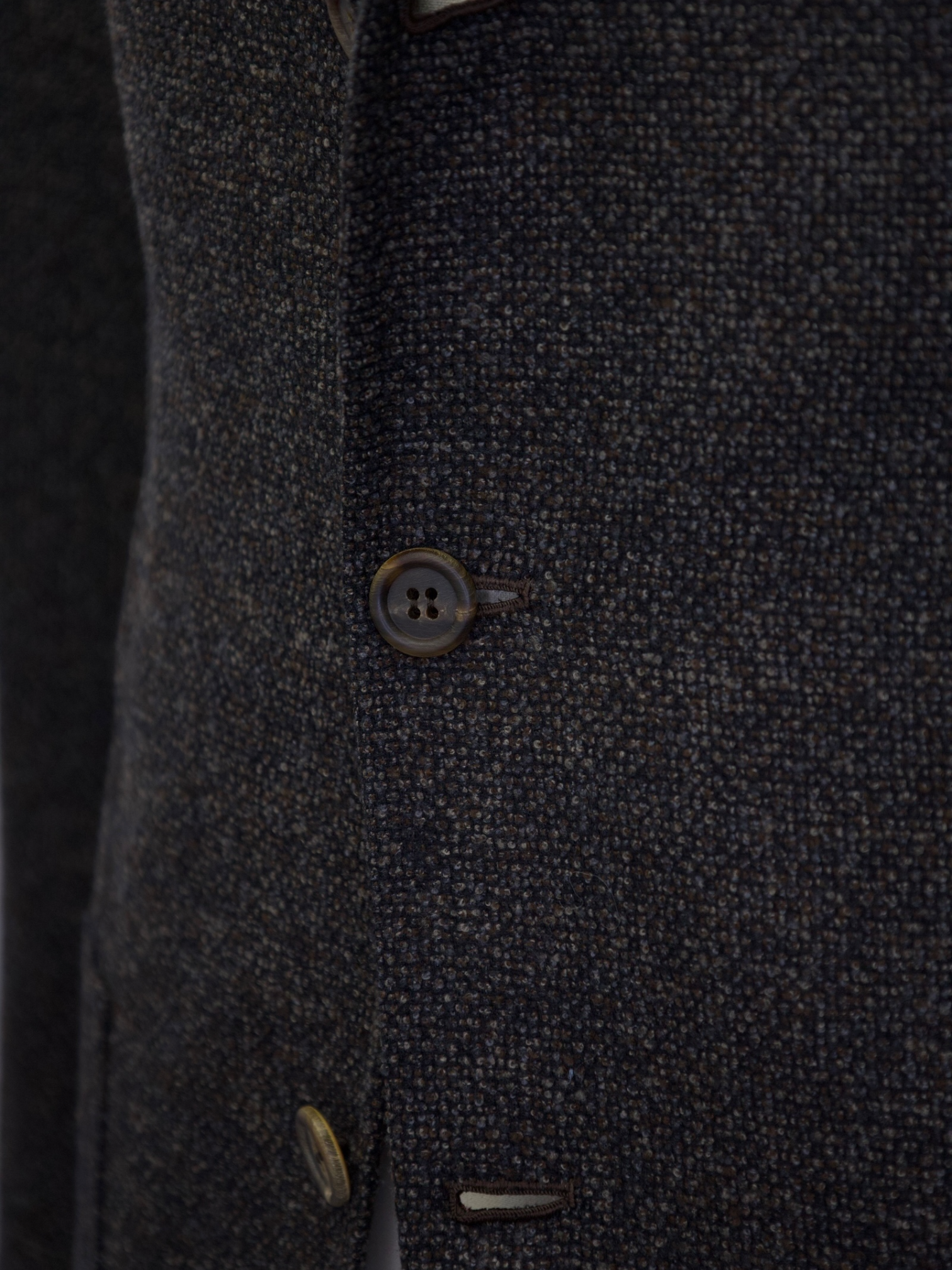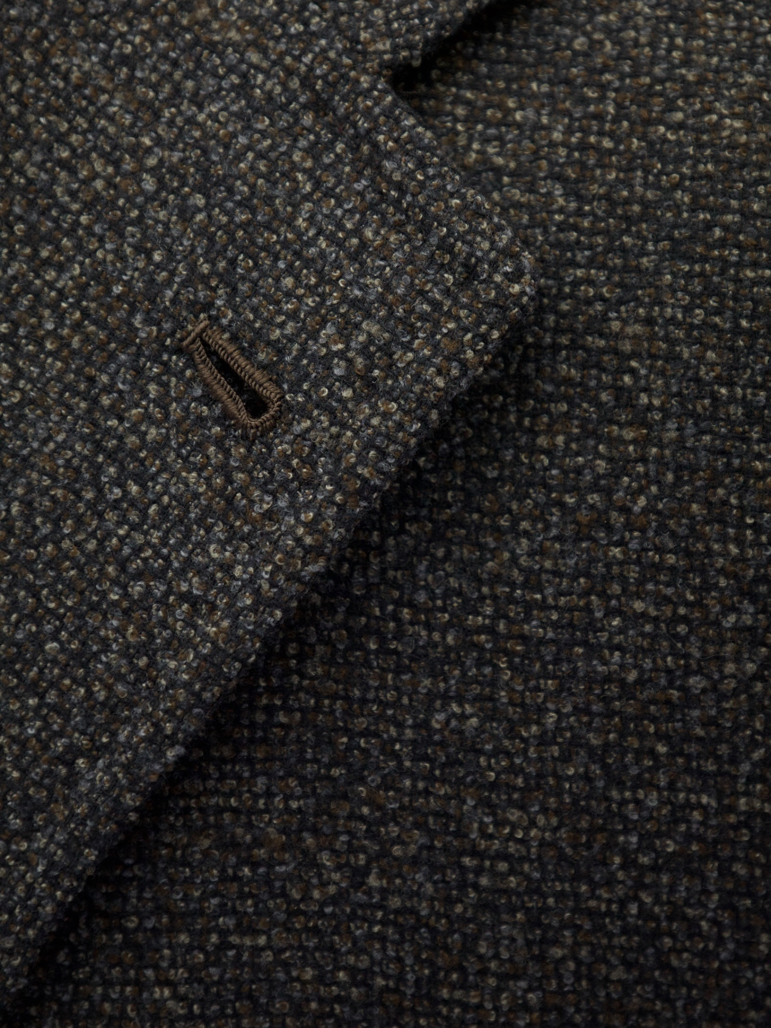 Each Orazio Luciano jacket is a product of dedicated Neapolitan craftsmanship, and this boucle piece is no exception. Handcrafted by master tailors in Naples, every detail—from the hand-sewn buttonholes to the carefully executed pick stitching—reflects the meticulous attention to detail that defines the brand. The wool, silk, and cashmere blend is chosen for its durability, softness, and refined sheen, ensuring that this jacket remains both elegant and resilient over time. This Dark Green Boucle Jacket is a testament to Italian tailoring, capturing the brand’s commitment to luxurious, artisanal quality. Discover the elaborated sartorial details below.