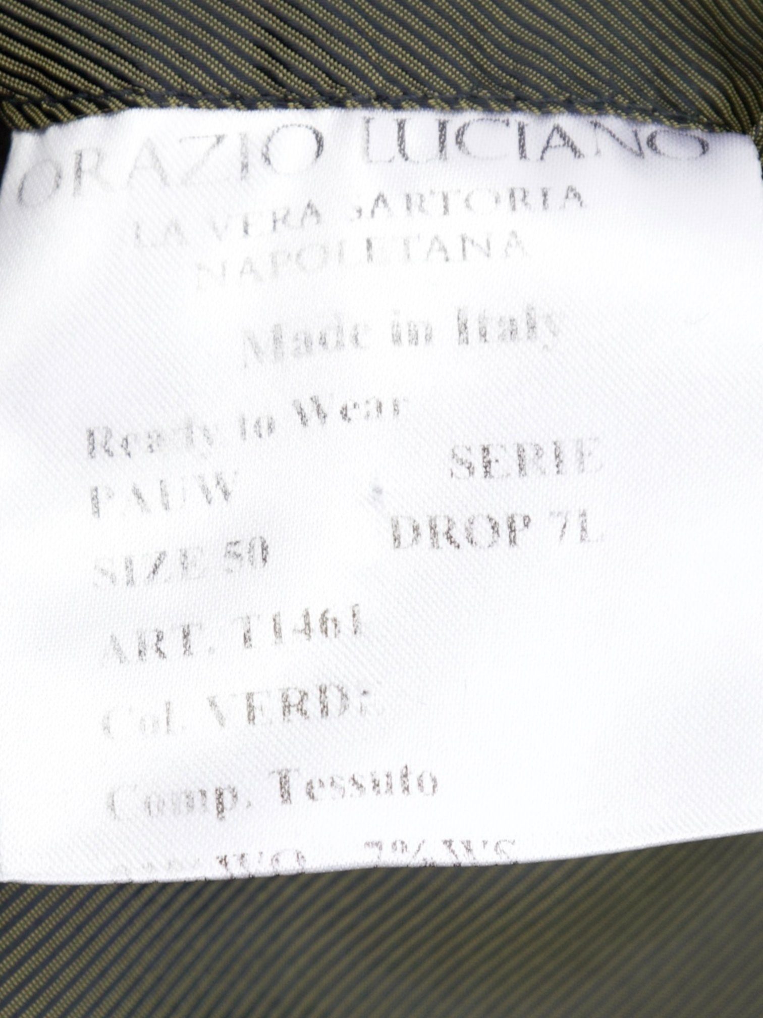 Handmade by Orazio Luciano’s skilled artisans in Naples, this jacket exemplifies the artistry of Neapolitan tailoring, combining timeless craftsmanship with luxurious materials. The wool-cashmere blend is selected for its warmth, softness, and durability, ensuring a garment that feels as exceptional as it looks. Each detail, from the hand-stitched buttonholes to the precise pick stitching and expertly set lapels, is executed with meticulous attention to quality. This Forest Green Micro-Structure Jacket is a refined piece that captures the essence of Italian elegance and artisanal skill. Discover the elaborated sartorial details below.