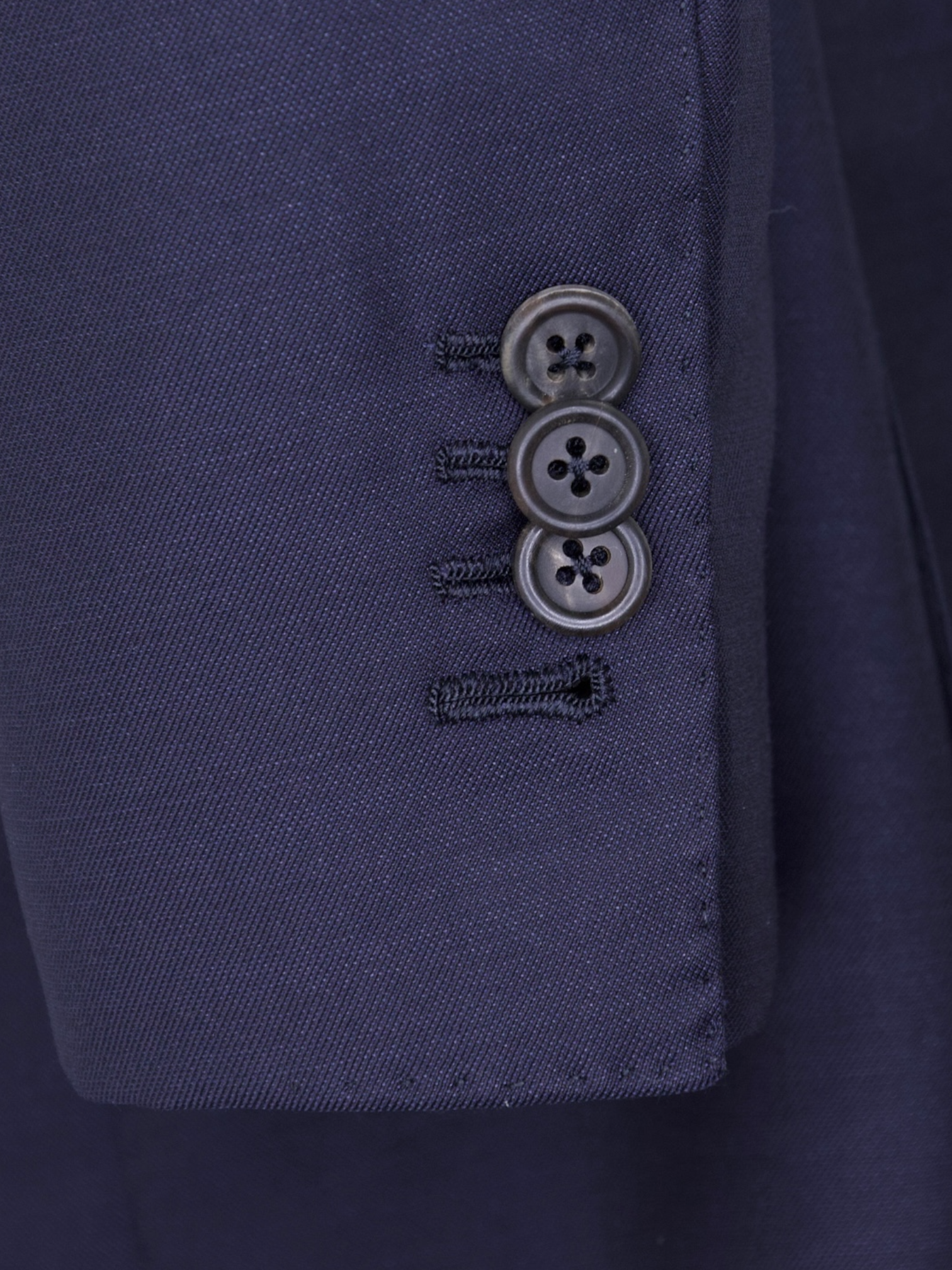 Also known as stacked buttons or waterfall buttons, kissing buttons are associated with Italian tailoring as Italian tailors make their jacket sleeve buttons in the kissing style. In this style, buttons touch each other and overlap one another. Handmade buttonholes; Even this step, apparently the simplest, is treated with an abundance of detail. Attaching the buttons is a job that requires patience and must be completed to perfection.