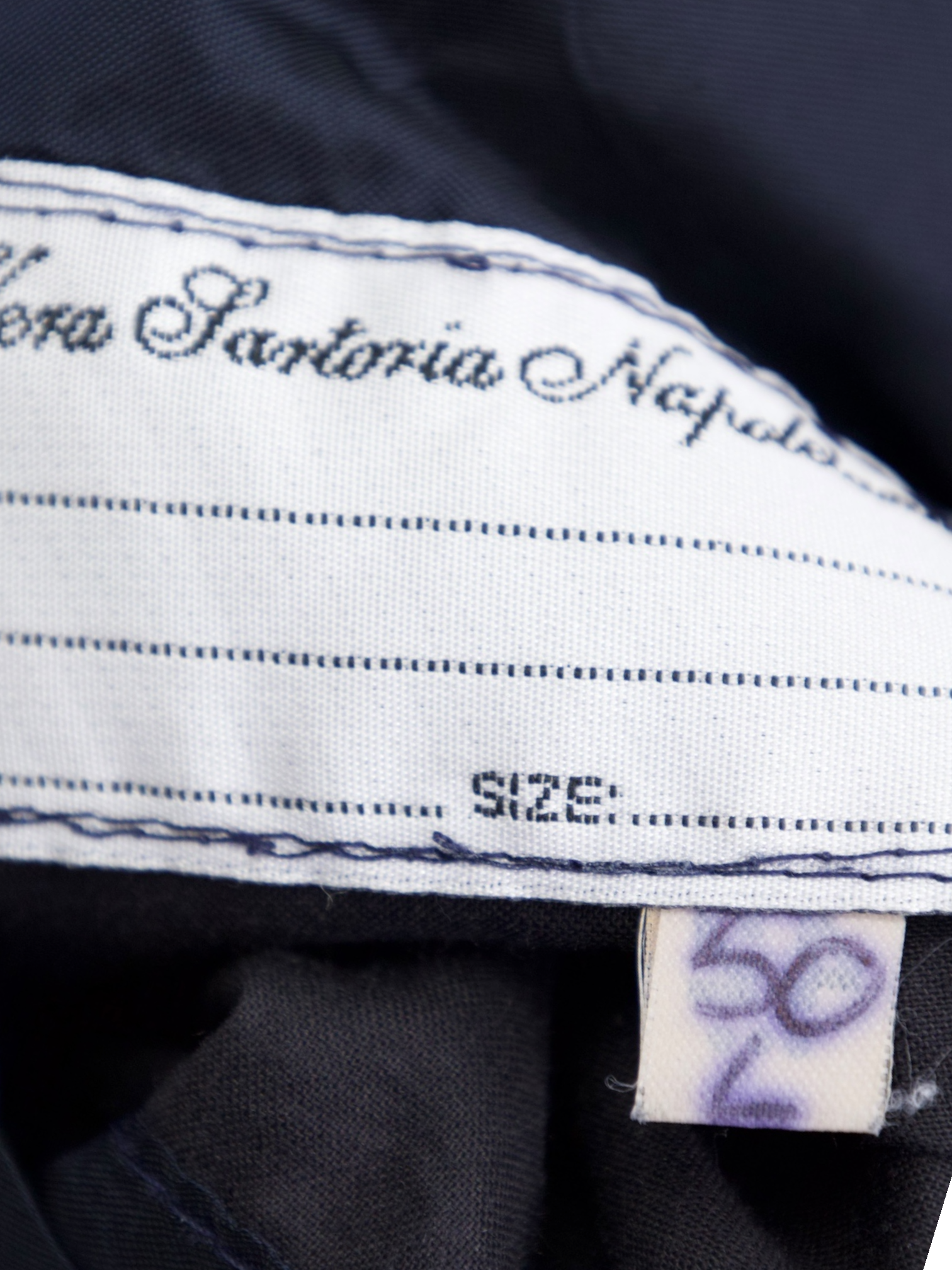 The ‘tre bottoni stirato a due’, also known as the three rolling on two lapel style, is perhaps the most infamous characteristic of the Neapolitan style jacket. The top button and buttonhole are ornamental, so are left unbuttoned. As the lapel rolls down it elegantly folds over the top button and stops just 4 cm above the second button creating the distinct roll of the lapel the style is known for. As it is intended to remain unbuttoned, the top buttonhole is actually made inside out so the beautiful side will still be visible.