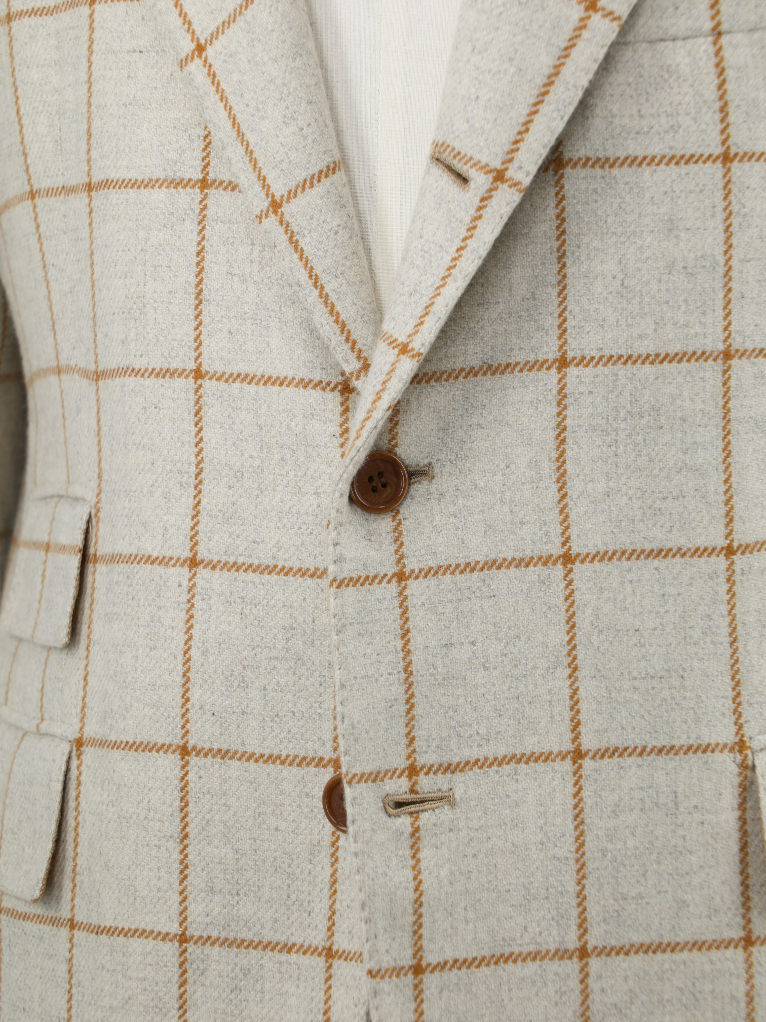 Orazio Luciano Oatmeal & Brown Pure Cashmere Windowpane Jacket