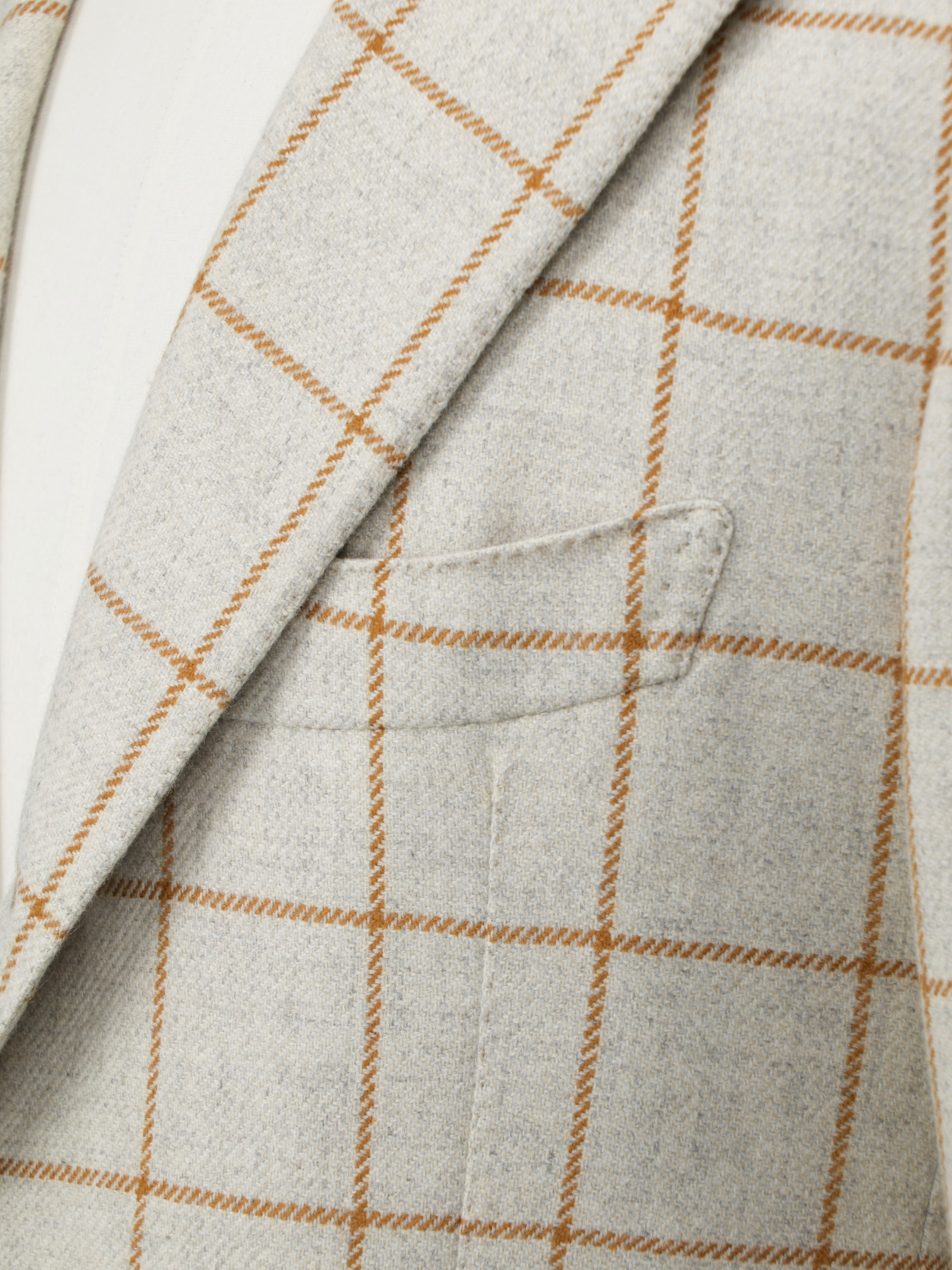 The barchetta pocket is often thought to be a tailoring detail exclusively from Italy. The word “barchetta” is Italian for “little boat.” It describes how the pocket floats on the chest, gently angled upwards, like the bow of a sailboat.