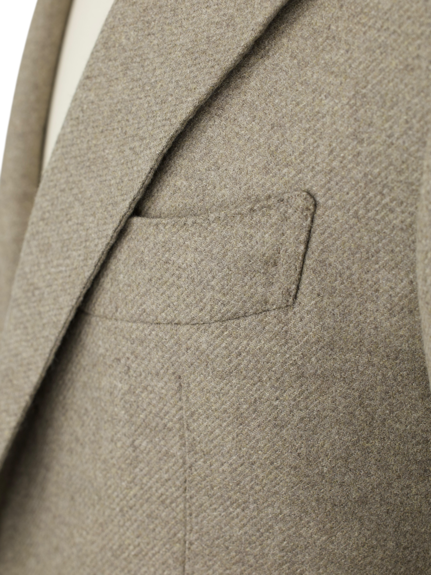 The barchetta pocket is often thought to be a tailoring detail exclusively from Italy. The word “barchetta” is Italian for “little boat.” It describes how the pocket floats on the chest, gently angled upwards, like the bow of a sailboat.
