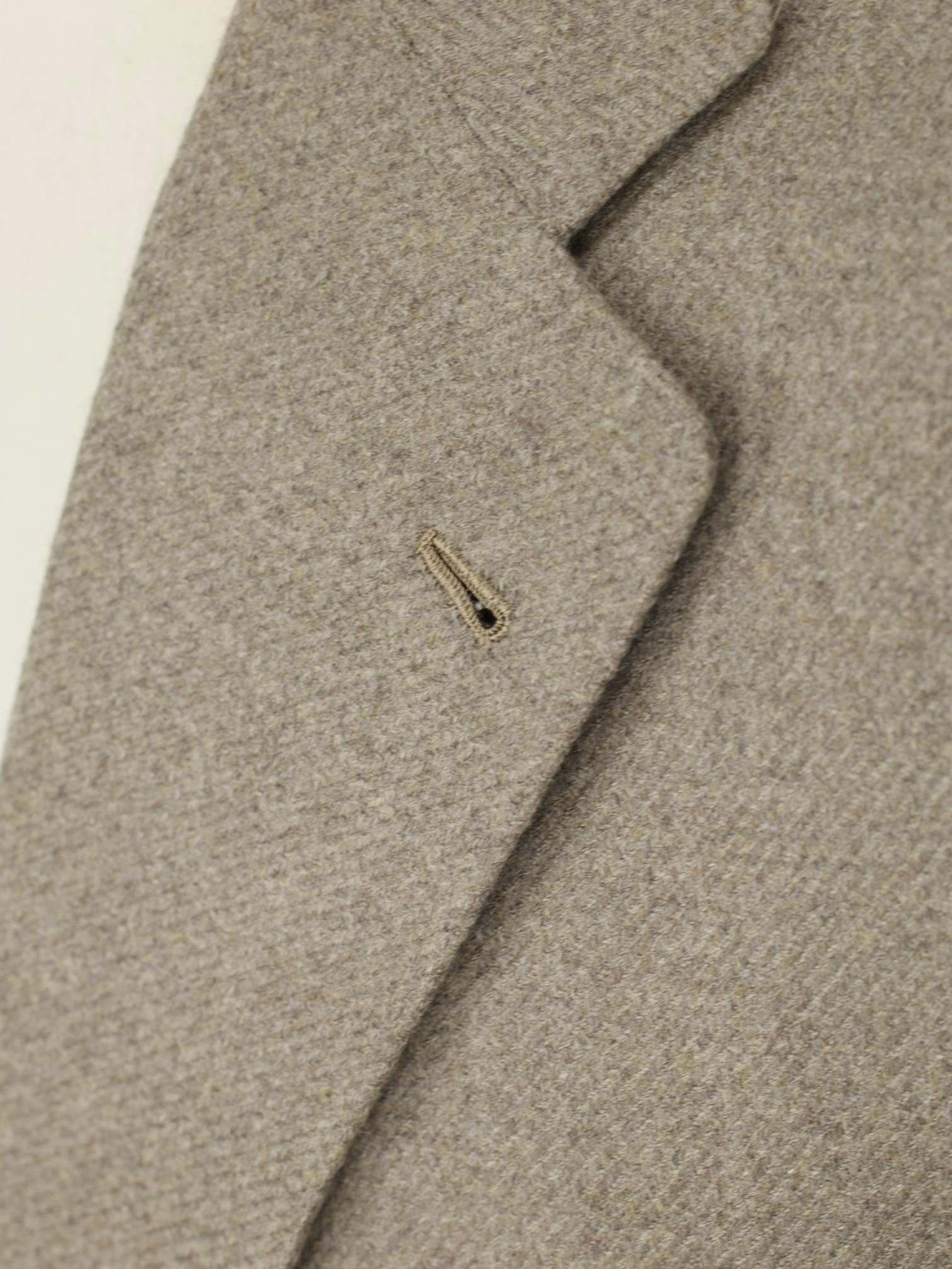 Discover the soft elegance of this Orazio Luciano jacket, tailored in a warm oatmeal wool and cashmere twill that blends texture with tonal richness. The cloth has a brushed, almost flannel-like finish, giving it a cosy hand and subtle depth. Cut with classic notch lapels and styled with patch pockets, the silhouette is relaxed yet refined. The spalla camicia shoulder and the signature Neapolitan hand-finished lapel buttonhole bring a sense of artisanal nonchalance to the jacket, making it an ideal choice for smart layering with a distinctly southern Italian flair.