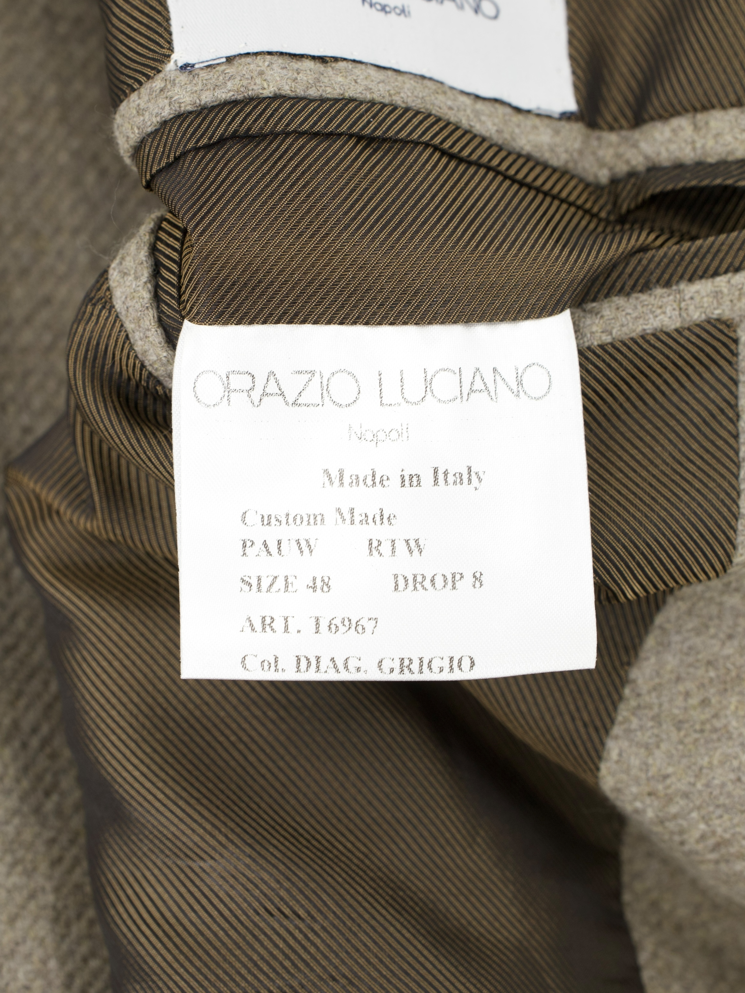 Handmade in Naples by a small team of skilled artisans, this jacket embodies Orazio Luciano’s commitment to soft tailoring and pure craftsmanship. The construction is deliberately light, with minimal padding and a natural shape that follows the contours of the body. Every detail, from the rolled lapel to the precise stitching along the pockets and seams, reflects the quiet confidence of Neapolitan tailoring. It is a piece designed for those who appreciate elegance without excess, rooted in tradition yet unmistakably modern. Discover the elaborated sartorial details below.