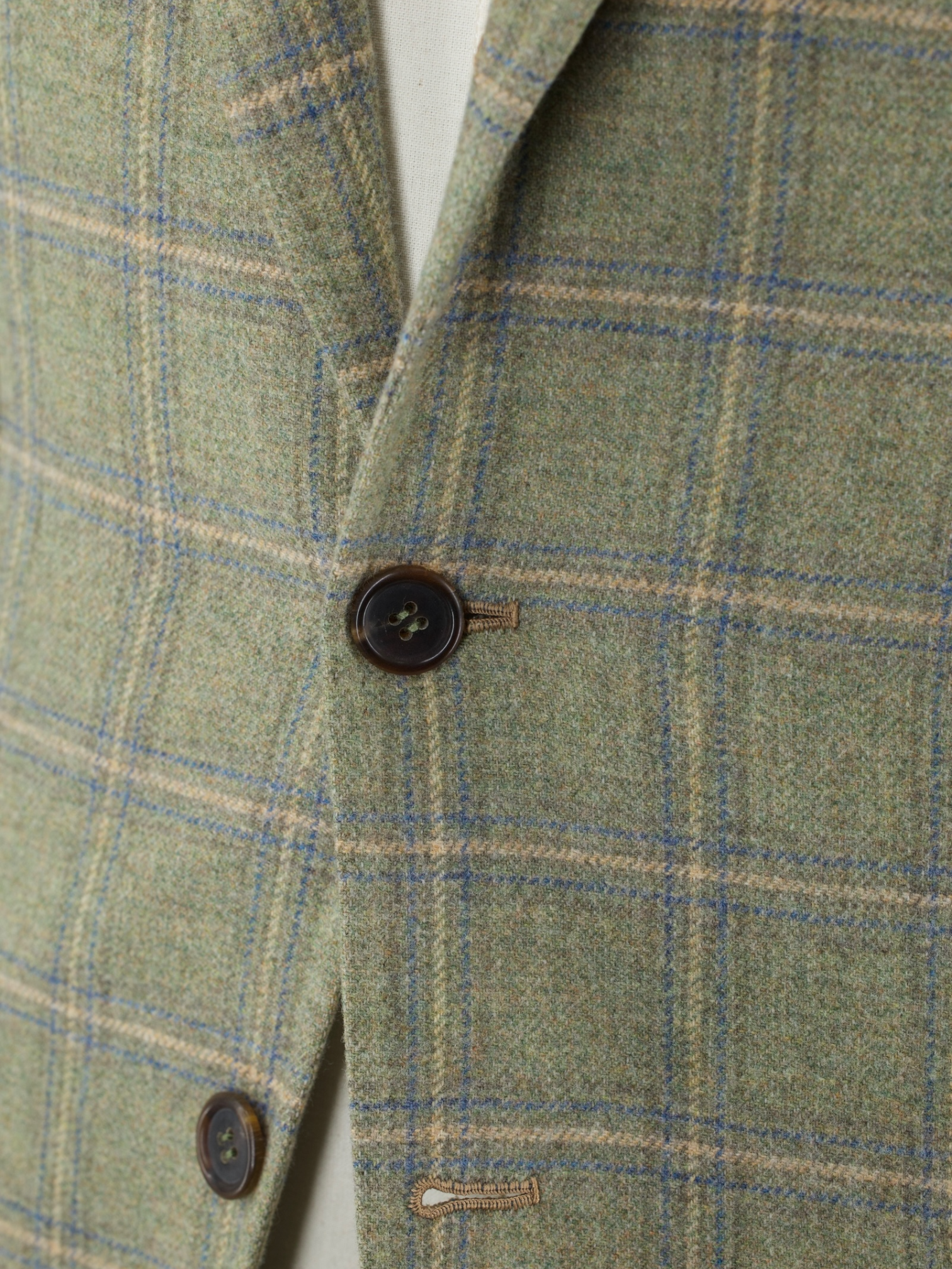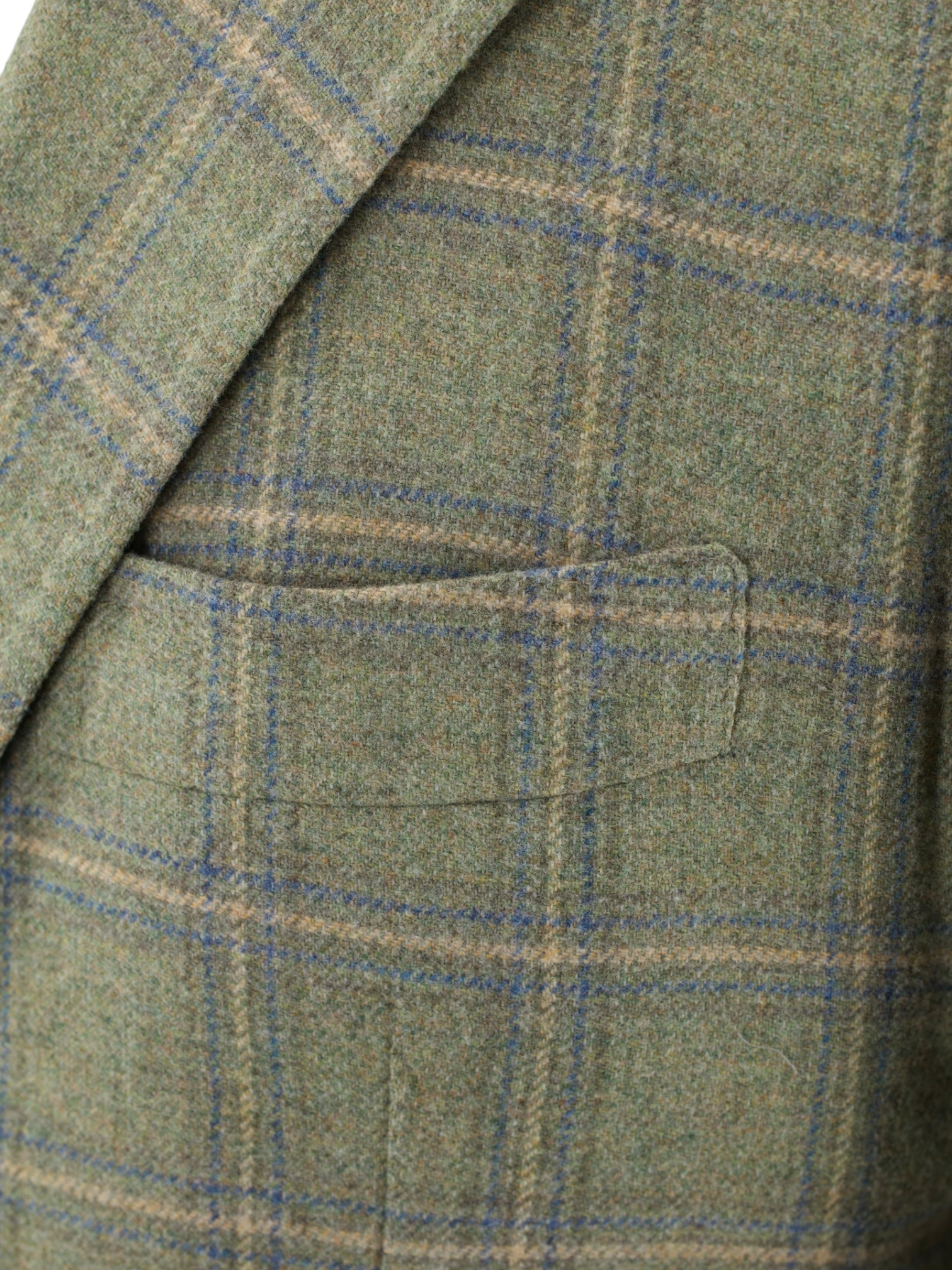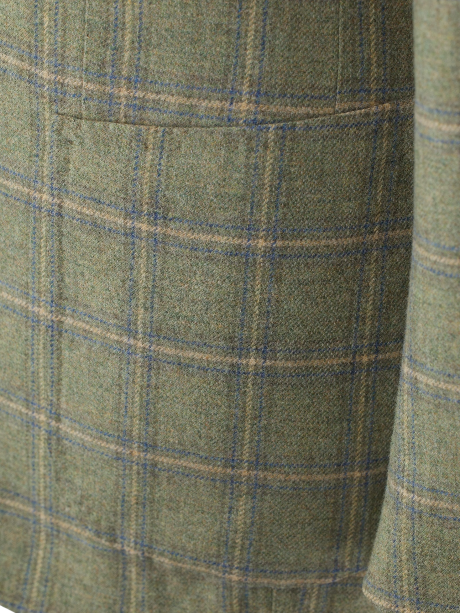 Orazio Luciano Sage Green & Light Blue Brushed-Wool Windowpane Jacket