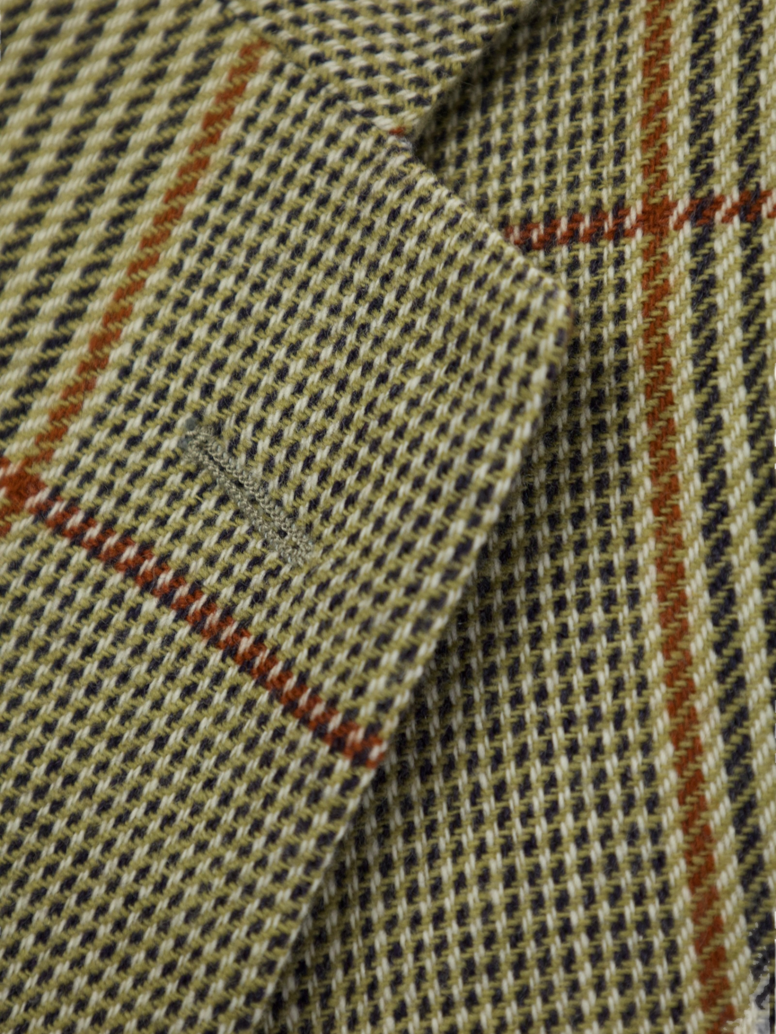The ‘tre bottoni stirato a due’, also known as the three rolling on two lapel style, is perhaps the most infamous characteristic of the Neapolitan style jacket. The top button and buttonhole are ornamental, so are left unbuttoned. As the lapel rolls down it elegantly folds over the top button and stops just 4 cm above the second button creating the distinct roll of the lapel the style is known for. As it is intended to remain unbuttoned, the top buttonhole is actually made inside out so the beautiful side will still be visible.