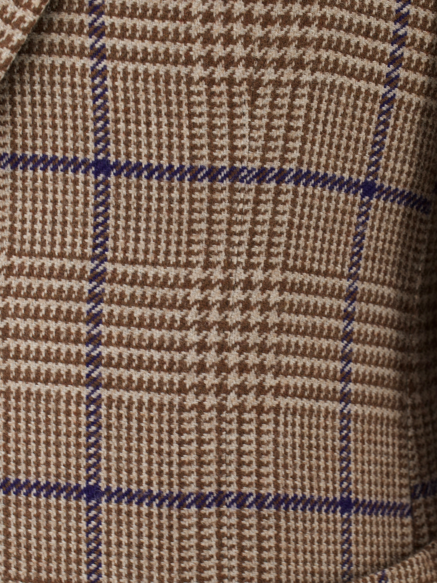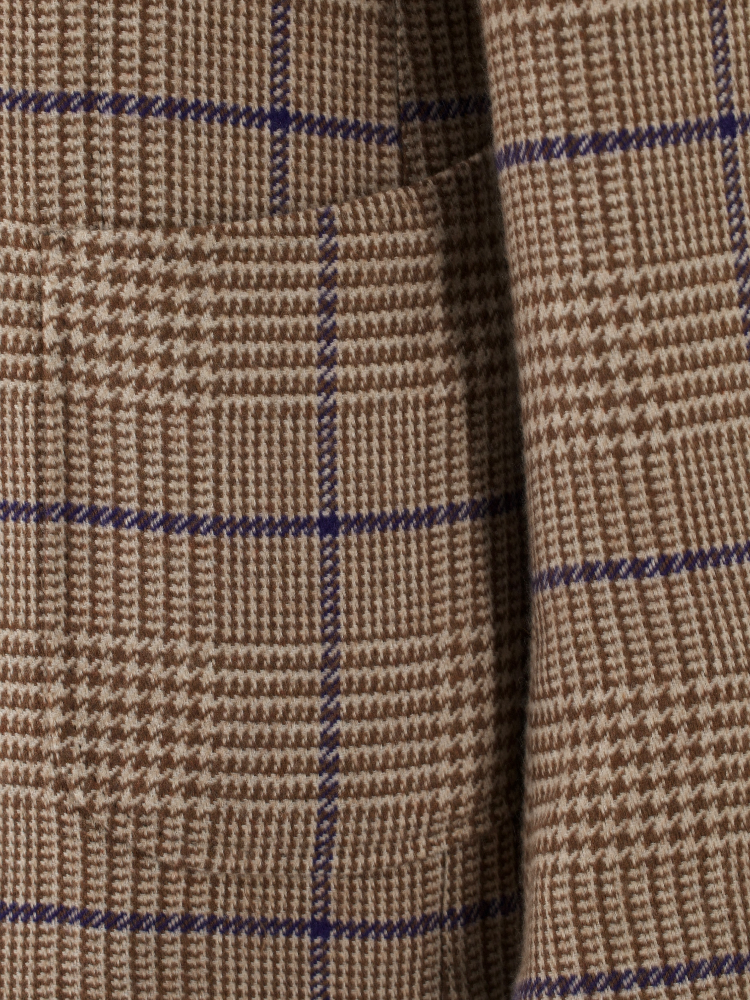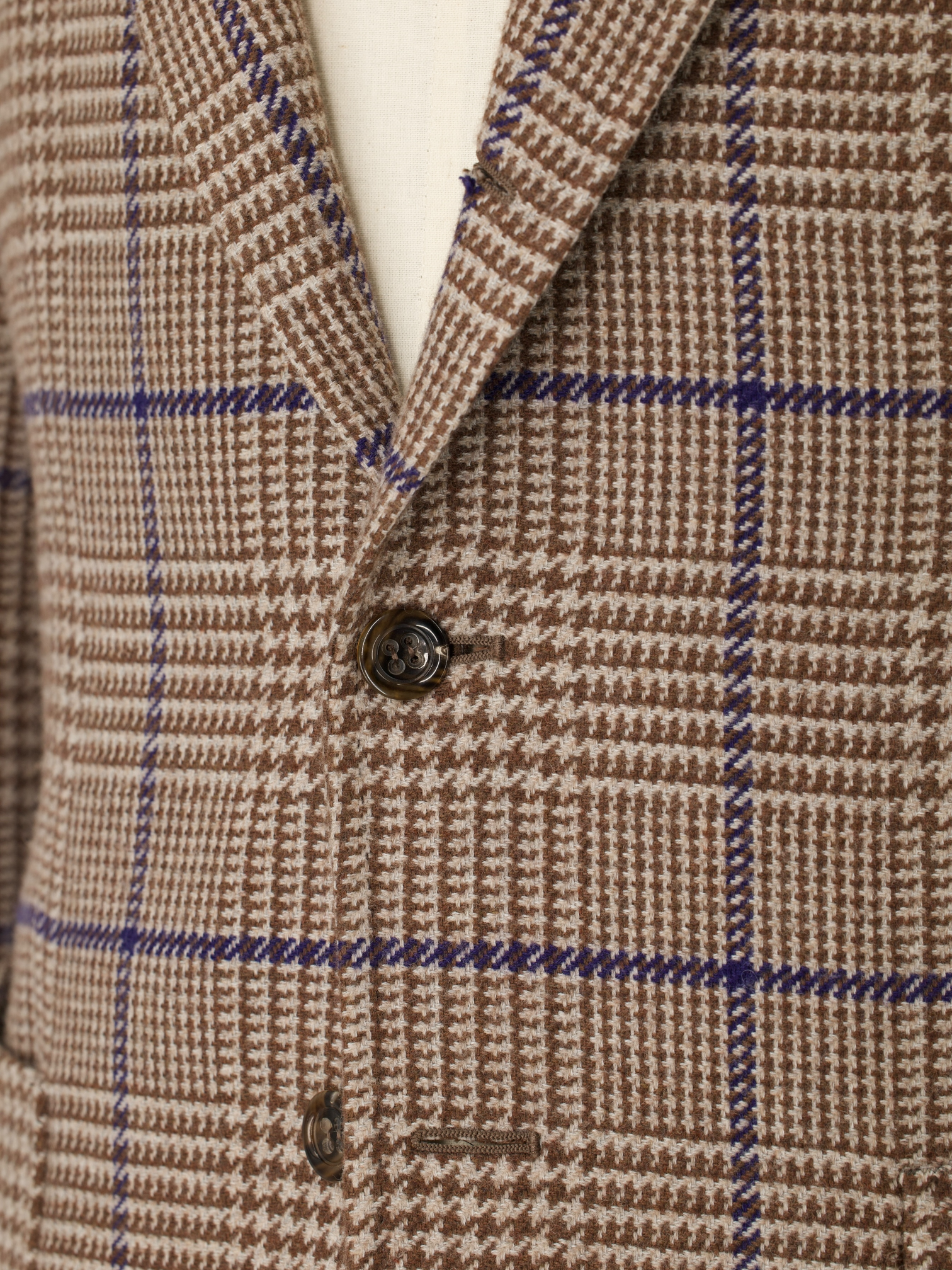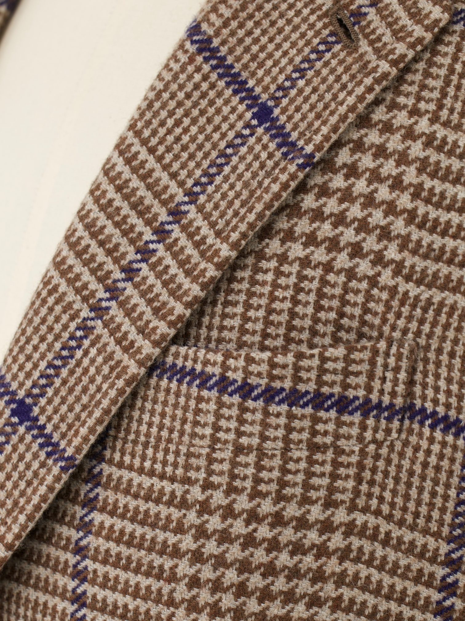 Stile Latino Brown & Royal Blue Wool, Cotton & Stretch Prince of Wales Jacket