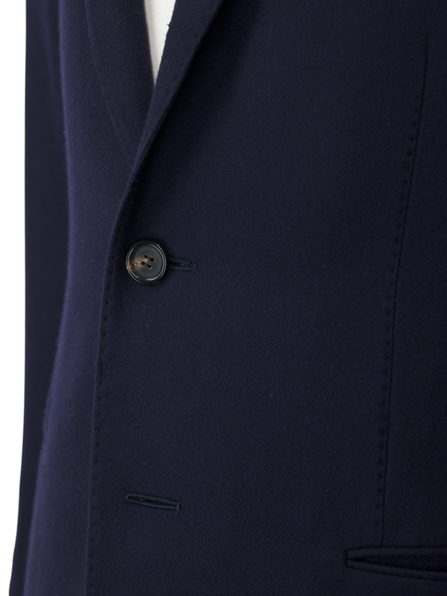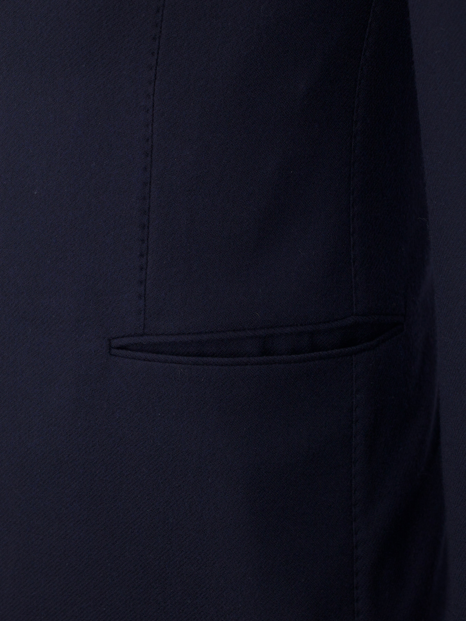 The ‘tre bottoni stirato a due’, also known as the three rolling on two lapel style, is perhaps the most infamous characteristic of the Neapolitan style jacket. The top button and buttonhole are ornamental, so are left unbuttoned. As the lapel rolls down it elegantly folds over the top button and stops just 4 cm above the second button creating the distinct roll of the lapel the style is known for. As it is intended to remain unbuttoned, the top buttonhole is actually made inside out so the beautiful side will still be visible.