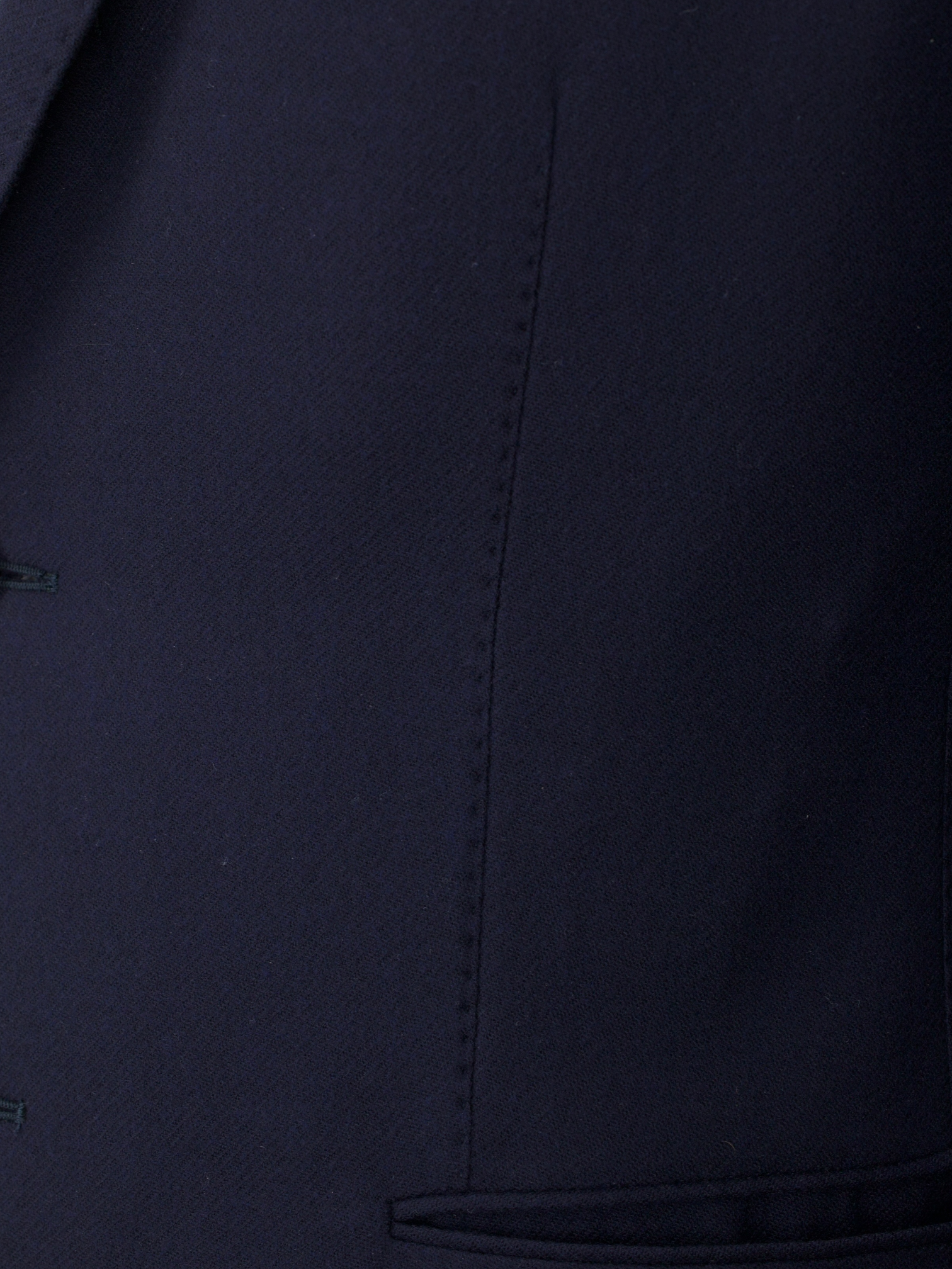 Neapolitan master tailors add two darts - think of them as pinched seams - to ensure the jacket’s body achieves a slim silhouette. The process, called mezzo punto riprese, is done entirely by hand.