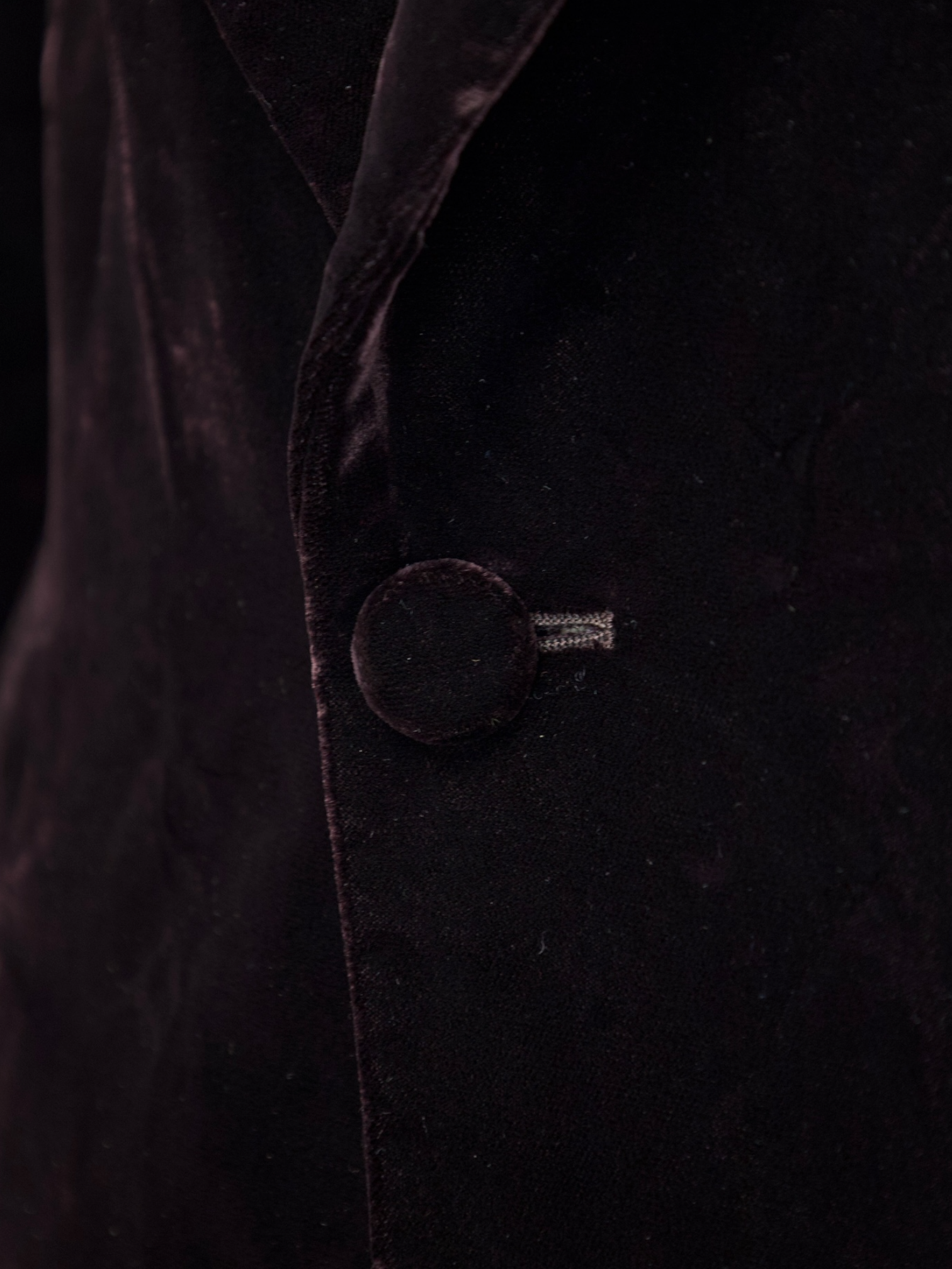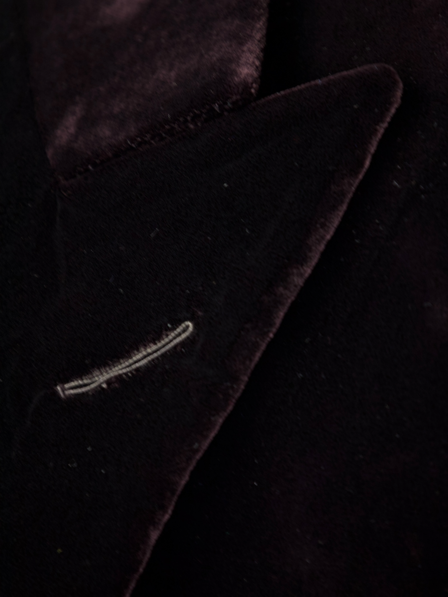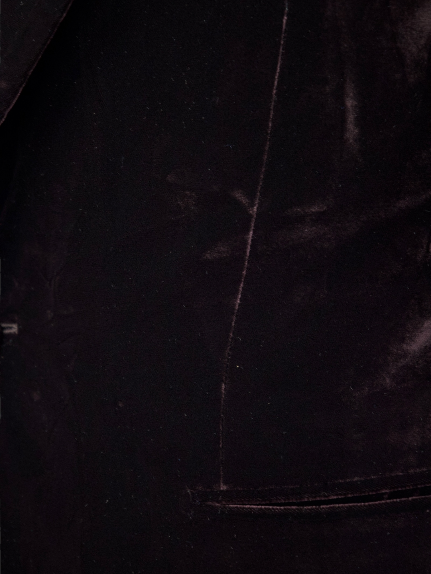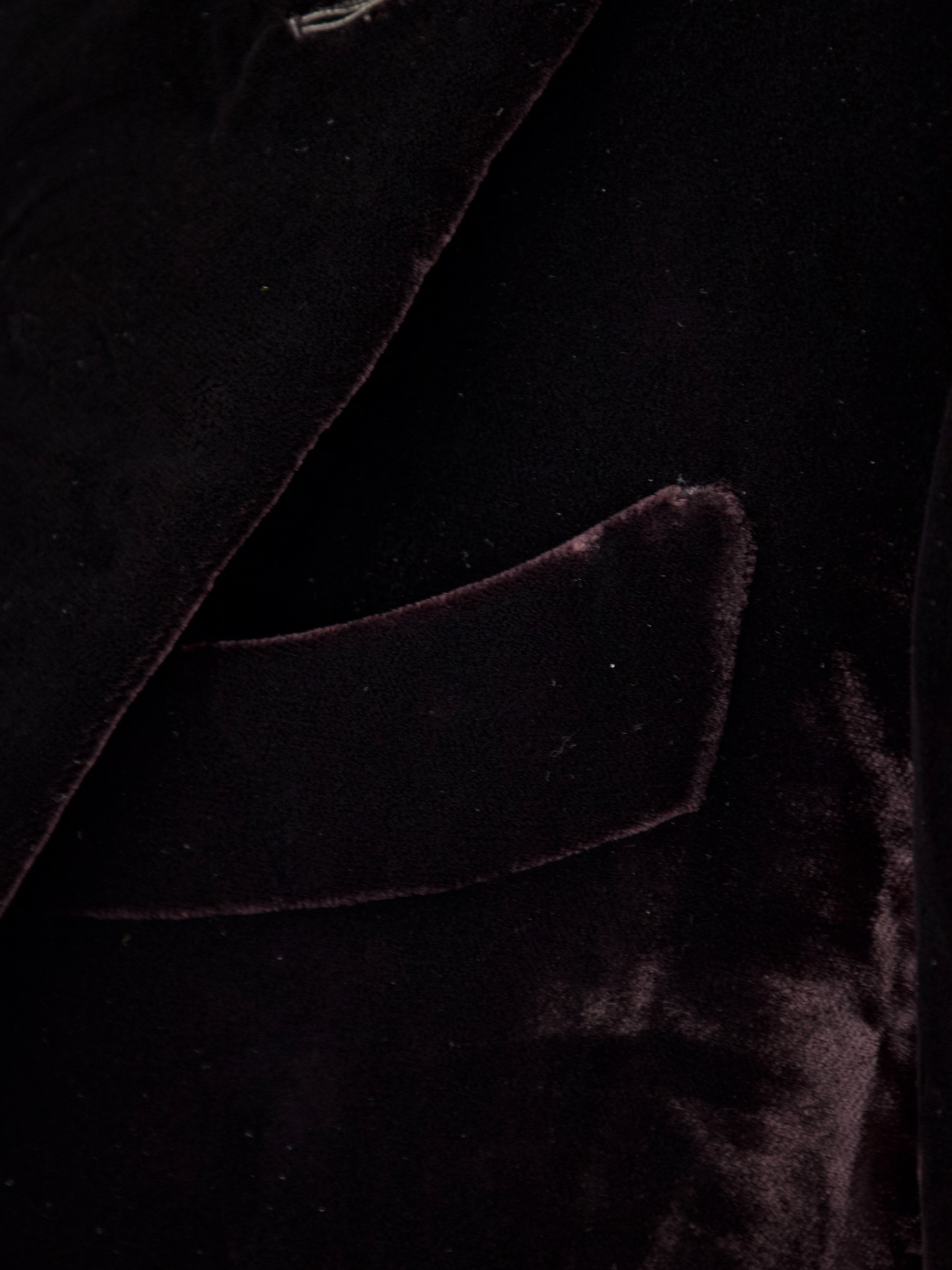 Tom Ford's unwavering commitment to exceptional craftsmanship is evident in every element of this garment. Each piece is meticulously constructed, with master artisans dedicating hours to achieving an impeccable fit and finish. The viscose-blend velvet not only offers a luxurious feel but also ensures durability and a subtle sheen that catches the light beautifully. Signature details such as the expertly tailored peak lapels, structured shoulders, and hand-finished stitching further underscore the brand's dedication to sartorial excellence. This jacket is a testament to Tom Ford's legacy of creating timeless menswear that exudes sophistication and style. Discover the elaborated sartorial details below.