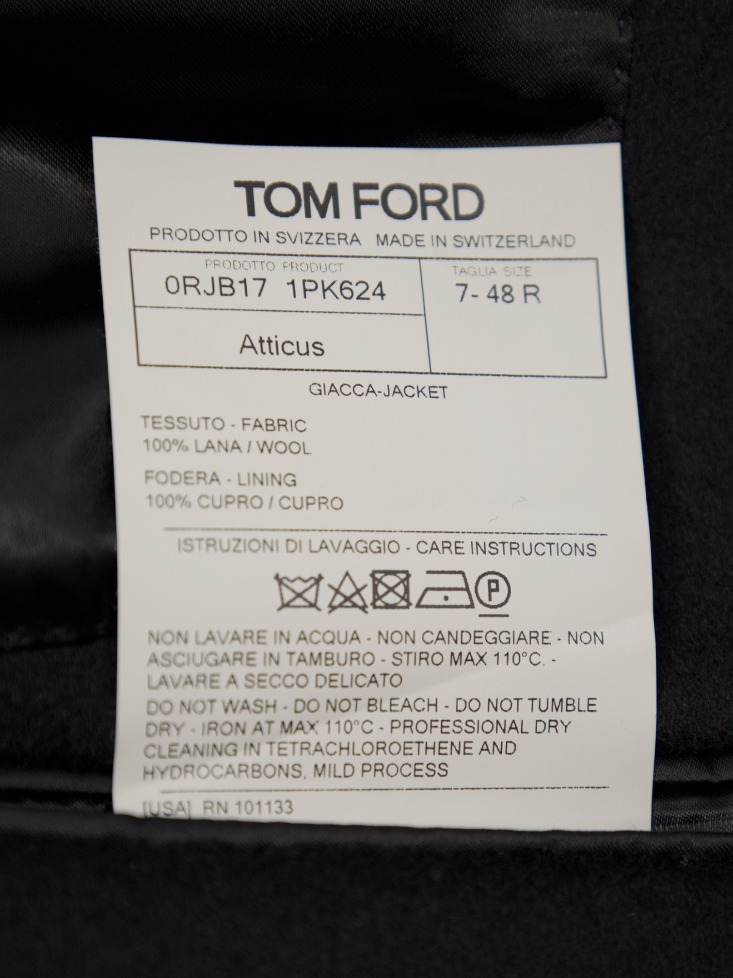 The Atticus fit is characterized by its sleek, slim profile, offering a structured yet comfortable shape that accentuates the wearer’s form. It emphasizes a strong shoulder line and a subtly tapered waist, creating a sharp and modern silhouette. Each piece is meticulously crafted in either Switzerland or Italy, embodying Tom Ford’s dedication to luxurious materials and expert hand-finishing. The wool fabric is carefully selected for its smooth texture and durability, while the lining is expertly stitched to maintain the jacket’s structure. Discover the elaborated sartorial details below.