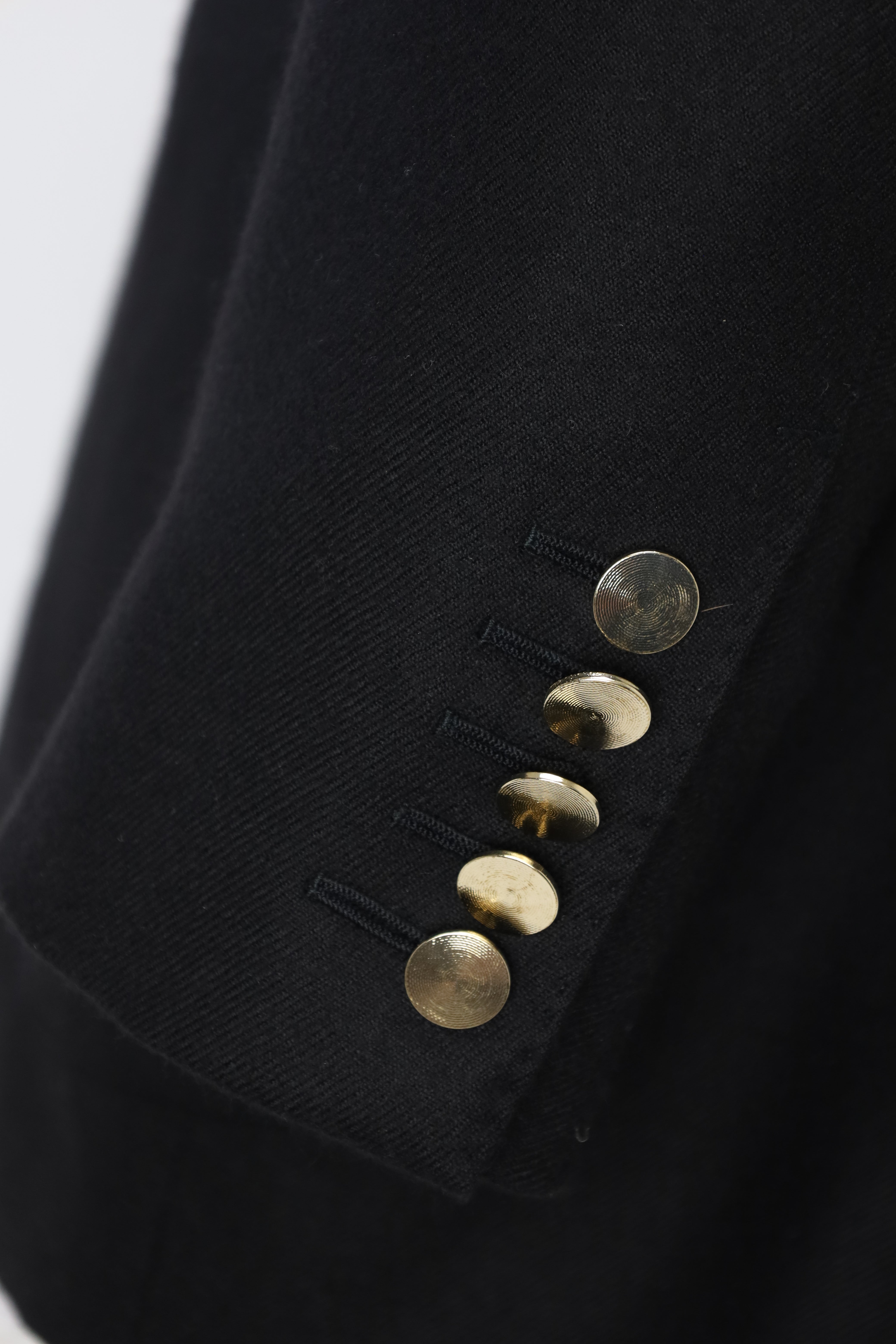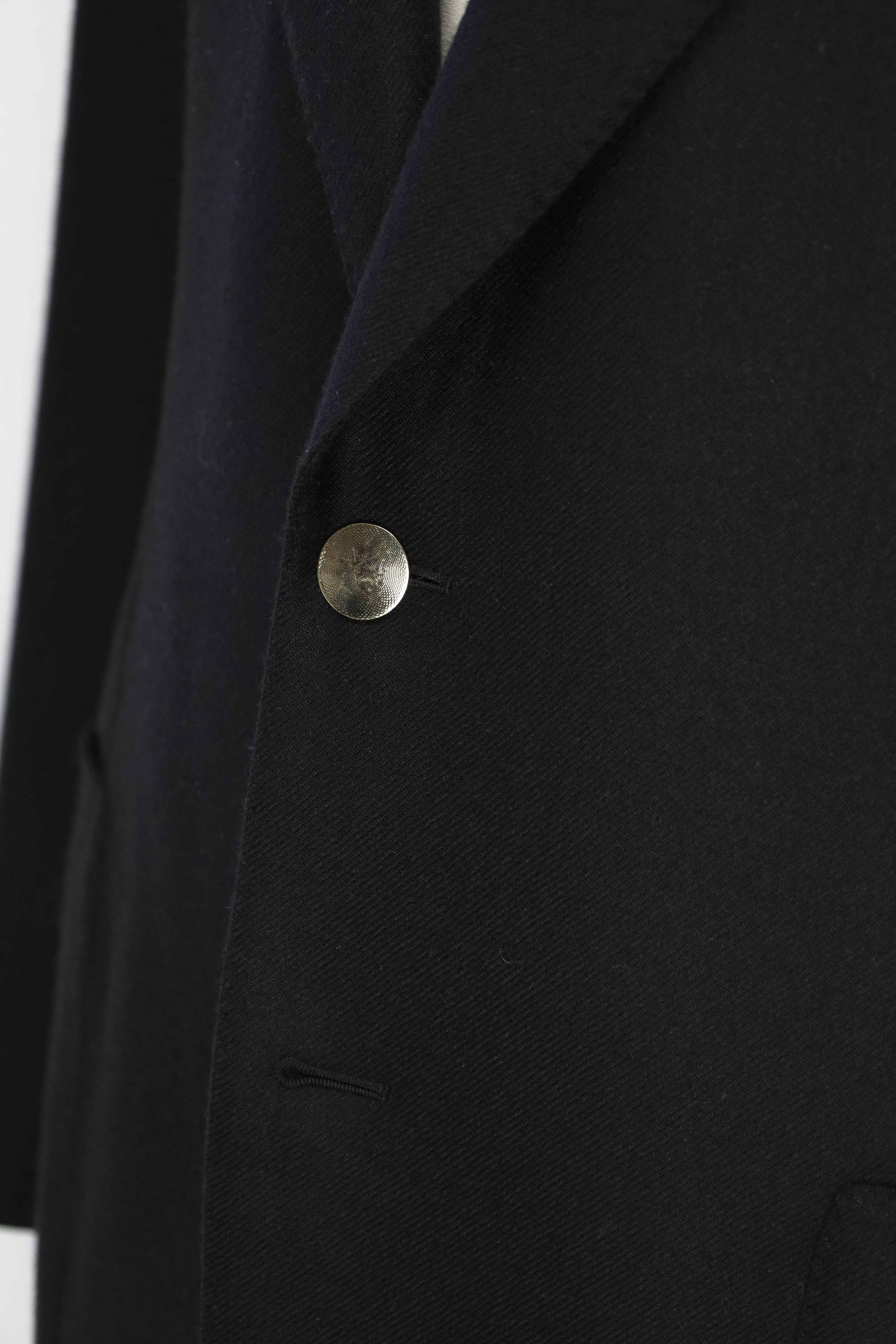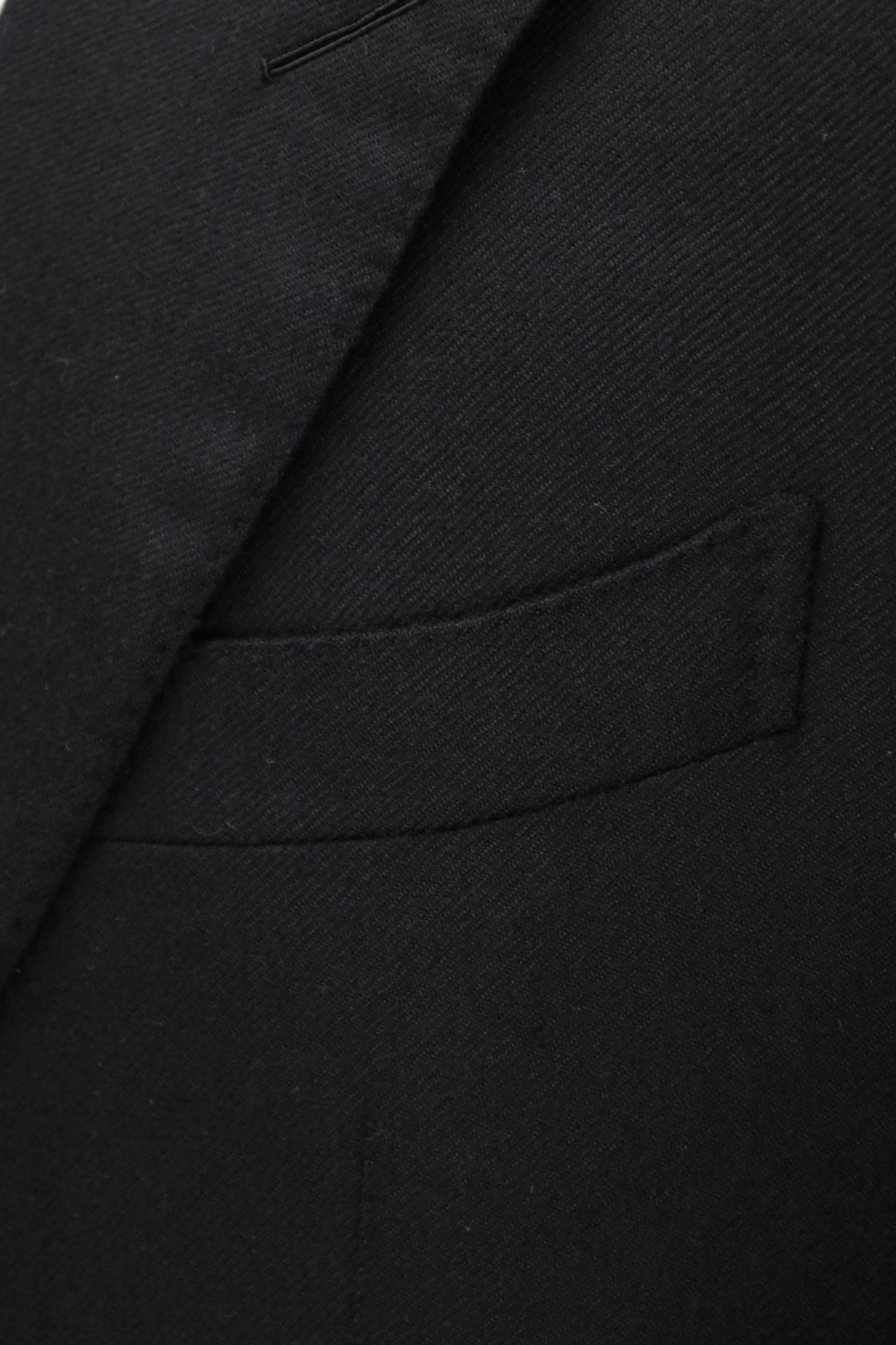 Introducing the Windsor Jacket from Tom Ford, exquisitely tailored from luxurious black cashmere. This essential piece redefines elegance with its broad peak lapels, offering a distinguished look that stands out with sophistication. Its soft, indulgent texture and flawlessly crafted silhouette make it a timeless addition to the modern gentleman's wardrobe. For those who seek unparalleled luxury and style, this jacket is a testament to classic refinement. Discover the elaborated sartorial details below.