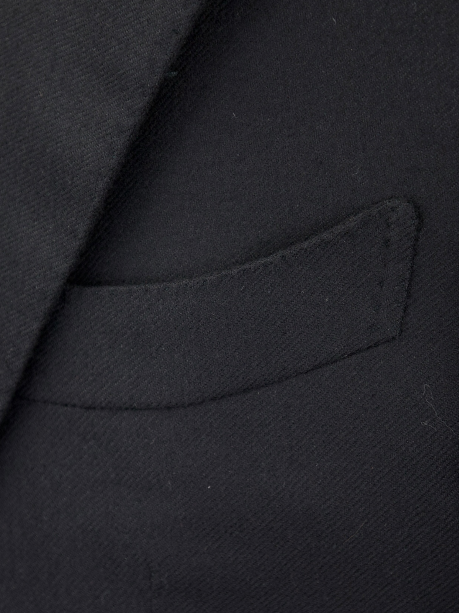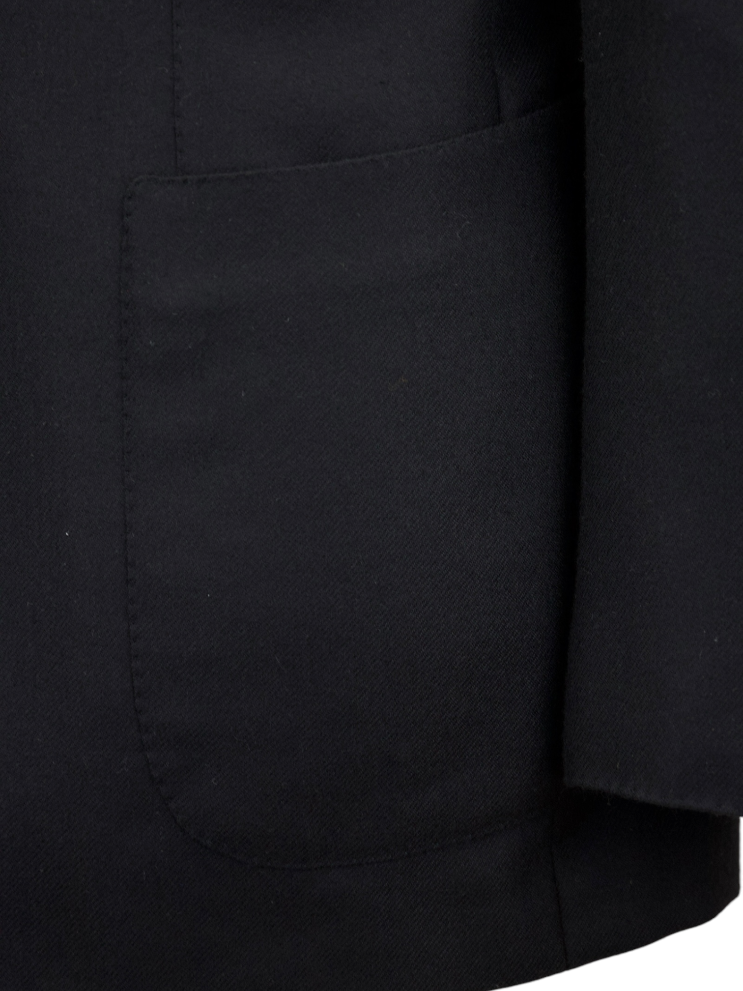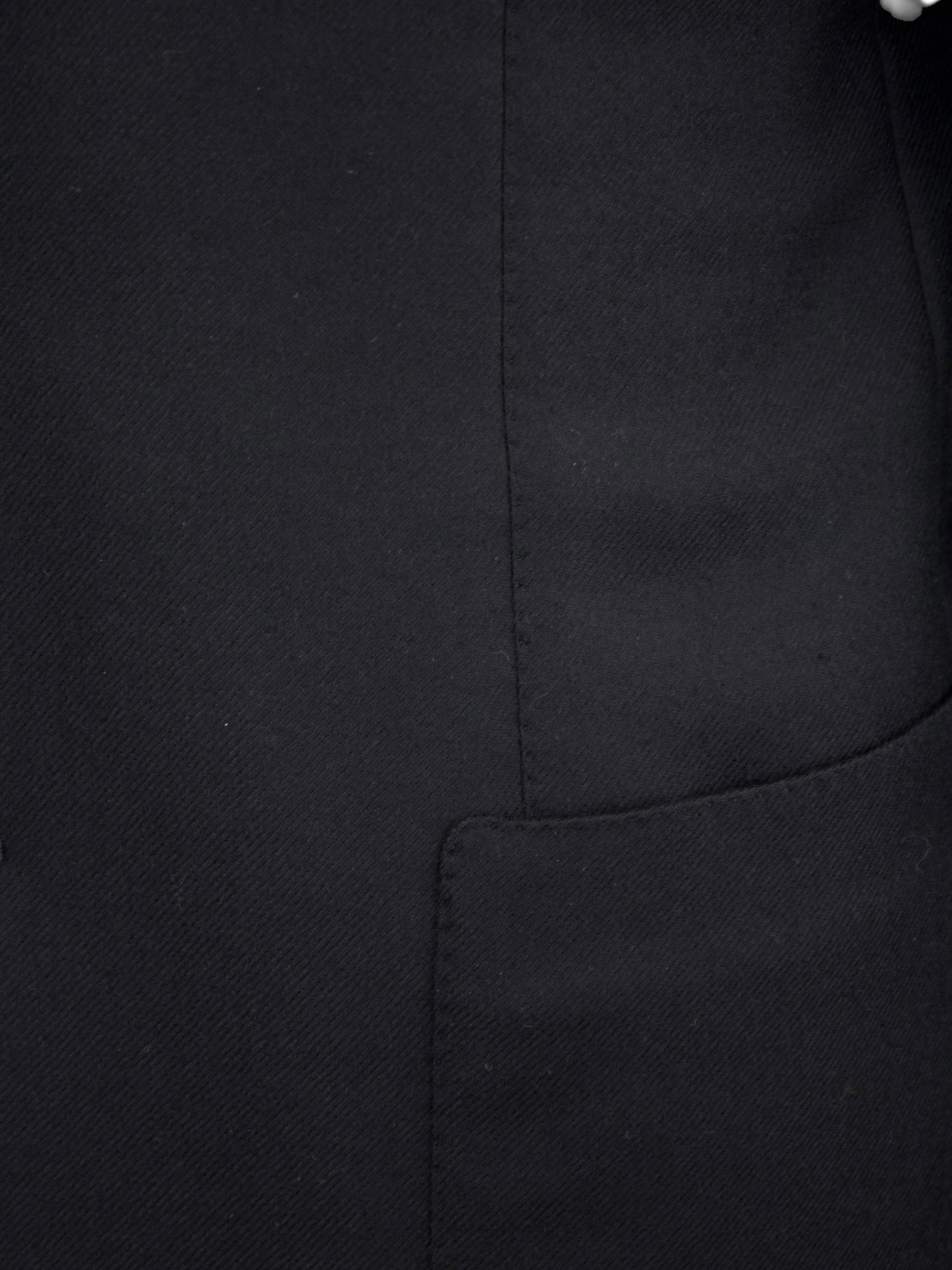 The barchetta chest pocket is not only curved and blunted, as in the southern Italian style, but the corner is rounder right off.