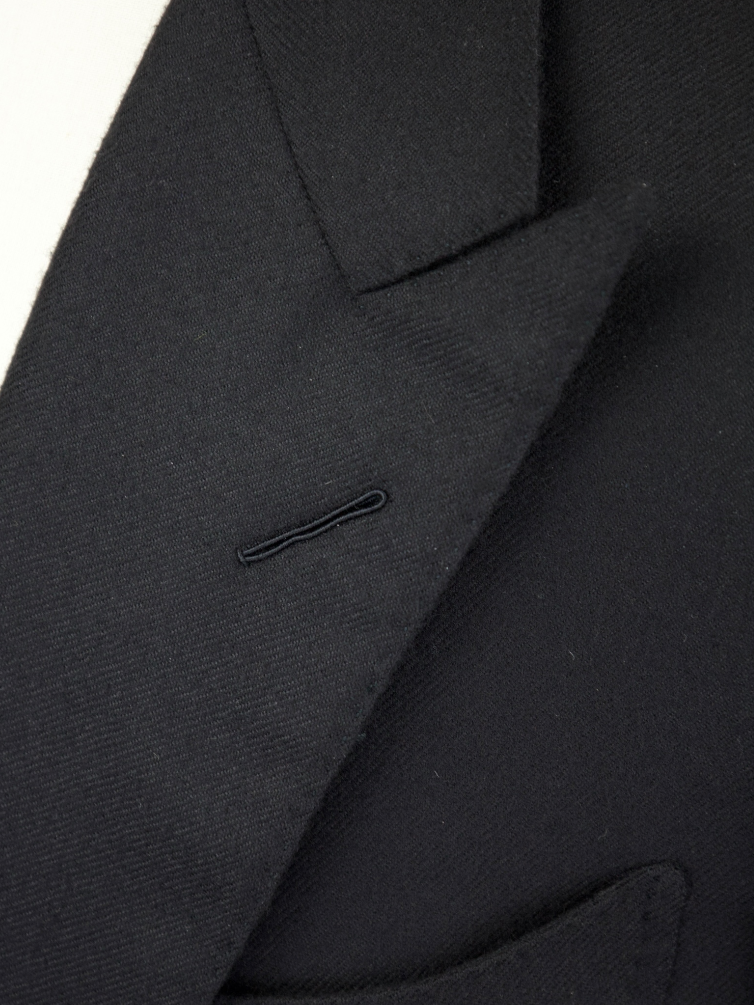 The elegant, longer brother of the Milanese. With its thin and extra long gimp cord inside, this is one of the most challenging buttonholes to make by hand. Even a highly skilled tailor will take about 20 minutes to finish it.