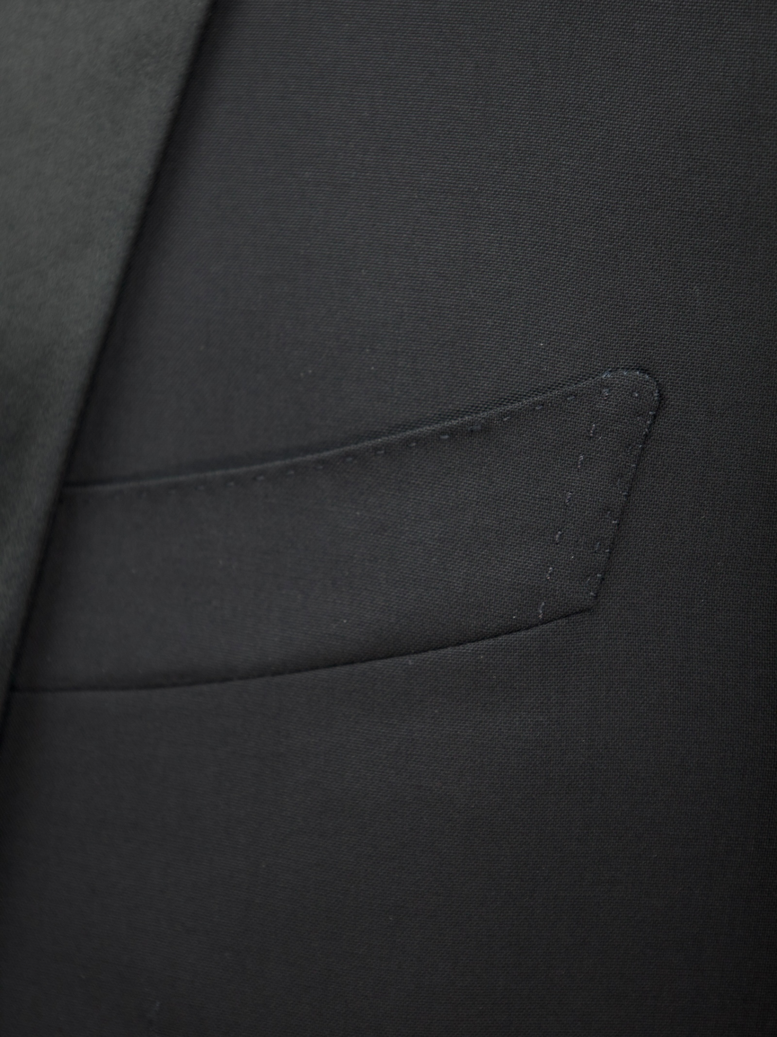 The first jacket pockets were sewn inside the lining or seams of garments, and are called “jetted” pockets. In their simplest form, they consist of little more than a slit. Suits that are the most formal, especially tuxedos, have no flap pockets altogether to give the piece a more streamlined look.