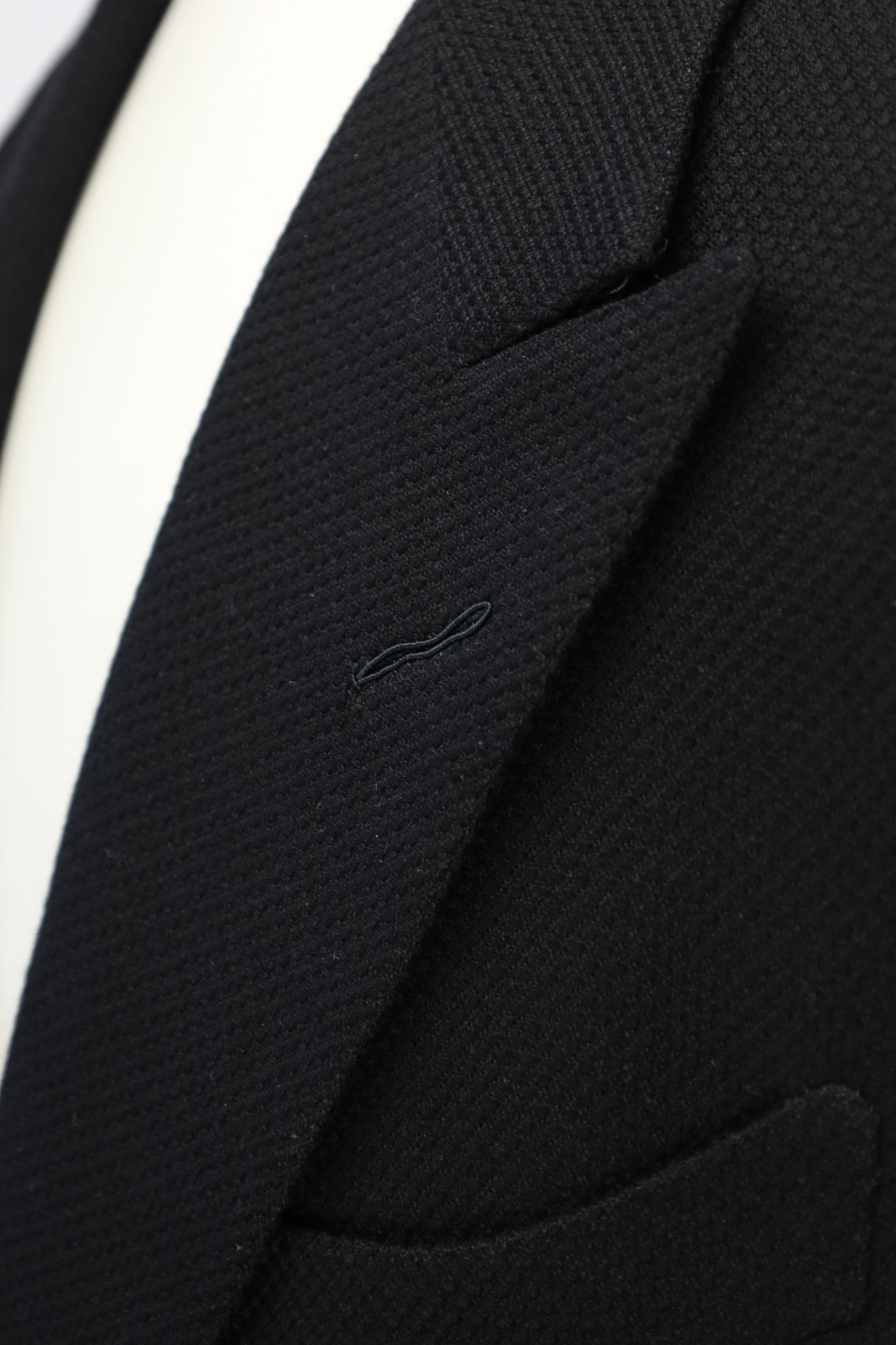 Introducing the Windsor Jacket by Tom Ford: a luxurious mix of black silk and wool that sets a new standard for formal wear. With its broad peak lapels, structured fit and rich texture, this piece offers both sophistication and timeless style, making it an essential addition to the modern gentleman's wardrobe. Discover the elaborated sartorial details below.