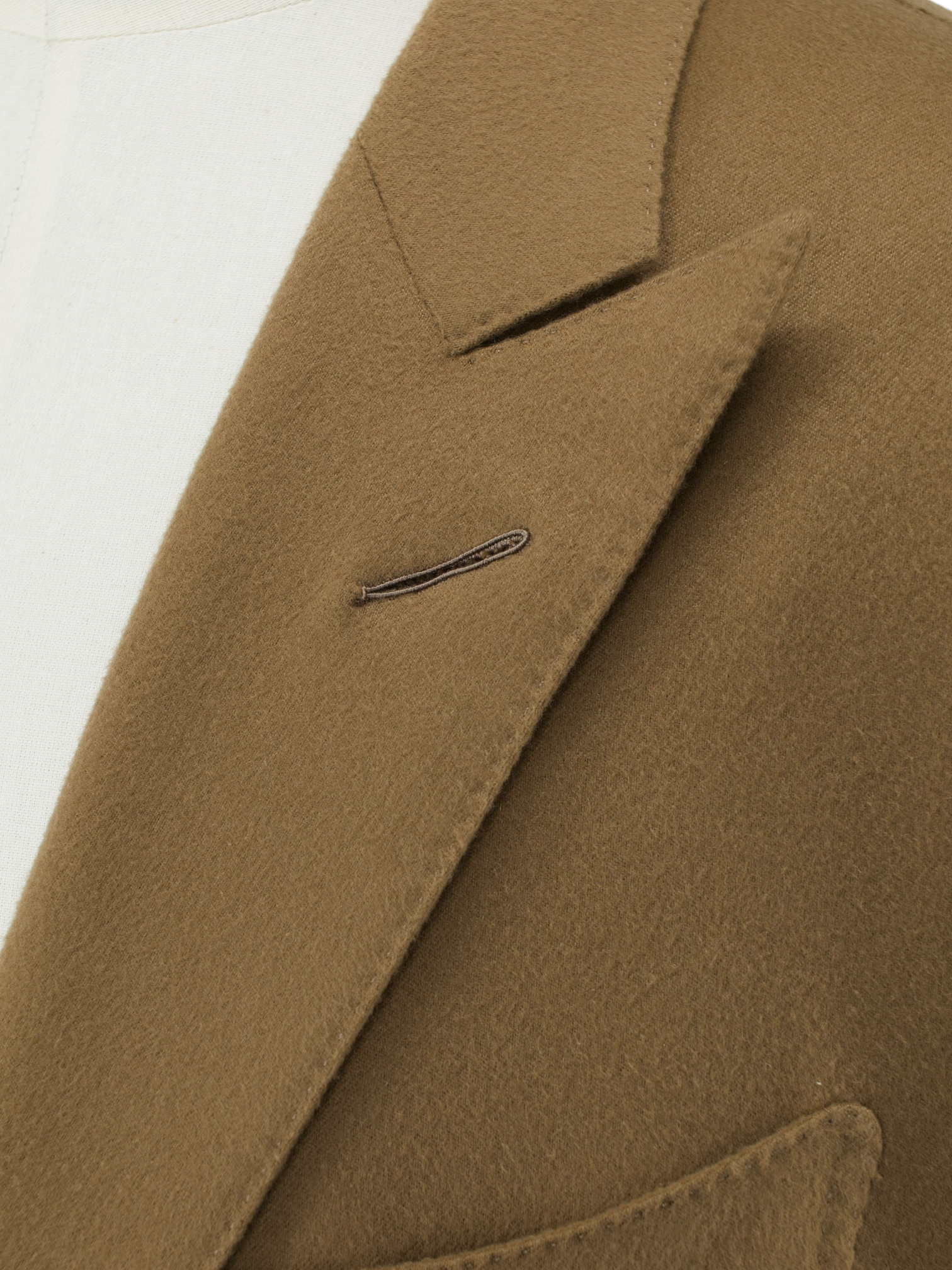 The O’Connor cut is one of the brand’s most recognisable fits. It is clean and structured, designed to follow the natural lines of the body without excess. Shoulders are sharp yet balanced, the waist is neatly nipped in, and the silhouette maintains a tailored look that feels both timeless and contemporary. The jacket sits slightly shorter than traditional cuts, giving it a sleek, modern attitude. It is a fit that carries presence without shouting, perfectly matched to the tactile richness of the cashmere. Discover the elaborated sartorial details below.