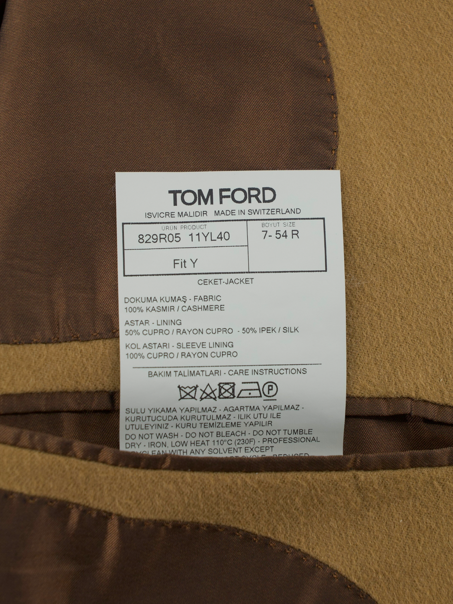 Tom Ford Camel Brown Pure Cashmere O'Connor Winter Jacket