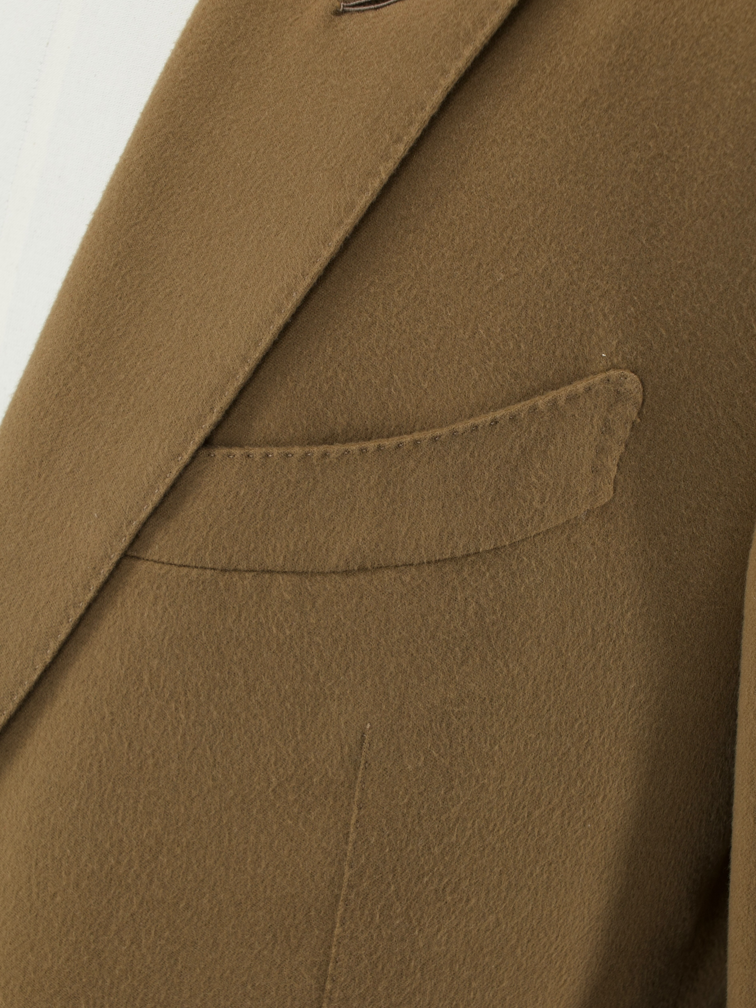 The barchetta chest pocket is not only curved and blunted, as in the southern Italian style, but the corner is rounder right off.