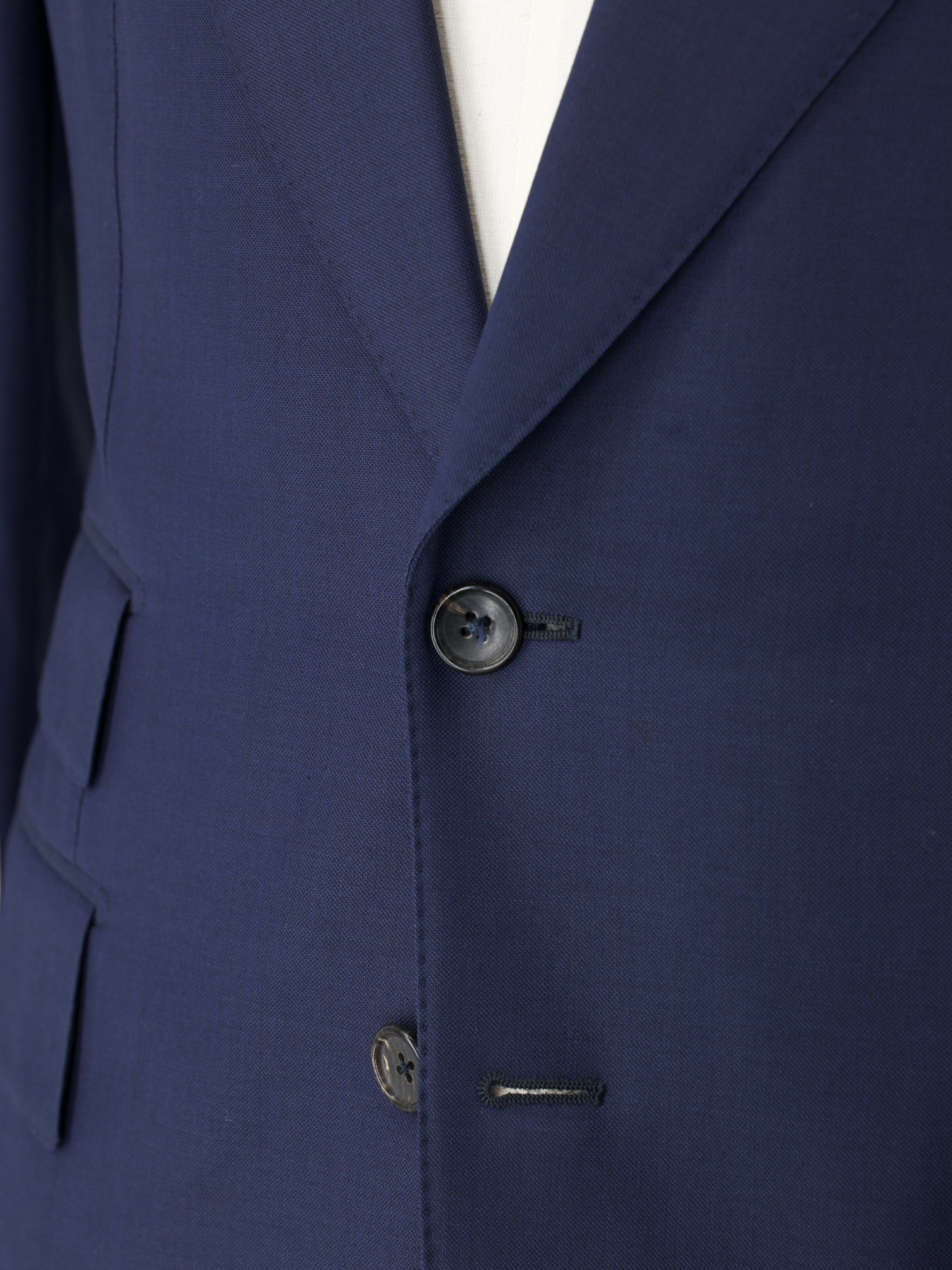 5 functioning horn buttons at the end of the sleeve, with a larger 5th button opening - a quintessential Tom Ford Detail. Even this step, apparently the simplest, is treated with an abundance of detail. Attaching the buttons is a job that requires patience and must be completed to perfection.