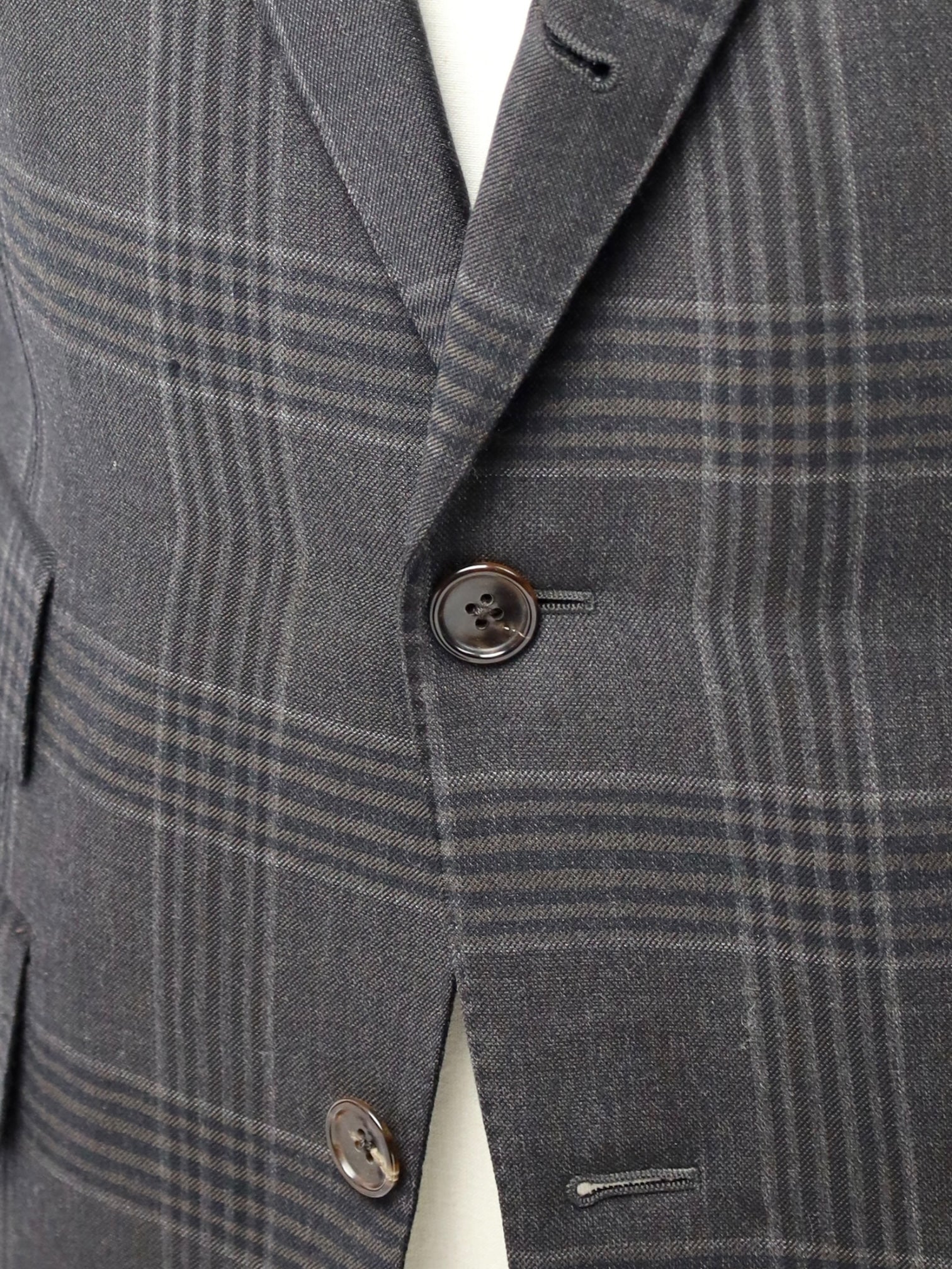 5 functioning horn buttons at the end of the sleeve, with a larger 5th button opening - a quintessential Tom Ford Detail. Even this step, apparently the simplest, is treated with an abundance of detail. Attaching the buttons is a job that requires patience and must be completed to perfection.
